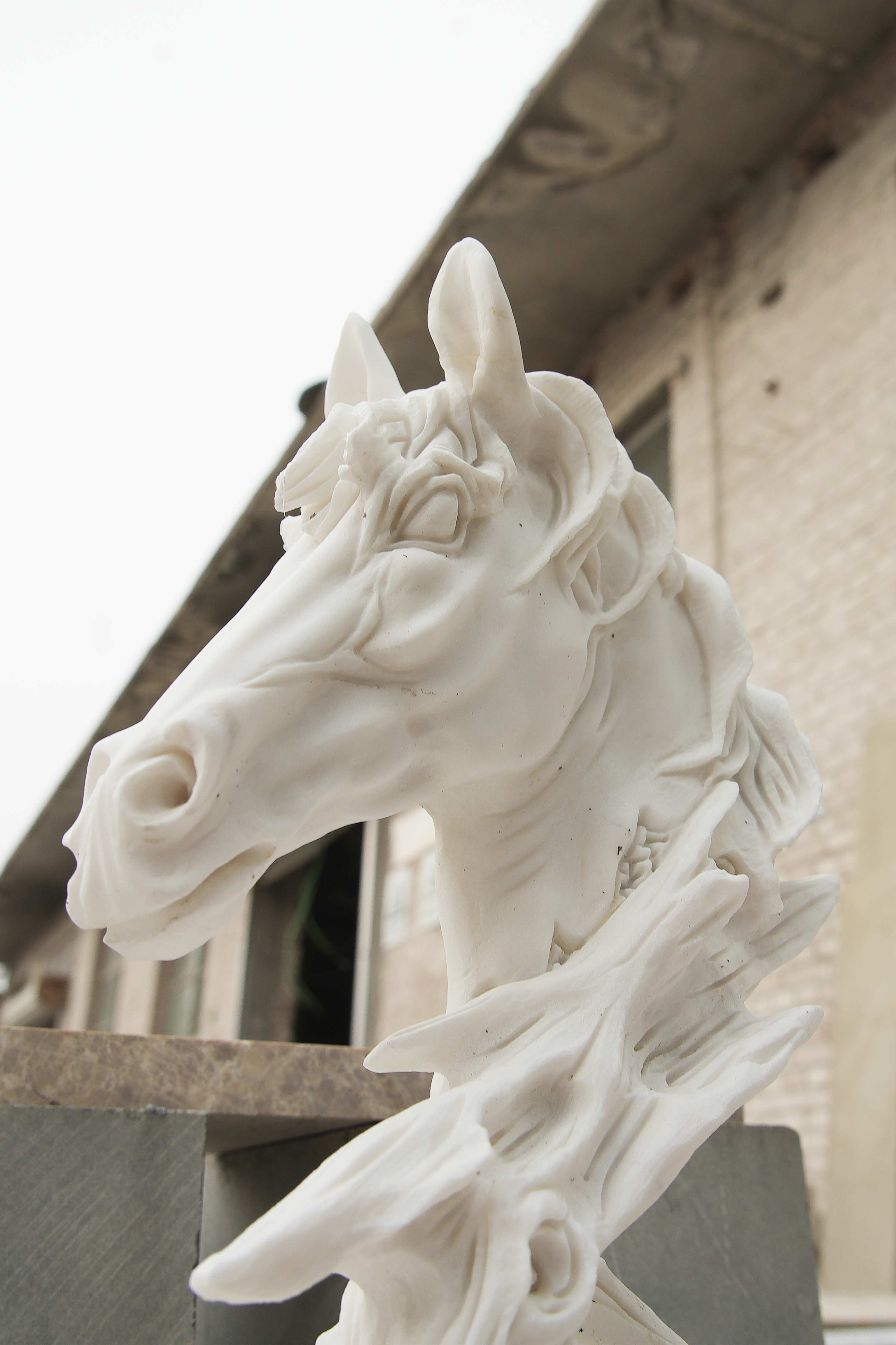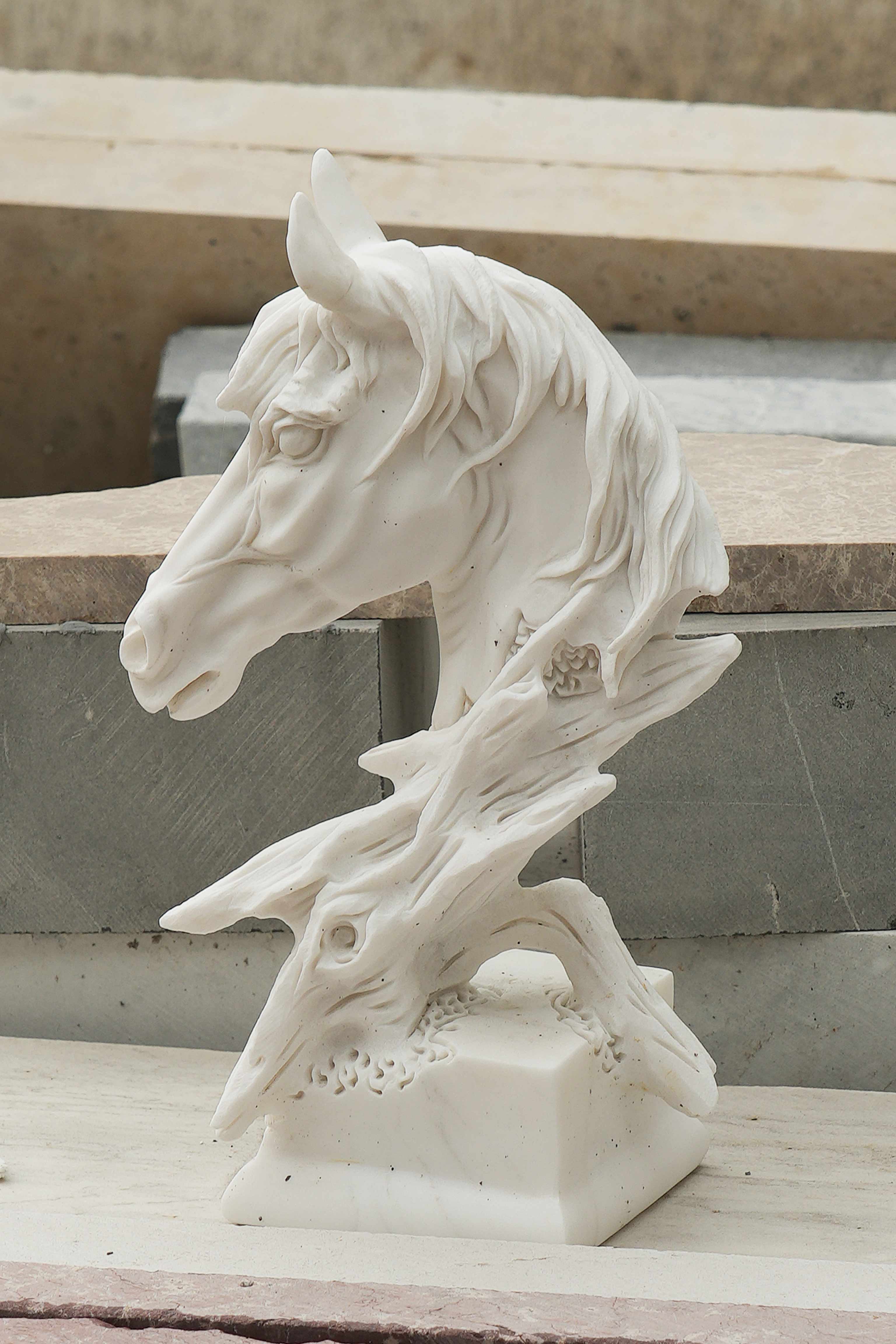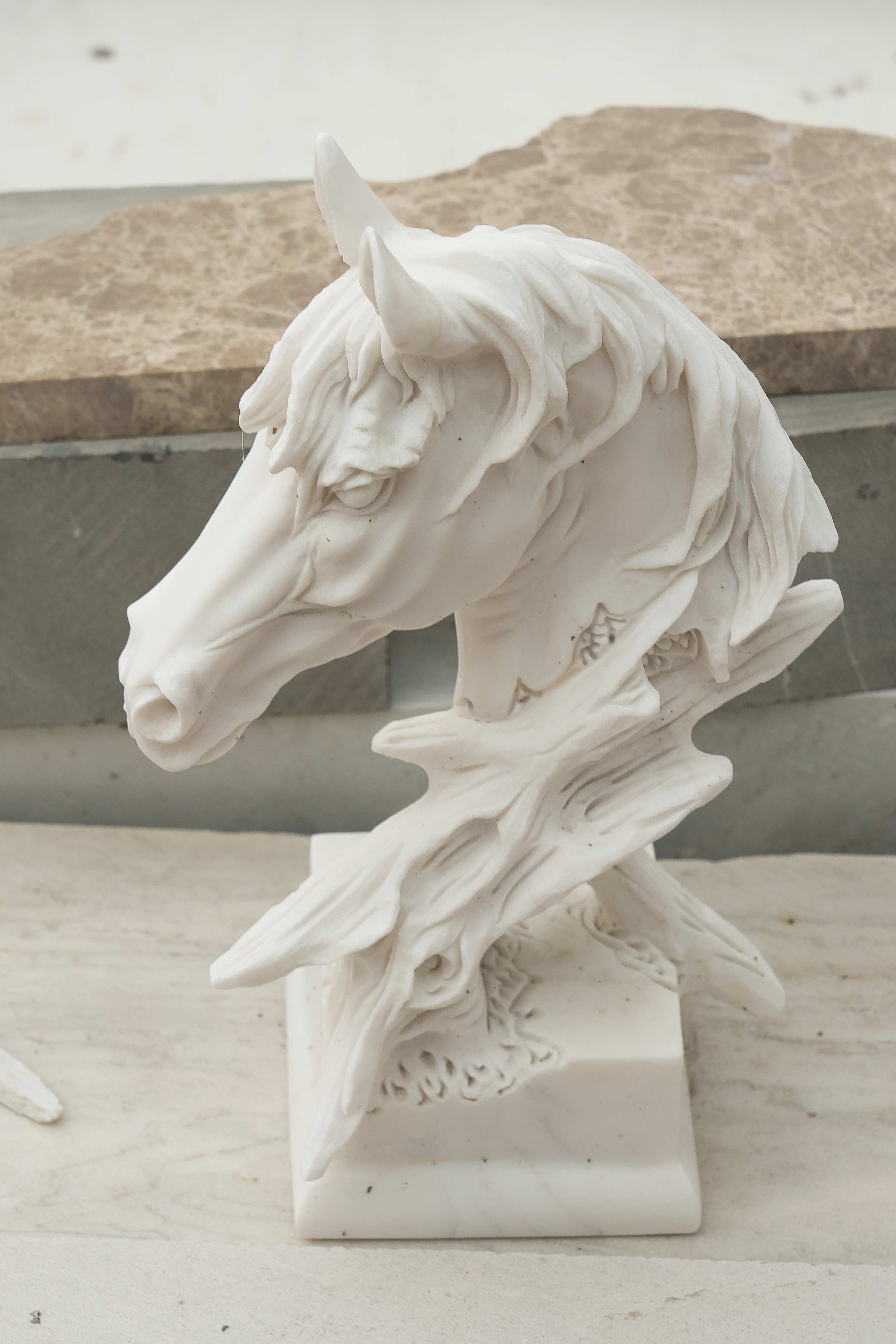 This White Marble Horse Head Sculpture is a graceful representation of elegance and artistic charm. The detailed craftsmanship captures the noble features of a horse, symbolizing freedom, strength, and beauty. The smooth white marble finish enhances its sophisticated look, making it perfect for a variety of settings, including living rooms, office spaces, or curated art installations. This sculpture adds a refined artistic touch to any space, effortlessly blending with both modern and traditional interiors.