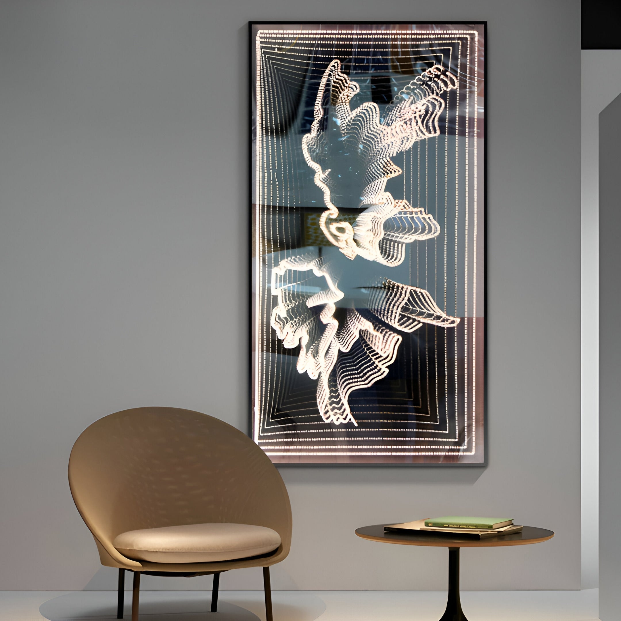 Horizon Butterfly Harmony 3D LED Mirror Wall Art combines natural beauty with contemporary sophistication. Featuring delicate butterfly motifs intricately set against a reflective mirror backdrop, this artwork is framed with a metal border that enhances its modern appeal. The three-dimensional design brings the butterflies to life, while integrated LED lighting highlights their elegance and adds a soft, ambient glow. The metal frame provides durability and structure, ensuring this piece remains a timeless addition to your interior. Perfect for living rooms, bedrooms, or hallways, this wall art blends functionality as a mirror with the artistry of a stunning décor centerpiece.