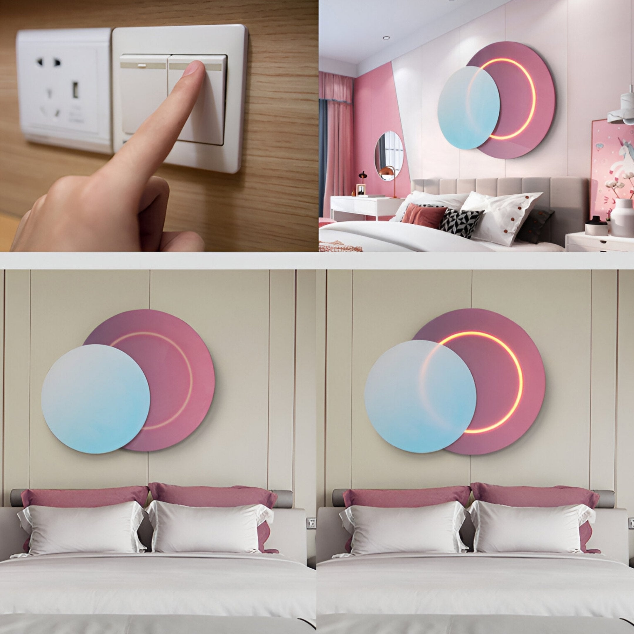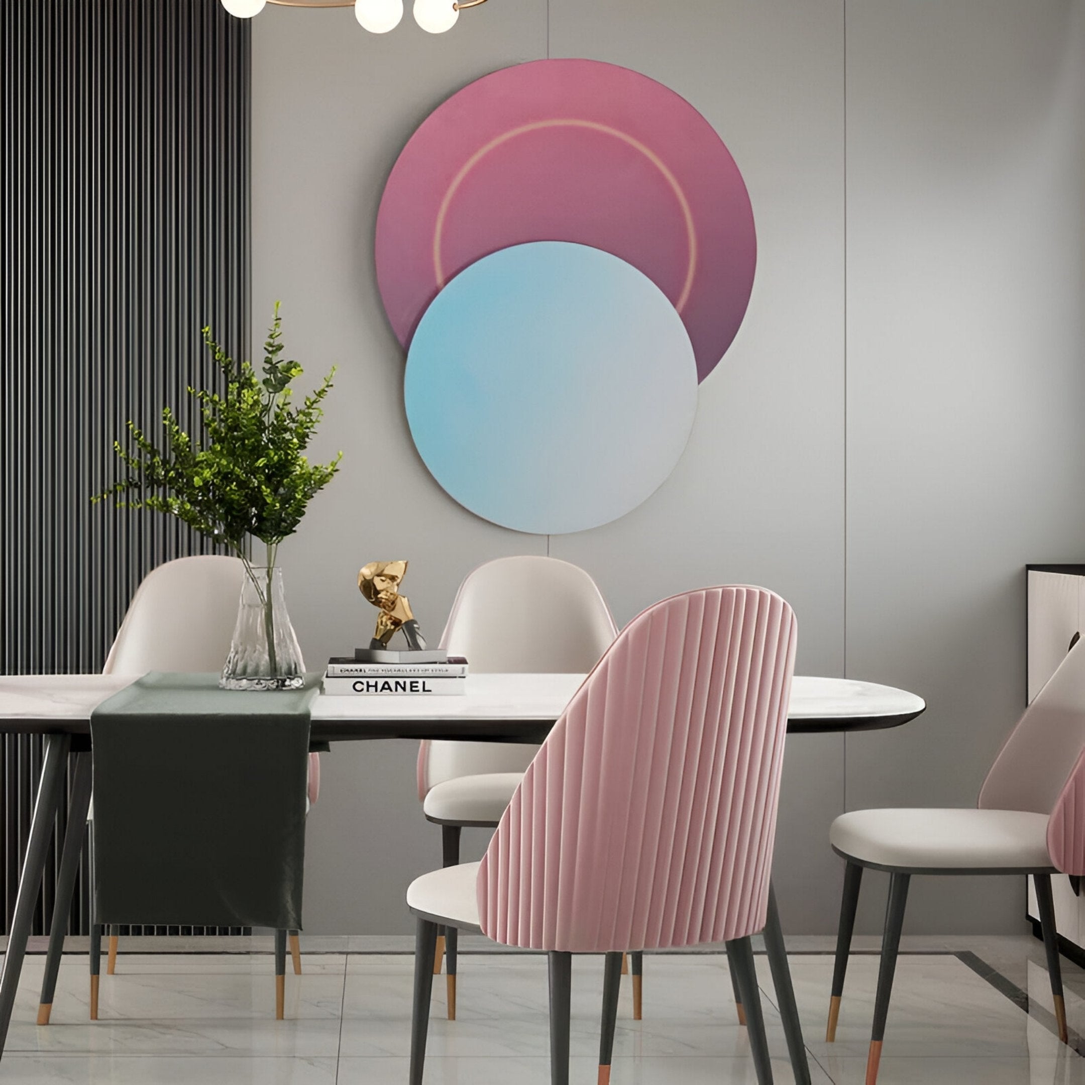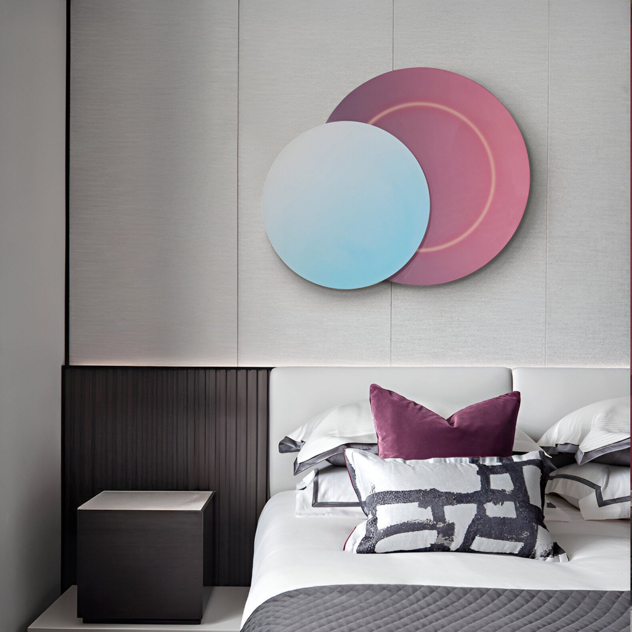 An exquisite fusion of soft hues and celestial inspiration, the Lunar Blush Sky Crystal Porcelain 3D White LED Wall Art brings modern elegance to contemporary interiors. This unique design features overlapping circular elements in a harmonious blend of blush pink and sky blue, evoking the serene beauty of planetary alignments. Crafted from premium crystal porcelain, the smooth surface enhances the sophisticated color gradient, while the white light LED illumination creates a subtle, ethereal glow. The interplay of pastel tones and soft illumination transforms this piece into a statement of refined artistry.