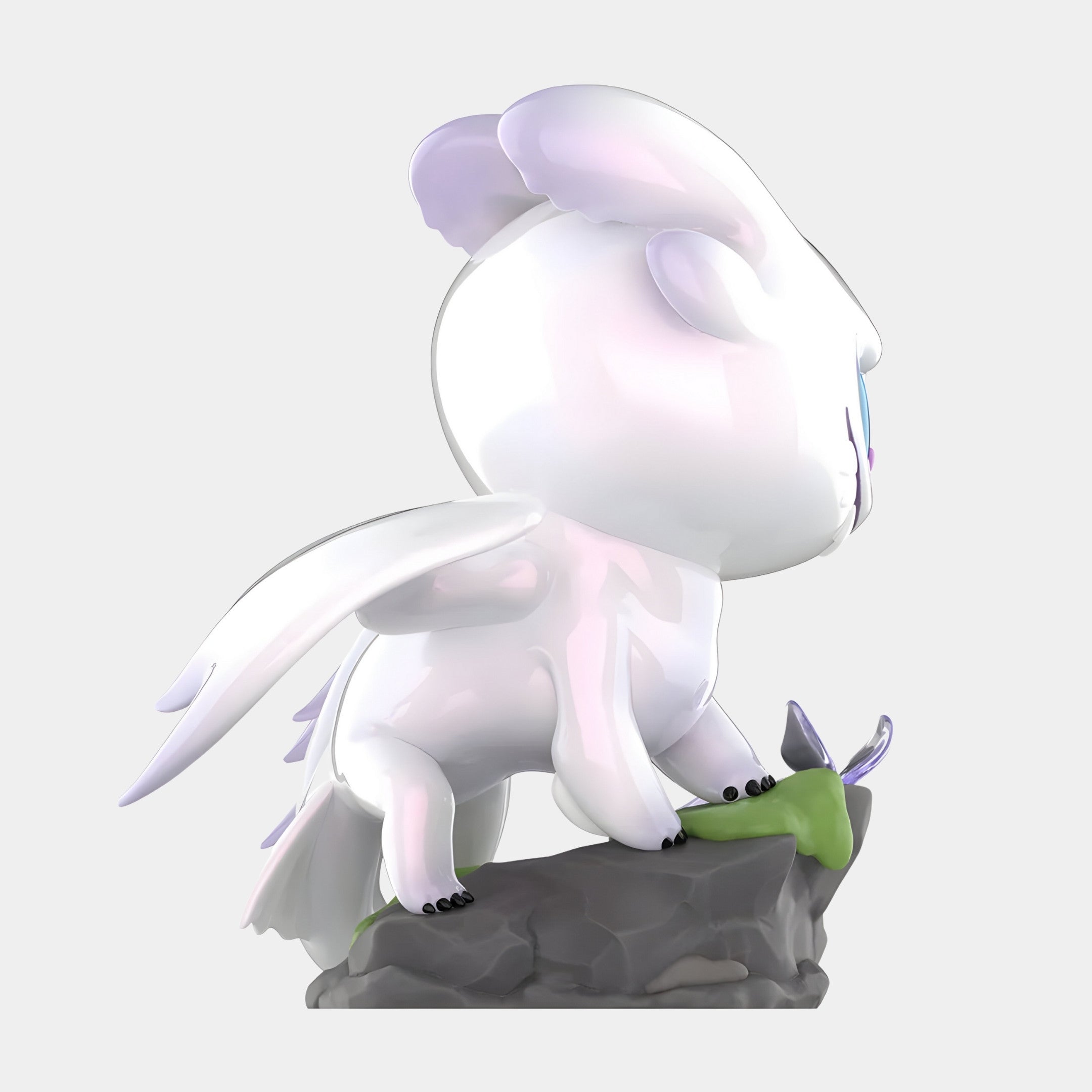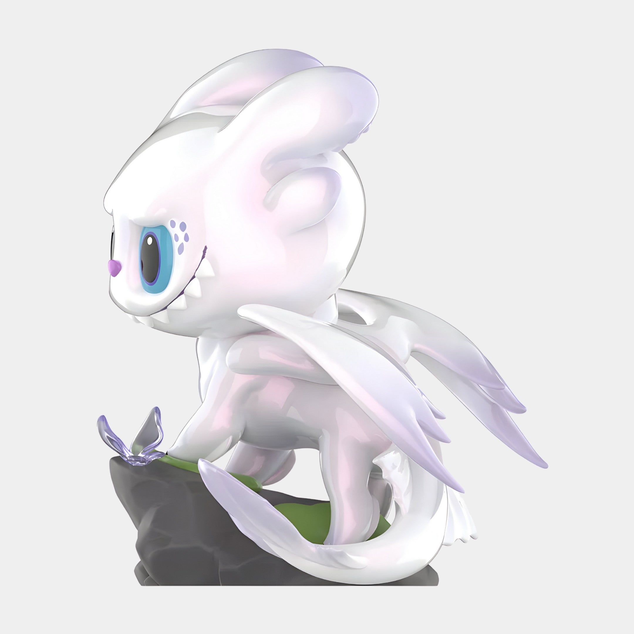 With an enchanting iridescent finish and delicately sculpted form, the 160cm Dragon Bond Light Fury Labubu Sculpture brings a mystical presence into your space. Inspired by the beloved dragon design, this piece blends charm with a powerful silhouette, featuring wide, expressive eyes in a luminous blue hue, winged limbs curved in mid-motion, and a pearly white body resting on a rocky base. The sculpture captures the creature’s gentler spirit with soft lavender gradients across the tail, ears, and wings, while a small translucent butterfly perched on the rock adds a peaceful touch. Every detail, from the clawed toes to the subtle scale texture, has been crafted in high-quality fibreglass to deliver visual impact and indoor durability.