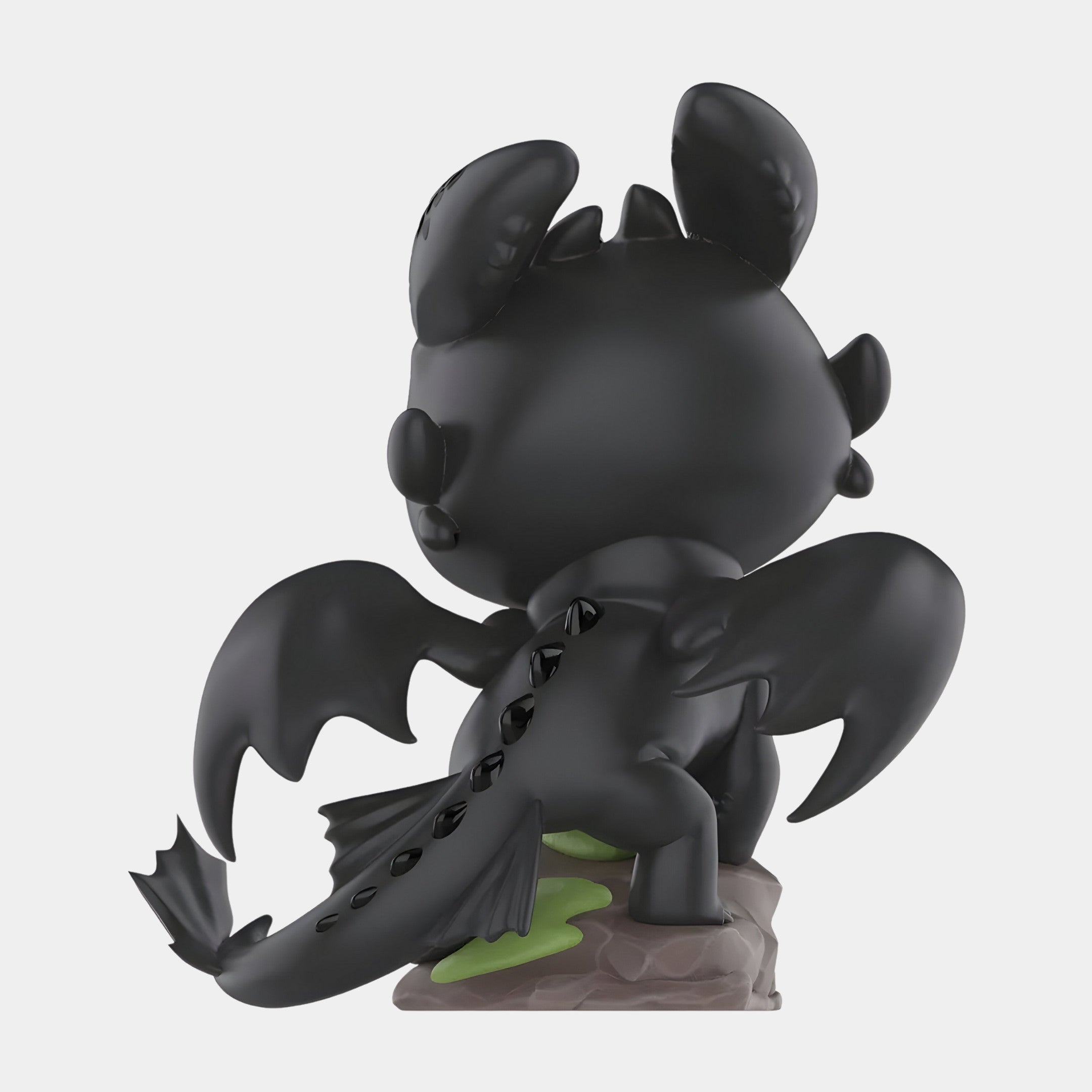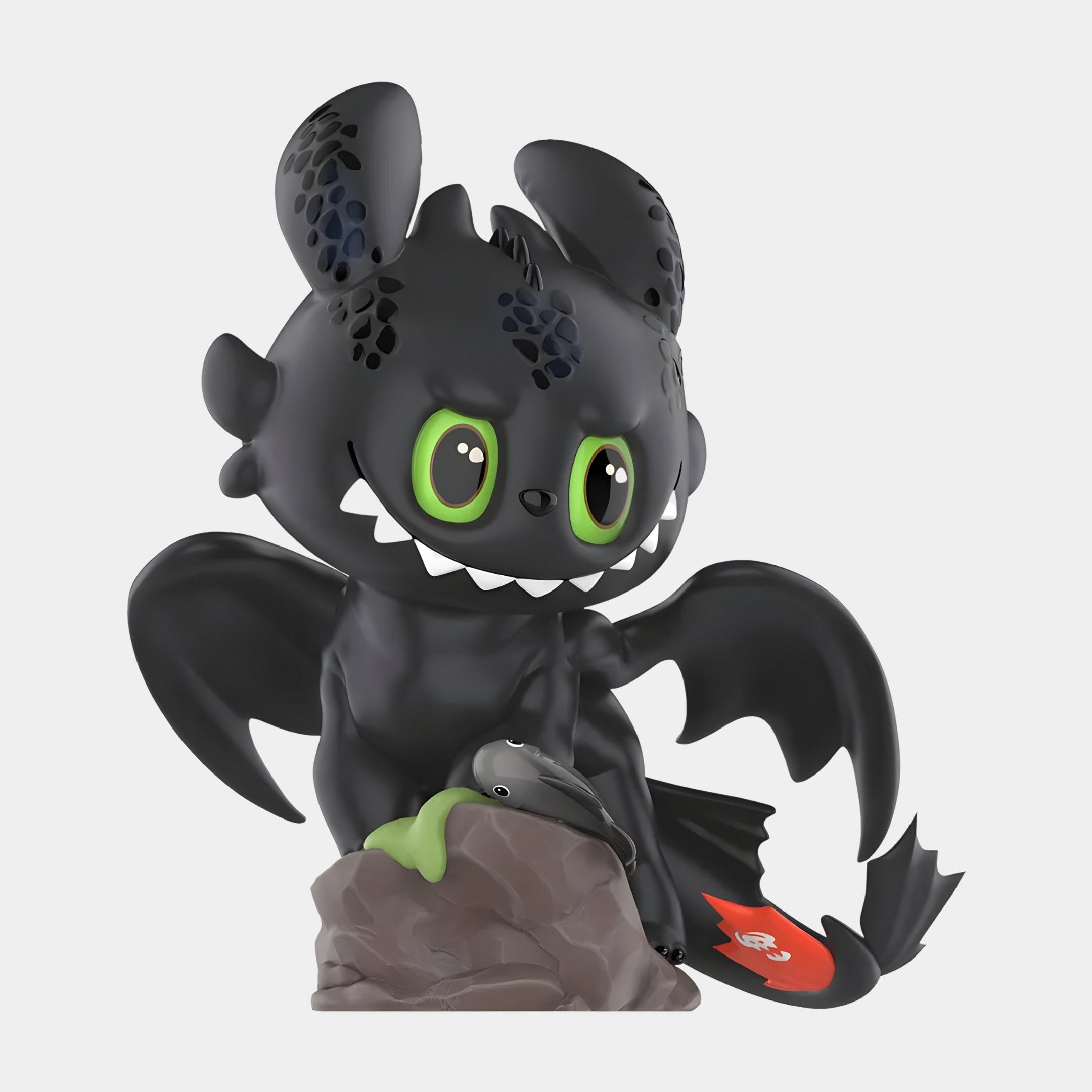 The Dragon Bond Toothless Labubu Sculpture 100cm is a charismatic blend of fantasy and playful charm. Crafted in durable fibreglass, this sculpture captures Labubu dressed as the iconic Toothless from?How to Train Your Dragon. With jet-black detailing, vibrant green eyes, and adorable dragon ears and scales, it’s full of animated energy. The matte black finish is offset with sculpted textures on the head and wings, adding depth to its form. It stands alert, perched atop a rocky base with moss accents, showing off its sweeping tail, raised claw, and playful stance. The red prosthetic tail fin adds a faithful nod to Toothless’s story, while Labubu’s signature wide grin brings in an extra level of mischief.