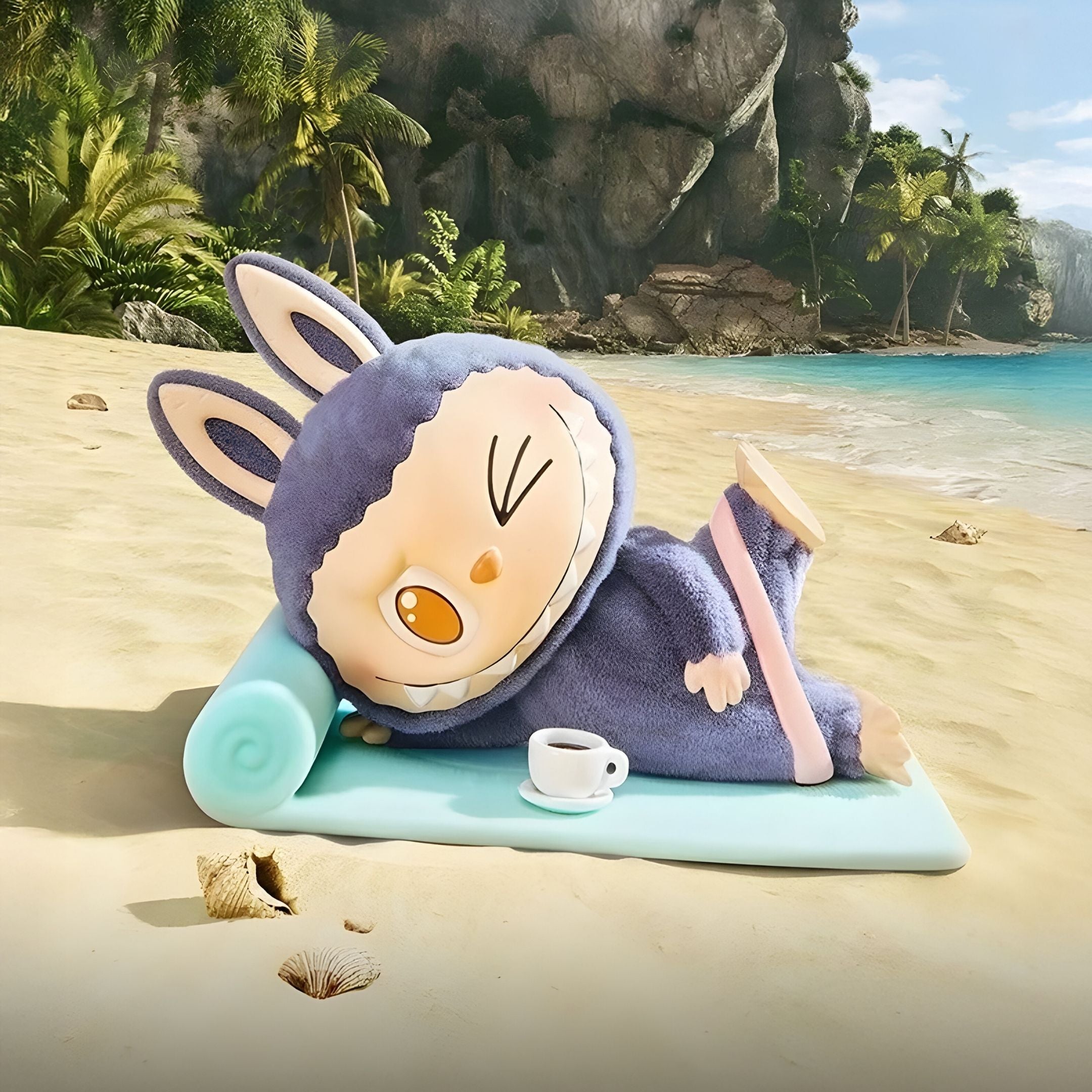Designed for indoor display, this laid-back figure softens hotel suites, wellness studios and home libraries alike. Position it on a low console, beneath track lighting or at the foot of a reading chair to spotlight the winking face and porcelain cup. The muted purple and mint palette blends with neutral walls, timber floors or terrazzo benches, letting stylists refresh surroundings seasonally without fuss. Collectible-toy charm meets artisan finish, inviting guests to pause, smile and share photos. Whether anchoring a café window, greeting clients in a yoga lobby or adding personality to a lounge, the Lazy Yoga Americano Labubu Sculpture turns any space into a chilled talking point.