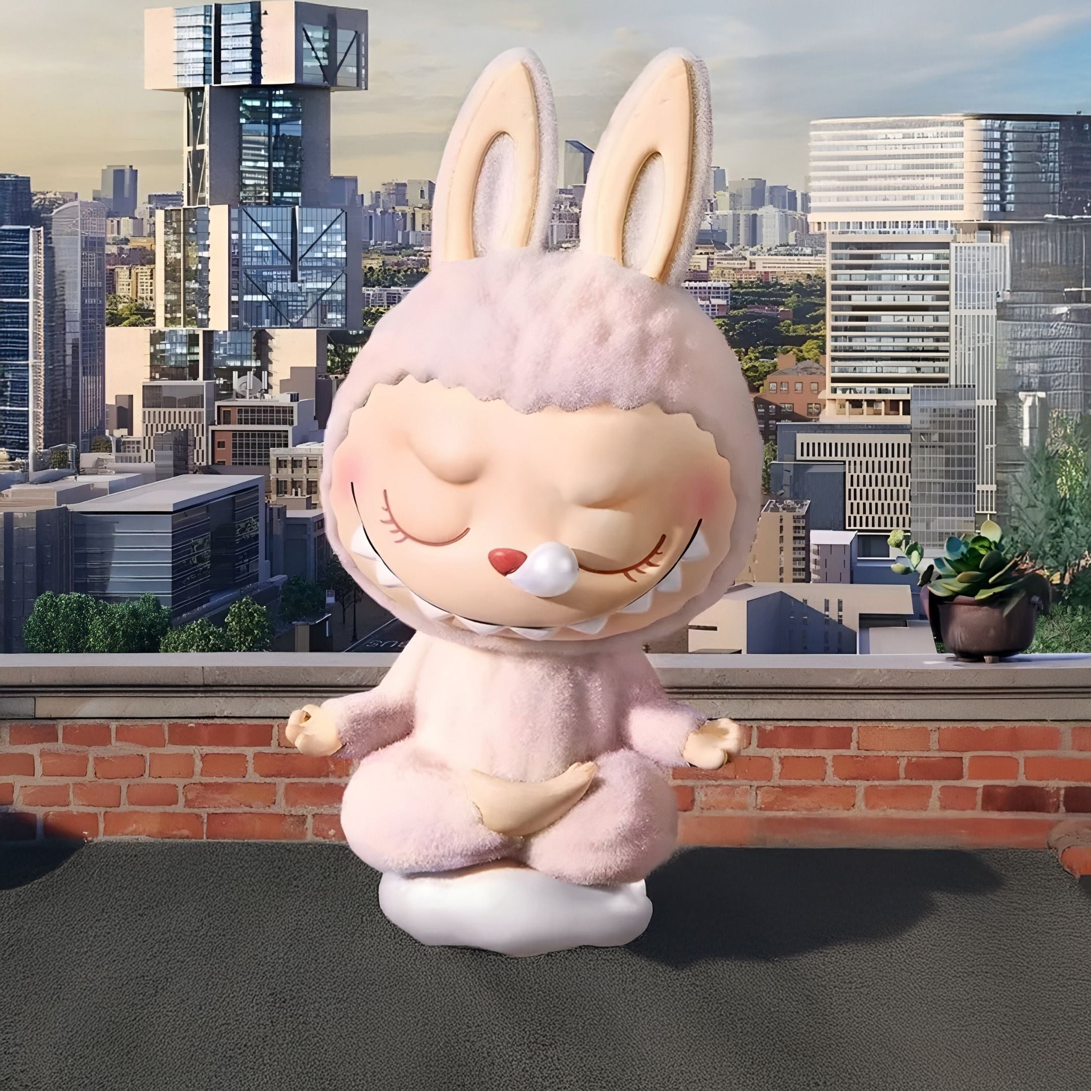 Sized to anchor yoga studios, spa foyers and hotel lounges, this calm figure slips easily into modern interiors. Place it on a timber plinth, beside a low sofa or beneath pendant lights to spotlight the cloud base and velvety surface. The muted blush palette blends with timber, concrete or greenery, allowing stylists to rotate seasonal accents without colour clashes. Guests pause, smile and share photos, organic reach for wellness brands and design-focused retailers. Whether greeting clients in a treatment space or creating a mindful moment in a private library, the Sleeping Labubu Sculpture offers an instant sense of ease.