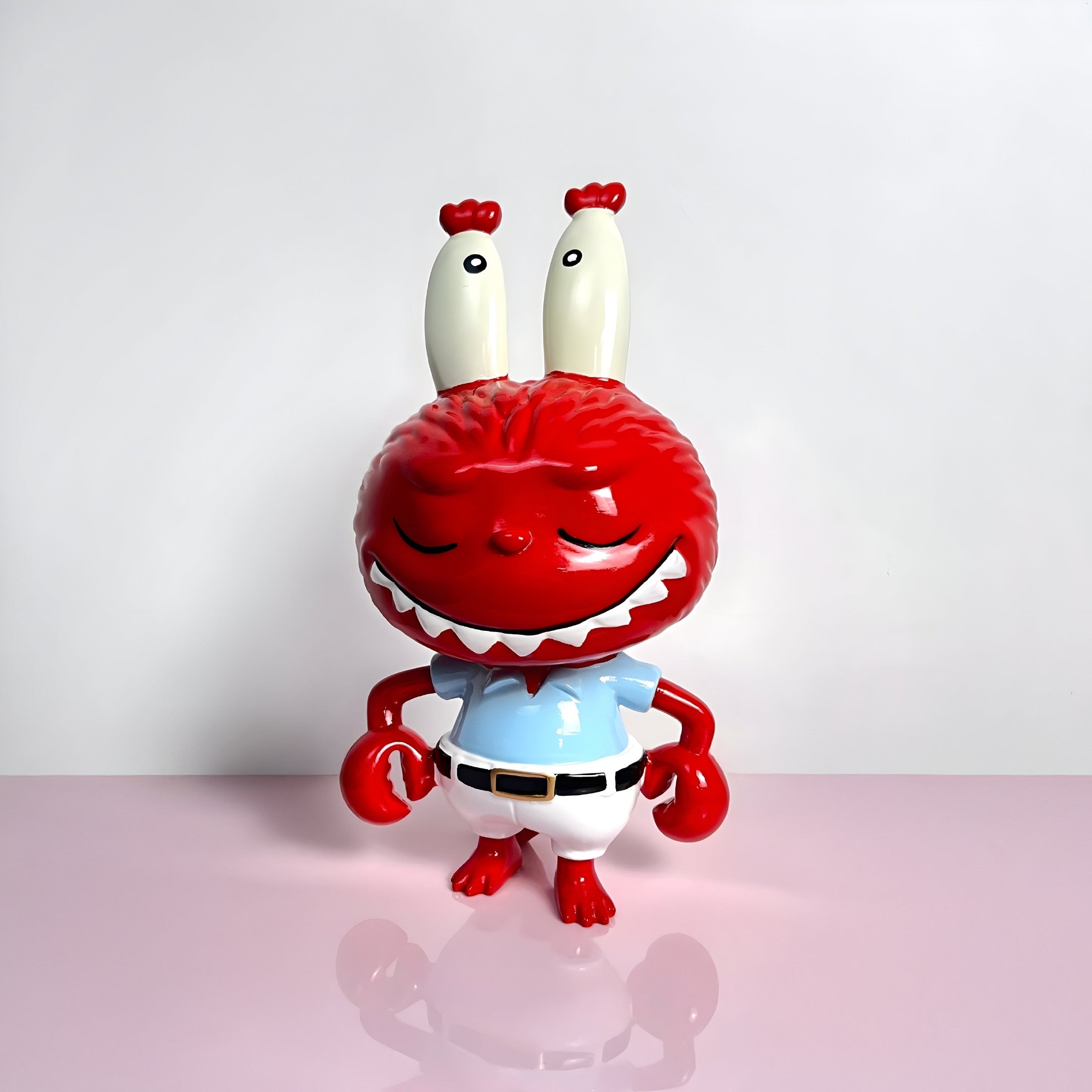 Perfect for themed cafés, reception areas and creative studios, this centrepiece adds instant pop-culture energy. Position it beside a neon sign, atop a minimalist plinth or under track lighting to spotlight the candy-red shell and crisp tailoring. Blending nostalgic cartoon appeal with collectible-toy artistry, the figure sparks conversation and invites selfies. Pair with marine-inspired artwork, monochrome furnishings or metallic side tables to let the crimson finish command attention. Whether anchoring a pop-up exhibition or greeting visitors at a design agency, the Mr. Krabs Labubu Sculpture delivers cheeky character and lasting visual impact.