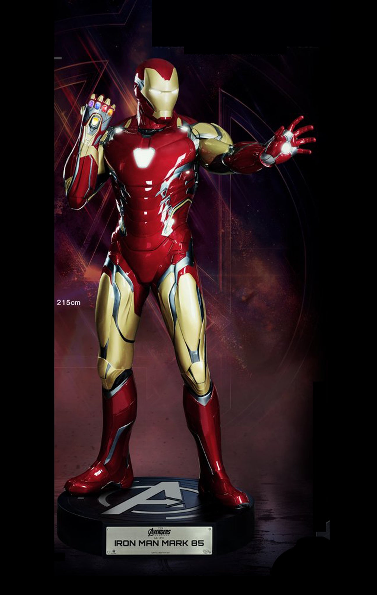 Made from fiberglass / resin and standing 84” tall on its custom base, the statue features the pivotal “Nano glove” - crucial to the plot, in order to finally destroy Thanos in the action-heavy finale of the film. Not only do the 'Infinity stones” in the glove light up, additional light-up features include the suit’s chest arc reactor, palm blaster, and eyes. ?
