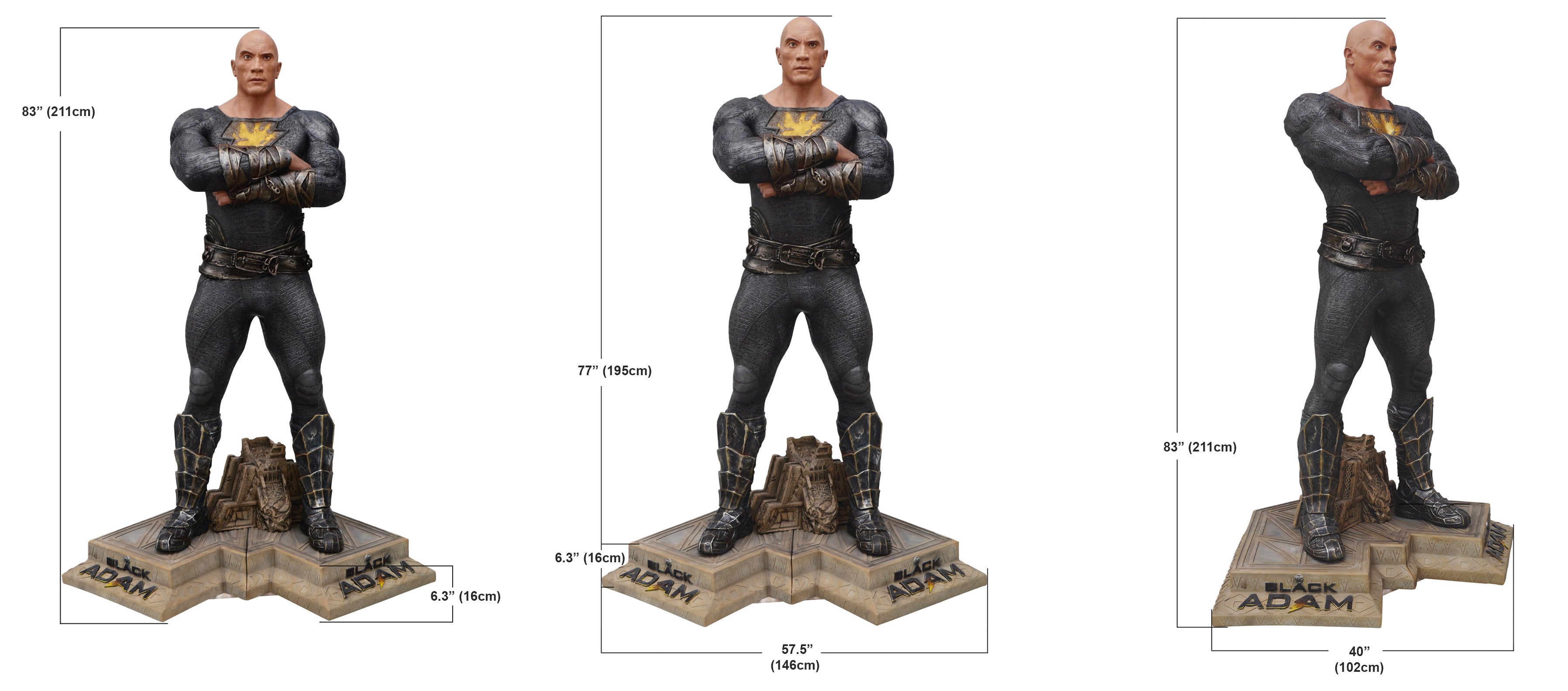 2022 doesn’t just bring Black Adam to the screen ― it brings him to your home. Standing?almost 7 feel tall (including base), this life-sized statue is a highly detailed replica, made directly from the production’s 3D visual?effects files. The ornate and intricate suit features?both, raised and indented?hieroglyphs, as seen in the film, making his a supremely complex costume by any superhero standard. Black Adam stands, in his dominant and superior pose, on a custom base, which is modeled after one of the film’s ruin set pieces.?
