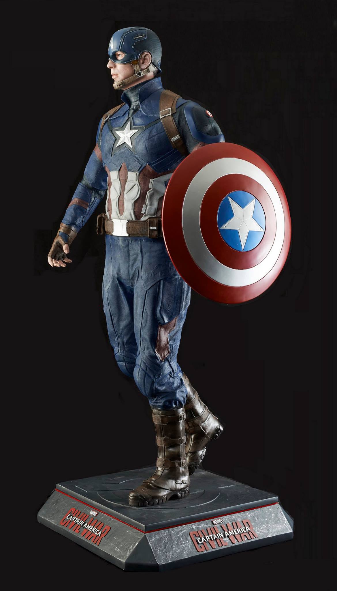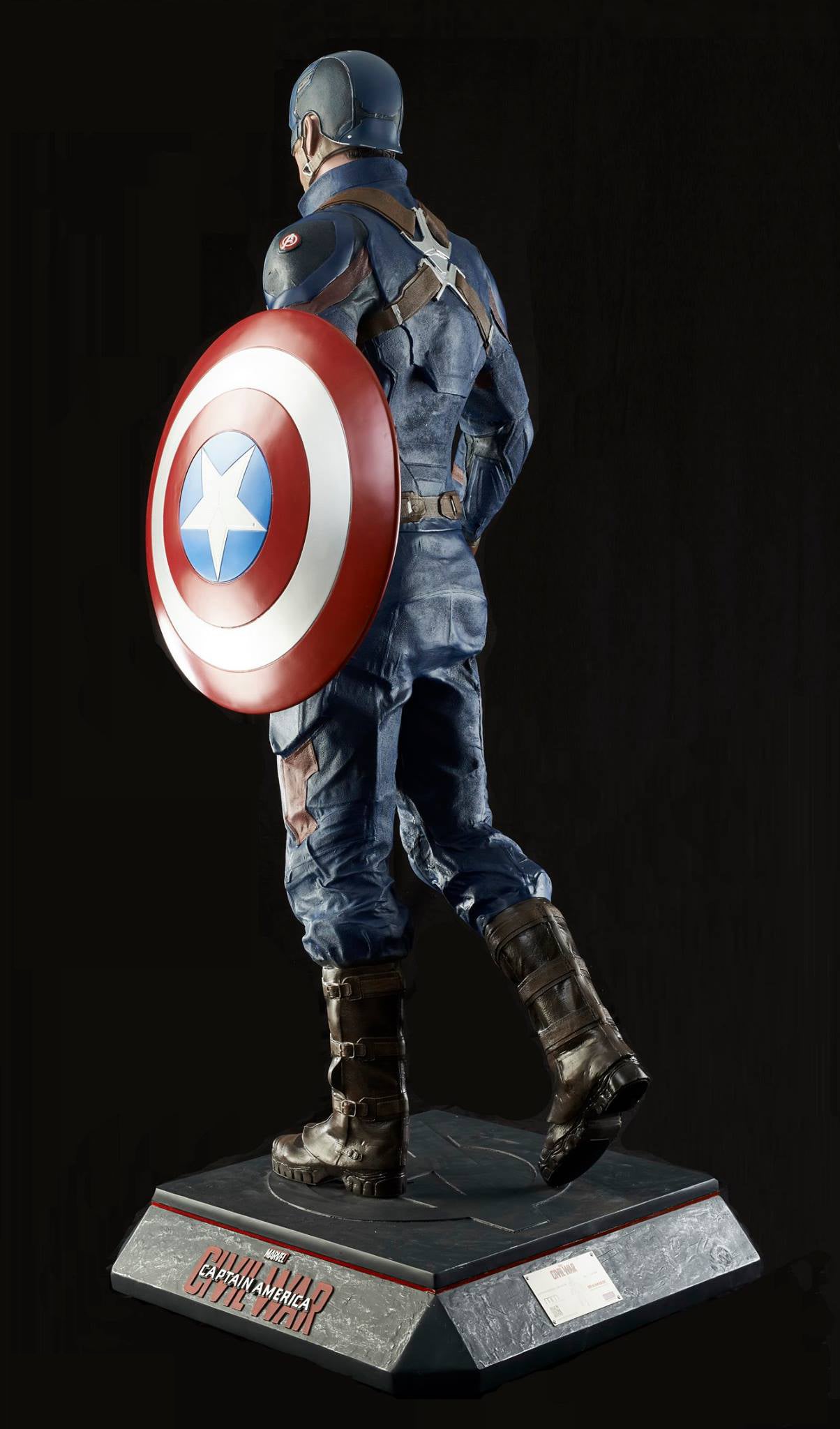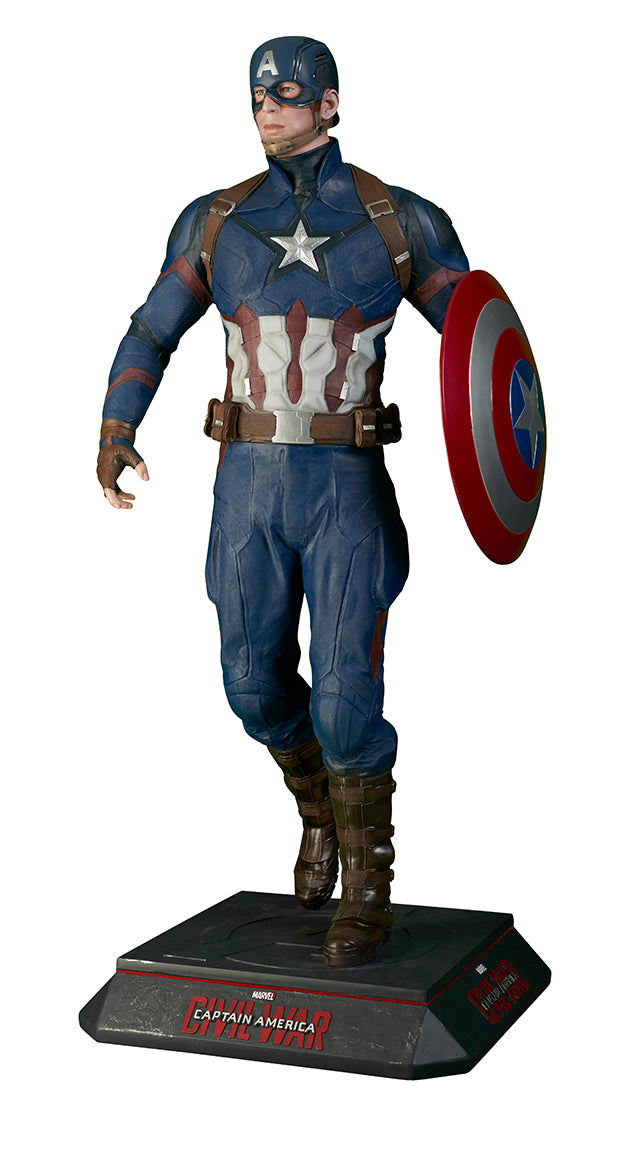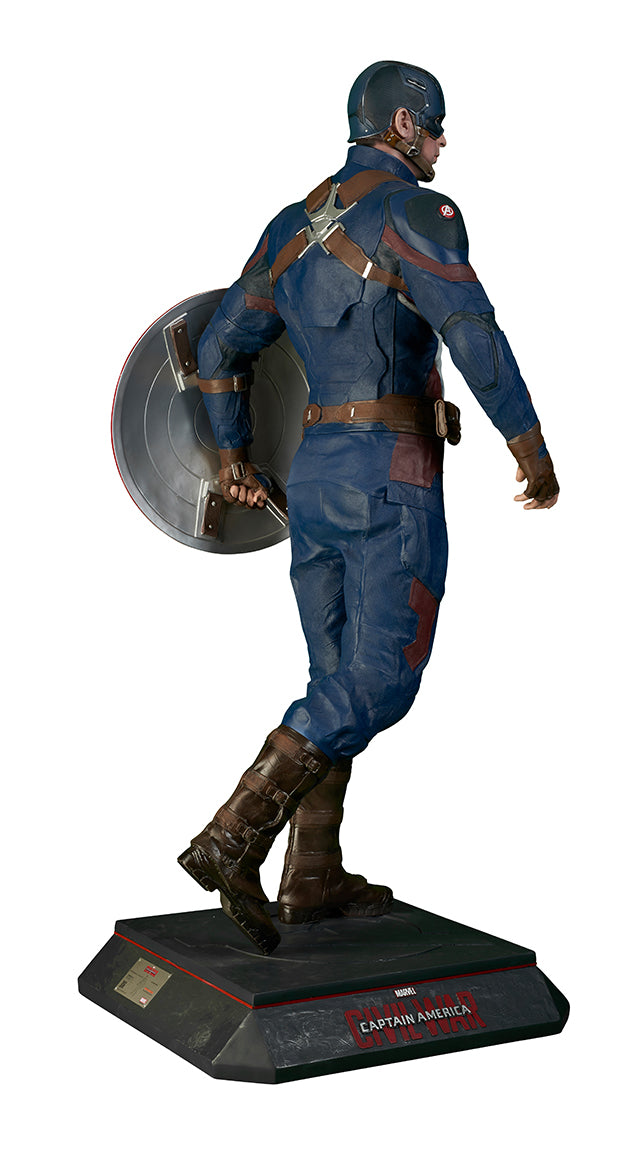 For this latest and most daring adventure, Steve Rogers, aka Captain America dons a brand-new suit that features both tactile elements, as well as his iconic red, white and blue colors. Statue is made from fiberglass, comes on a themed base and also includes Cap’s signature vibranium shield.