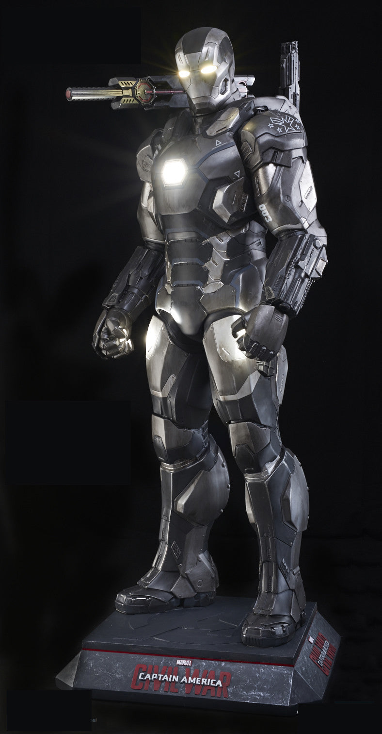 From box office smash, CAPTAIN AMERICA: CIVIL WAR, comes Colonel James Rhodes’ updated?War Machine Mark III suit of armor life-size statue.?Recreated in full scale in screen-accurate detail, this is a sight to behold in person. At a towering 84' inches tall and equipped with his signature back-mounted machine gun and baton, as well as LED lights matching his onscreen appearance (eyes, chest and repulsers), this Avenger commands attention.?