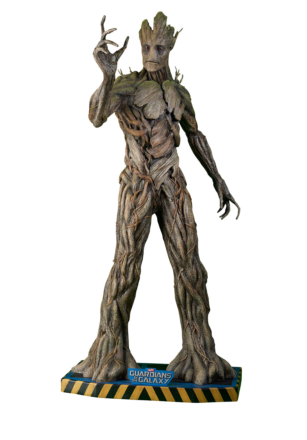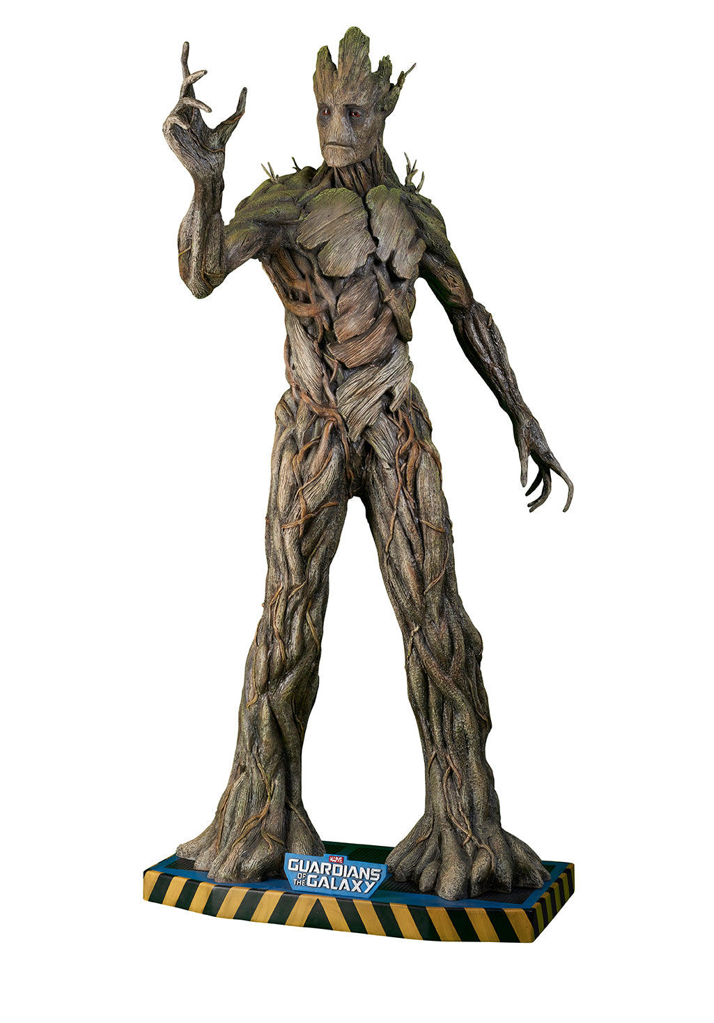 Groot stands a whopping 8 ? feet tall, is made of fiberglass and comes with a themed base. Or as he would say: ?