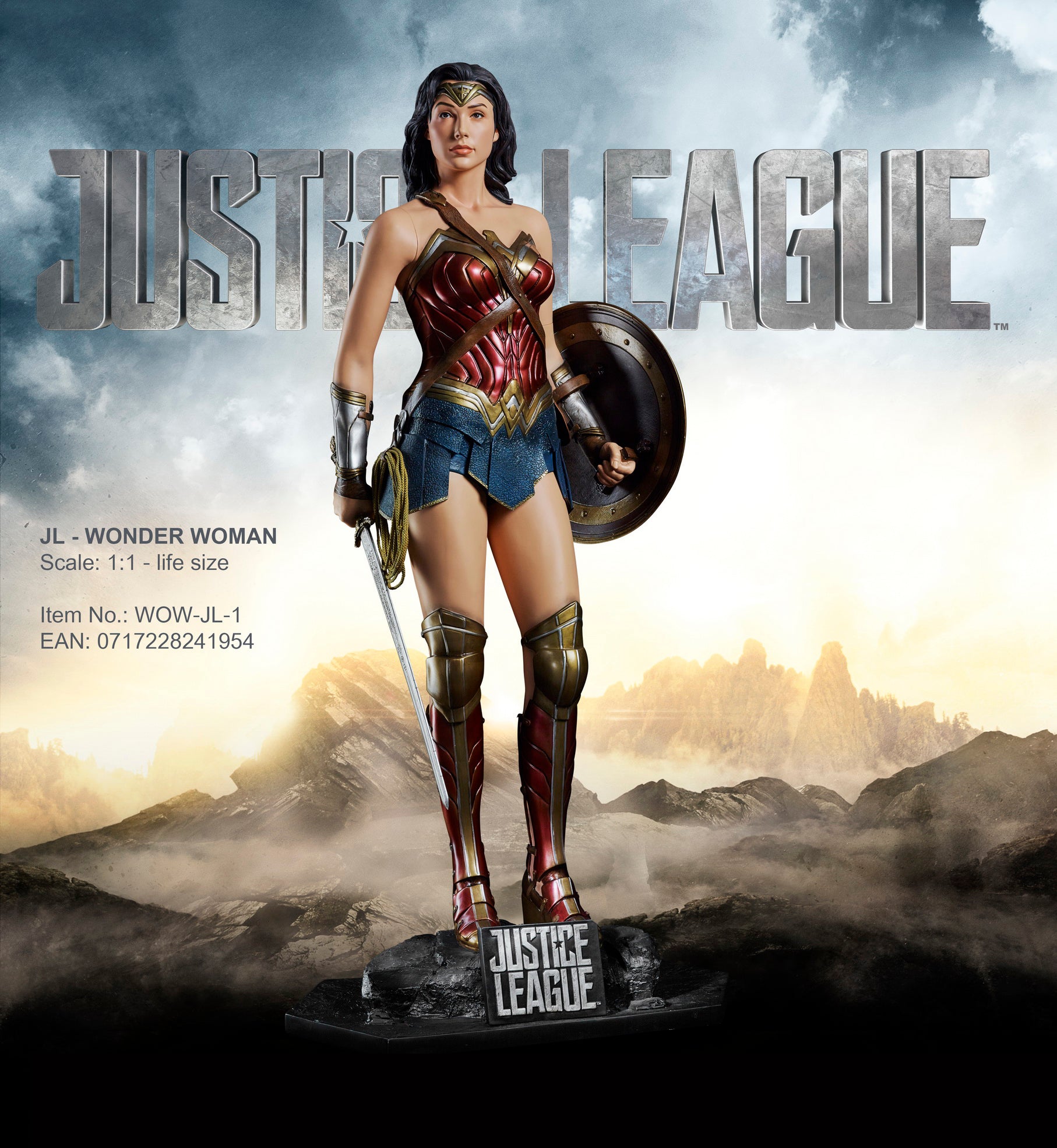 From the assembly of DC’s finest in their grand spectacle?superhero?movie, comes the entire JUSTICE LEAGUE as a group of life-size character statues, made from fiberglass and mixed media and complete with individual bases, because: