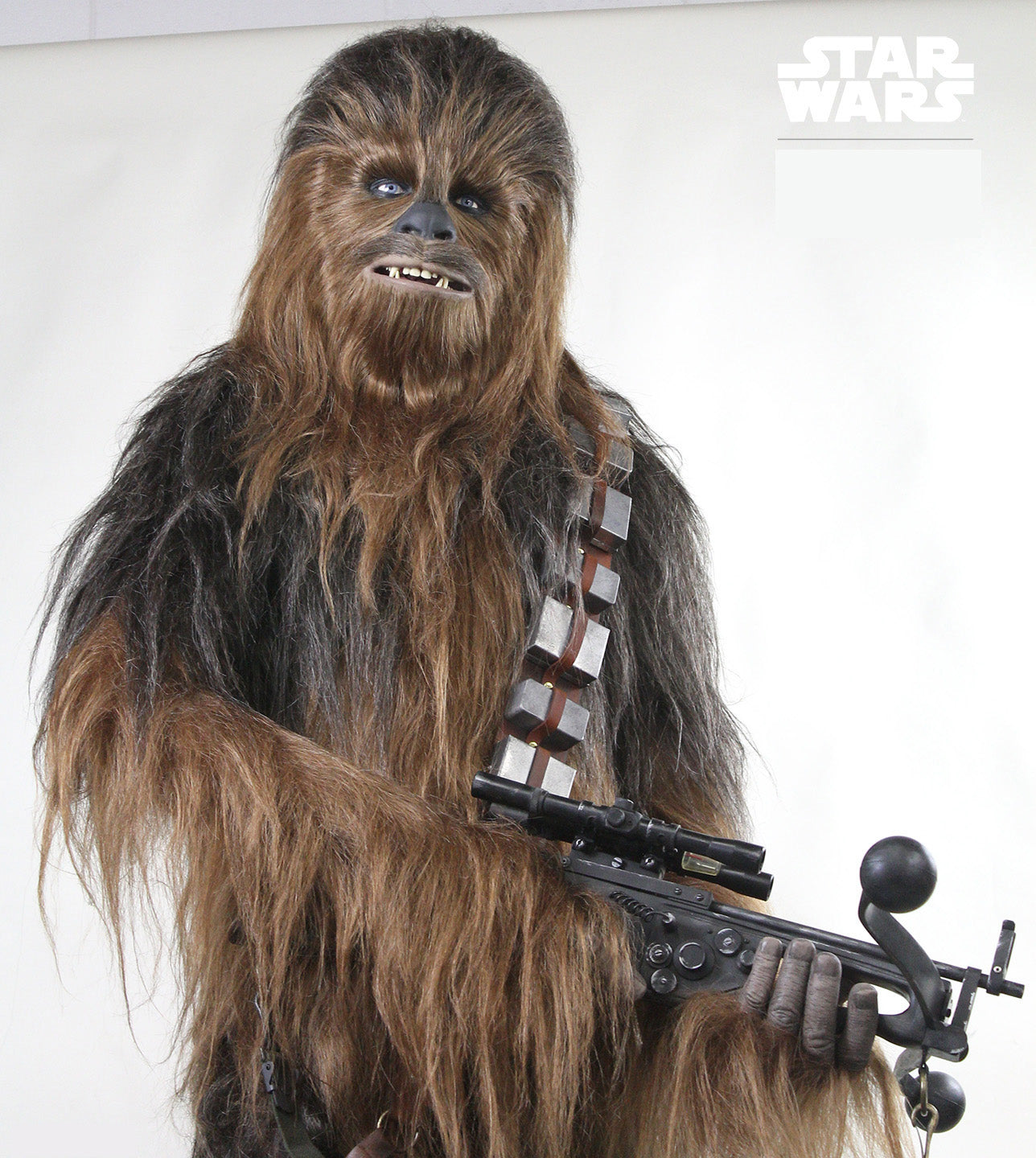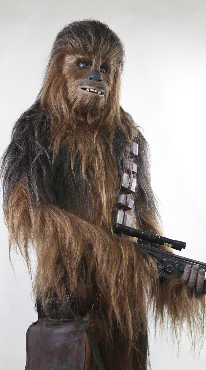This 7′ 6″ tall (7′ 9″ on the included museum base) Chewbacca statue features detailed silicone hands and a realistic, highly detailed Wookiee? bowcaster.? This full size figure of Chewie is a towering presence, made to accurately recreate the character’s incredible height. A team of FX artists developed the life-sized Star Wars figure with access to an original production-made face and teeth castings, along with hands-on examination of the original costume, mask and hair used in the original trilogy films.?