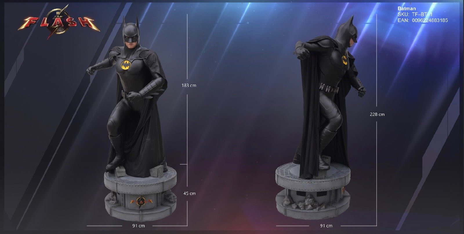 Barry Allen uses his super speed to change the past, but his attempt to save his family creates a world without super heroes, forcing him to race for his life in order to save the future. From this highly anticipated film ― labeled by James Gunn the best superhero movie EVER ― comes a lifesize statue of BATMAN, as played by Michael Keaton in his amazing return as the Dark Knight. His Bat-suit takes off where Batman Returns left it off, so it is familiar, yet new and updated.?Produced from Warner Brothers' production assets, this is an authentic replica and?the first time a licensed Michael Keaton Batman in 1:1 scale has ever been produced for the legion of his fans.