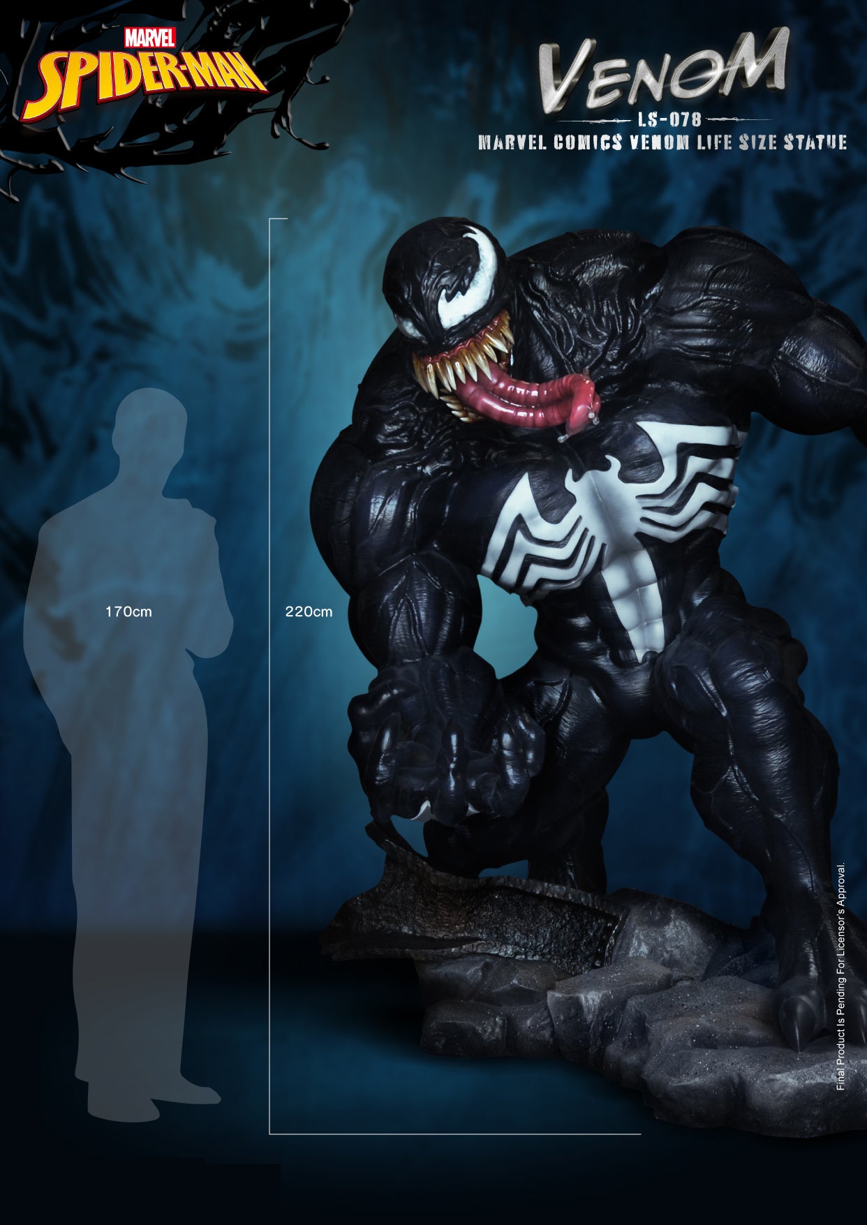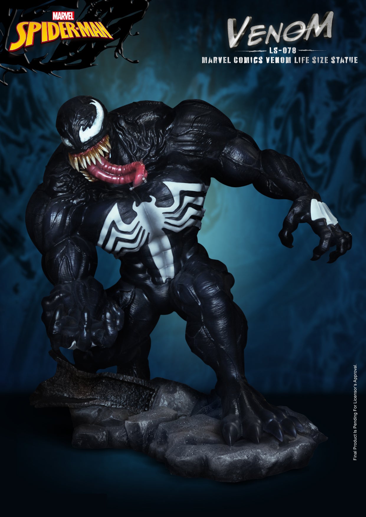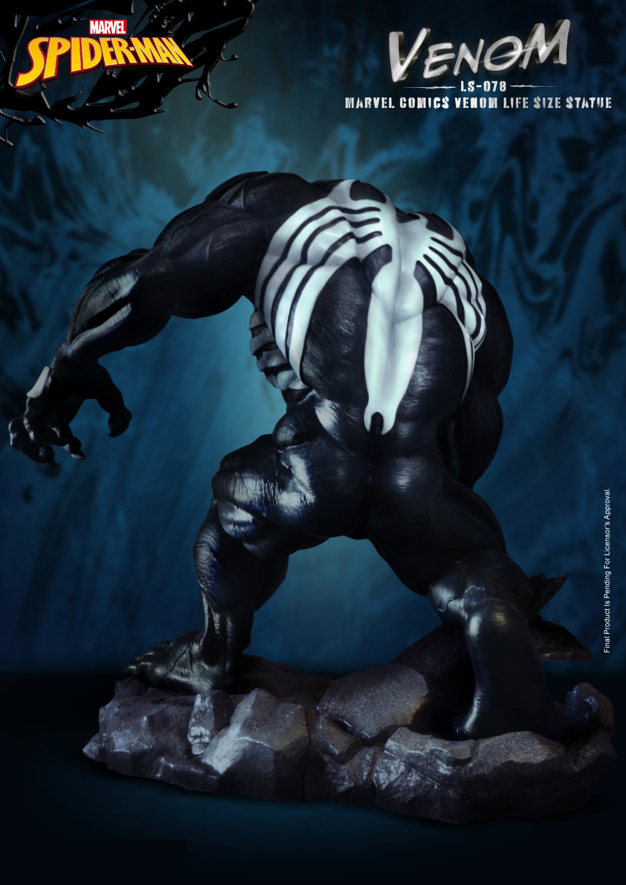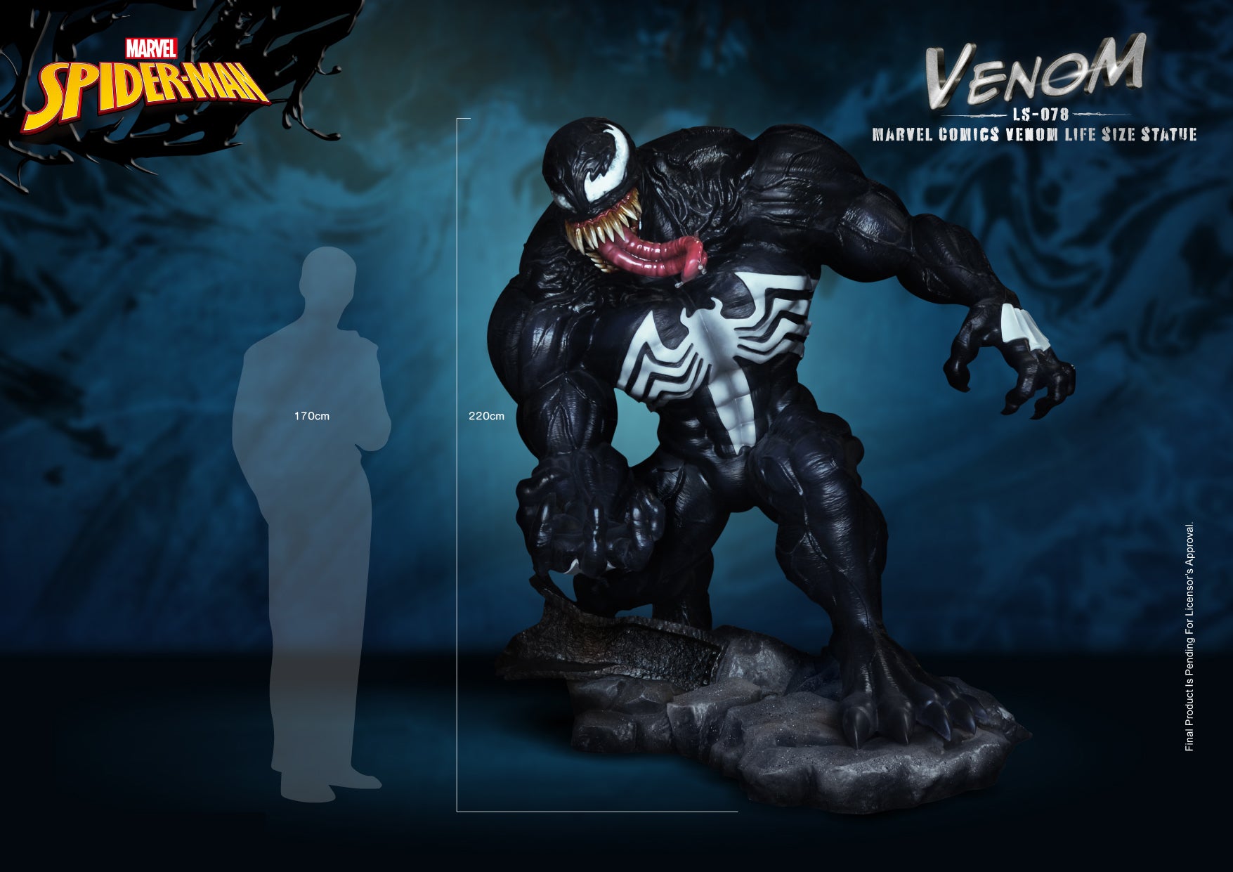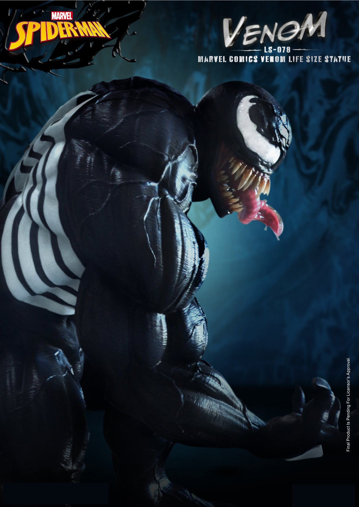 We are proud to introduce the latest in 1:1, highly detailed, life size statues: the Marvel Comics symbiote VENOM. At around 87 inches (220cm) in height, Venom’s comic style design is accurately recreated down to the muscle definition and venomous veins. Using years of experience in manufacturing high-end statues, the team has recreated Venom’s infamous grin and long slimy looking tongue. His otherworldly evil expression and huge physique is carefully recreated with hand-painted craftsmanship. Paired with a stone-clad platform and an individually numbered plaque, this life-size statue is perfect for home collections and corporate displays.