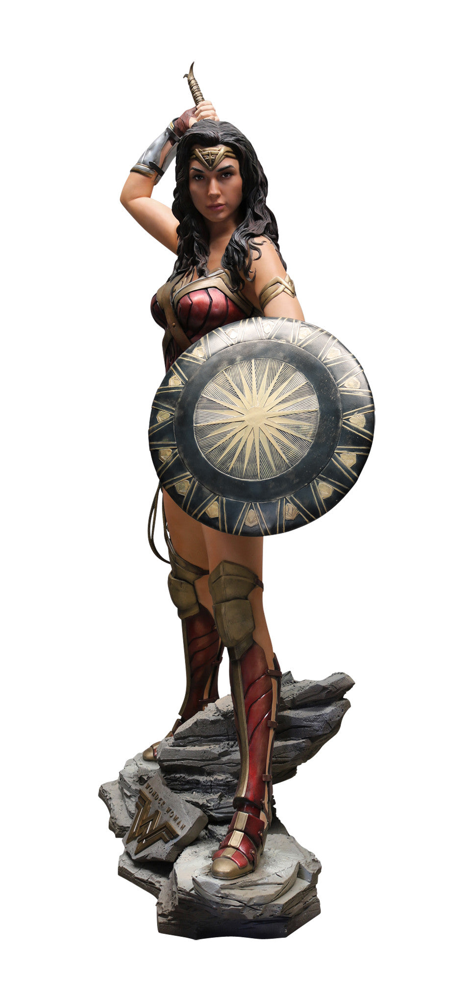 From DC's?wildly successful WONDER WOMAN film comes this beautiful, lifelike statue of our favorite Amazonian Warrior. Posed like we see her in one of the film’s key scenes, this life-sized replica is a beauty to behold and captures the sheer beauty and ferociousness alike of the character, as portrayed by actress Gal Gadot.?Comes with a thematic base including the film’s logo.