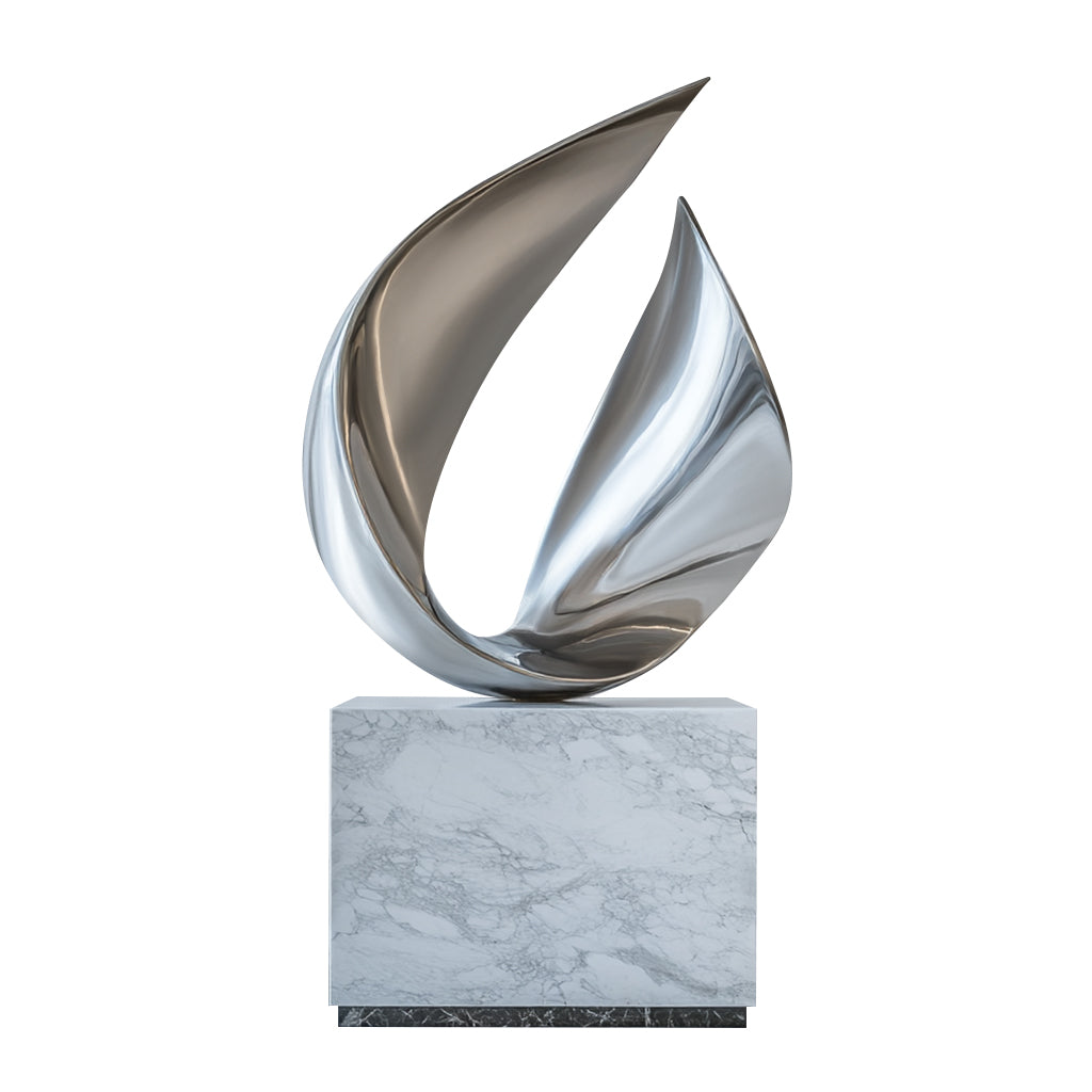 - Elegant Design: A sleek, abstract form of this modern sculpture with smooth, flowing curves that complement modern architectural and interior design styles.