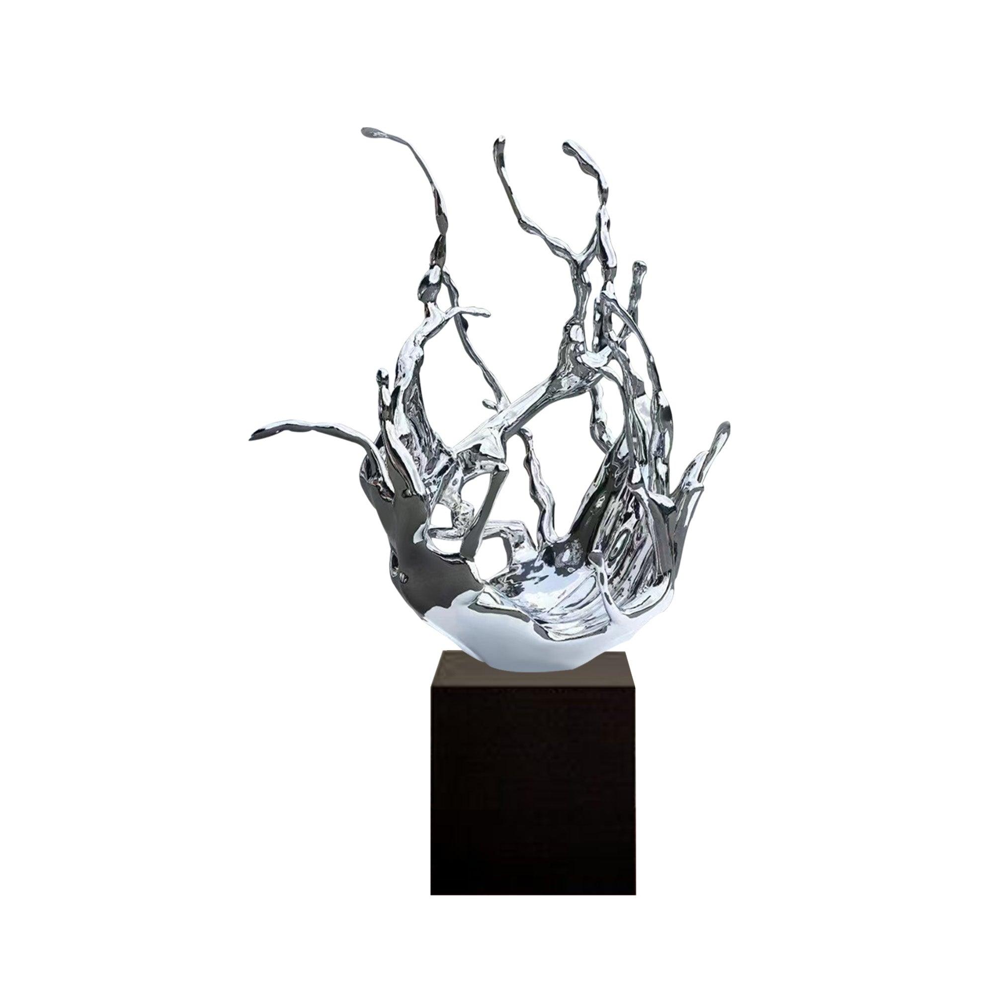 The 'Abstract Stainless Steel Splash Sculpture' is a stunning representation of movement and fluidity captured in time. Crafted from high-quality stainless steel and polished to a mirror finish, this modern sculpture evokes the dynamic beauty of a water splash frozen in mid-air. Its intricate and organic design, with fluid, branching forms, creates an eye-catching focal point in any space. Perfect for luxury interiors, office spaces, or art galleries, this abstract sculpture adds elegance, modernity, and a sense of flowing energy to the surrounding environment.