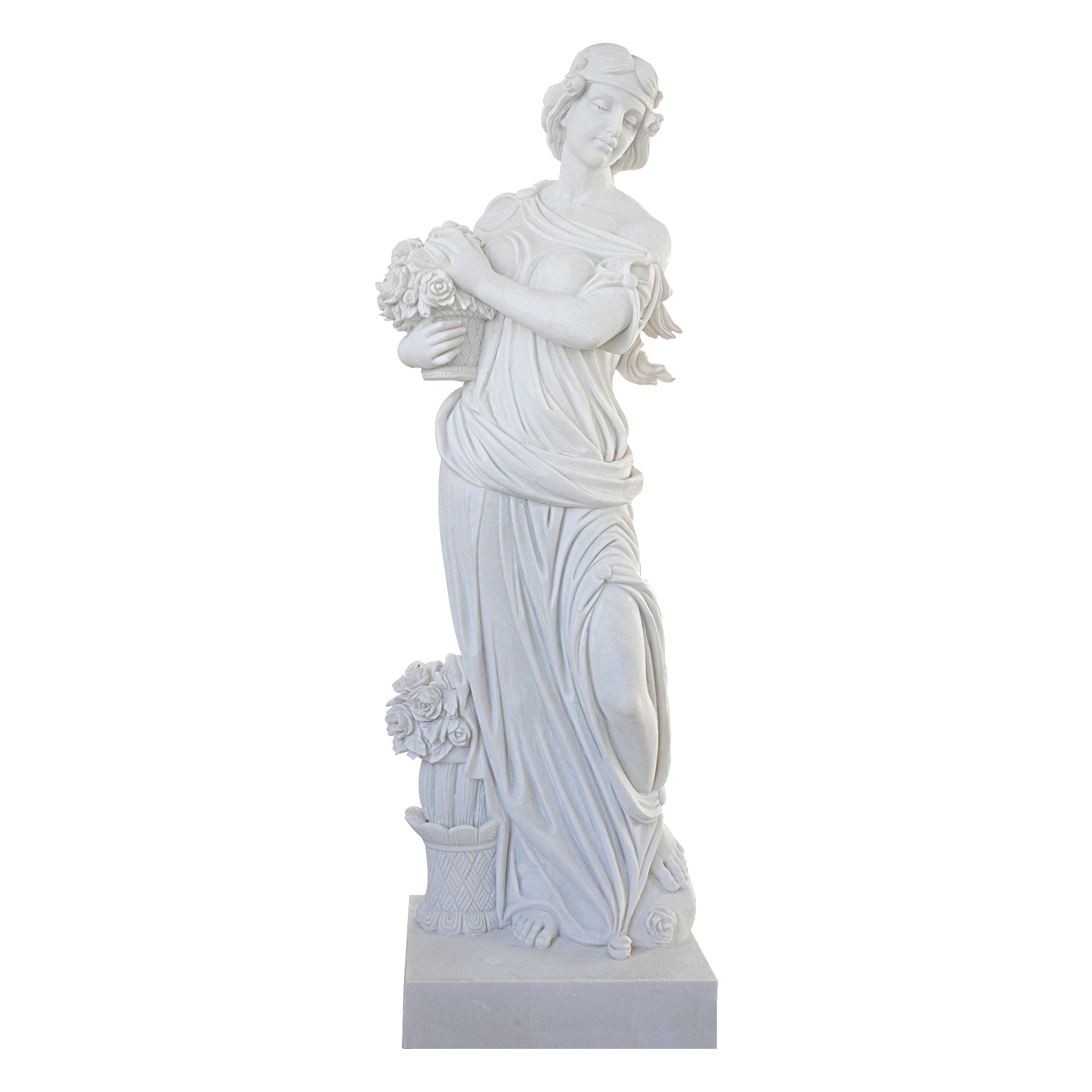 • PEGASUS Custom Elegant Garden and Home Décor Life-Size Natural White Marble Classical Greek Lady Statue Holding Flowers FM-075