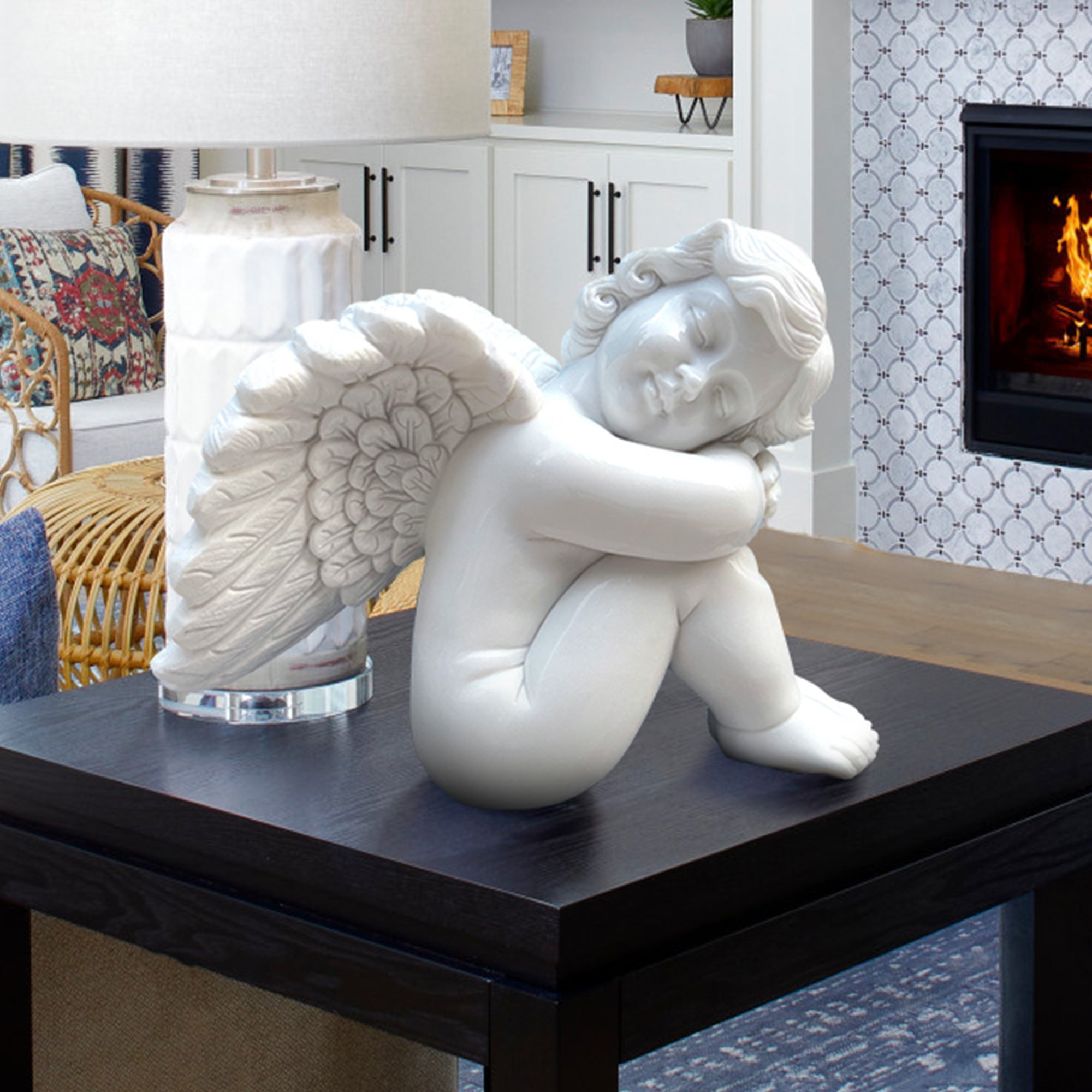 Hand-Carved Detail: Every aspect of the cherub, from its soft facial features to the intricate feather details of the wings, is meticulously carved to perfection.