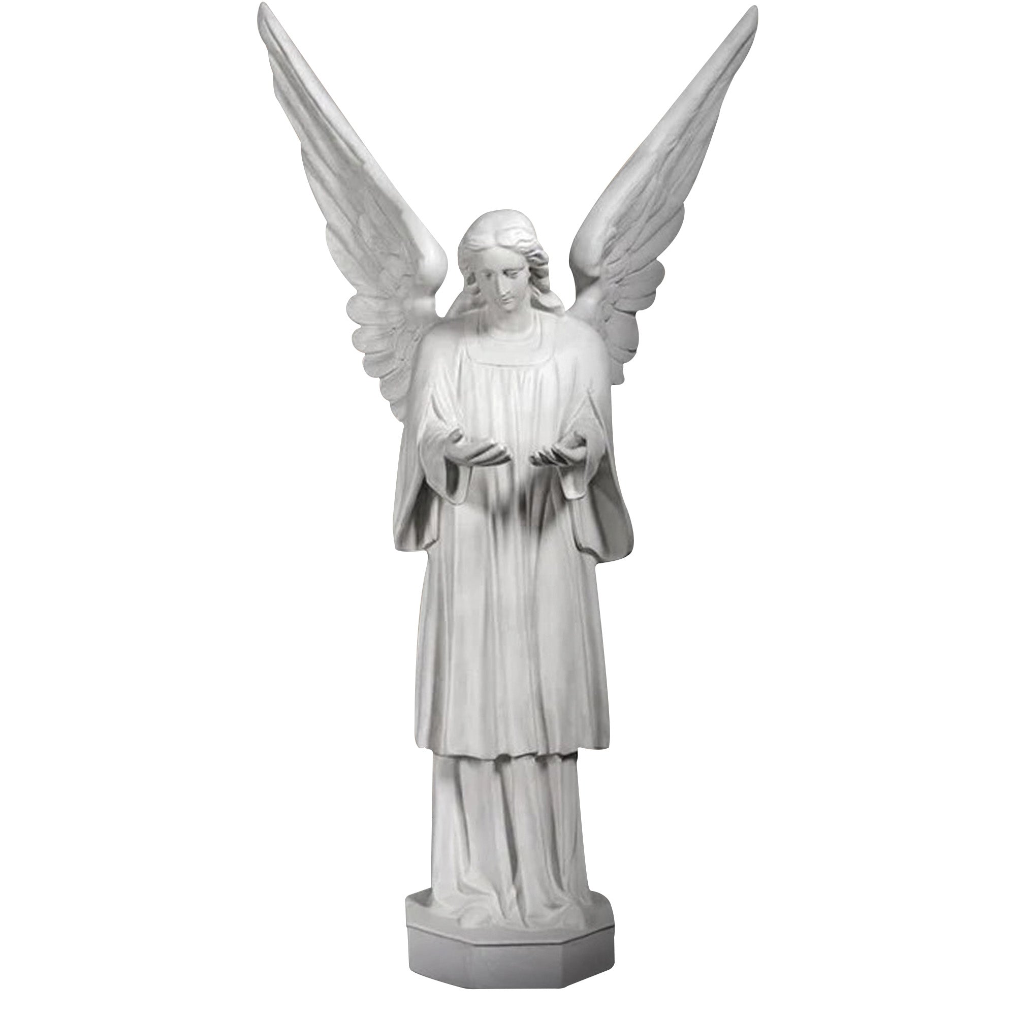 This Life-Size Cathedral Angel Marble Sculpture radiates a profound sense of peace and guardianship, ideal for spaces that seek a touch of the divine. Standing with outstretched hands, this angel statue is a symbol of welcoming grace, invoking comfort and spiritual connection. The lifelike details of the wings, robes, and serene expression reflect exquisite craftsmanship, while the polished white marble gives the statue a radiant presence. Perfect for enhancing the sacred atmosphere of cathedrals, memorial gardens, or private sanctuaries, this angel statue serves as a lasting emblem of protection and peace.