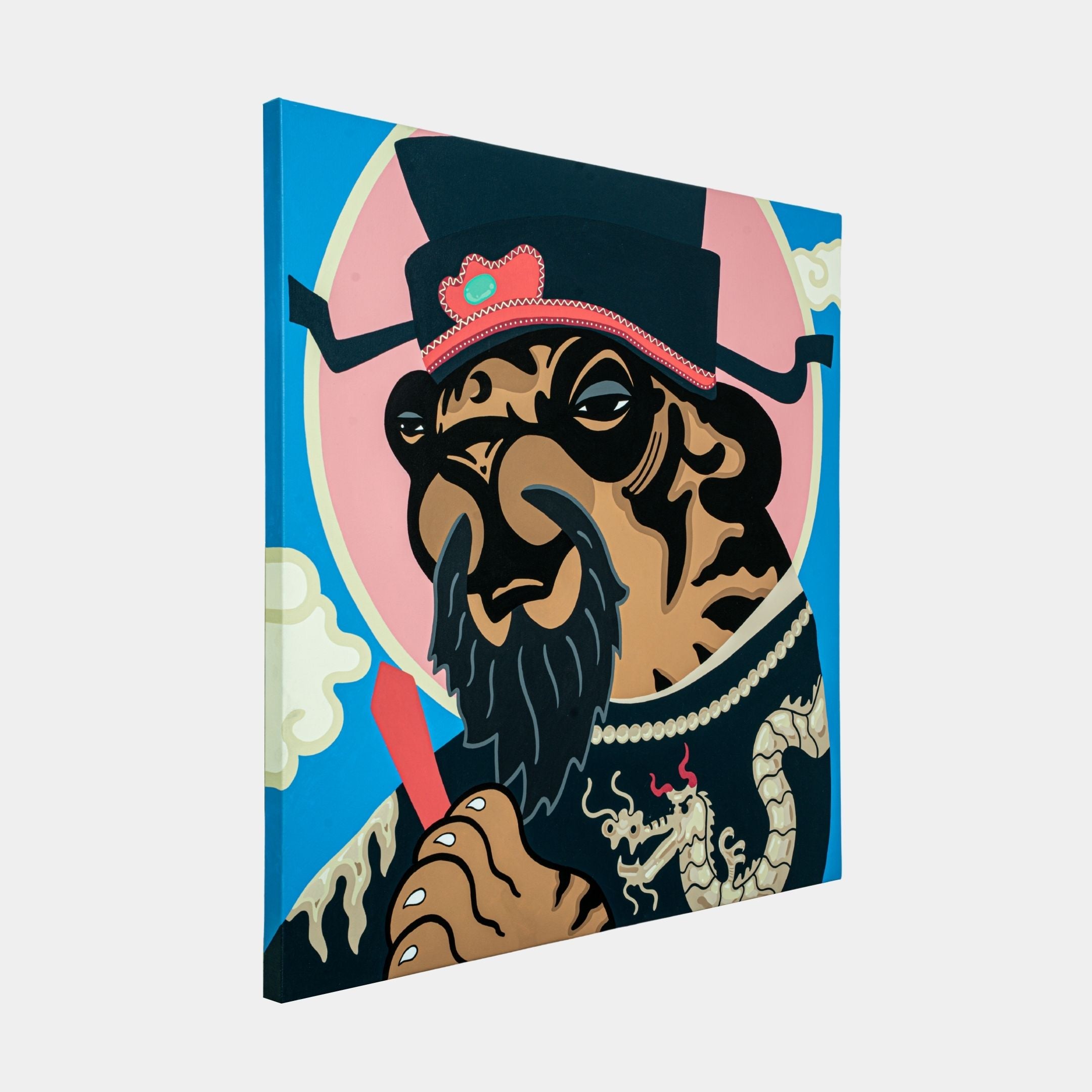 The Pao Bun Jin Tiger Pop Art Canvas Painting merges bold pop art flair with a strong cultural touch. The painting depicts a majestic tiger wearing traditional attire, capturing an intriguing blend of old and new. Crisp acrylic tones highlight each brushstroke, while bright pink and blue contrasts amplify the artwork’s lively feel. Intricate details, such as stylized motifs around the tiger, speak to cultural symbolism and artistic depth. Crafted on premium canvas, this piece is designed to endure for years without losing vibrancy. The painting’s balanced composition and confident energy make it a statement piece for collectors and enthusiasts who value modern artistry and rich storytelling.