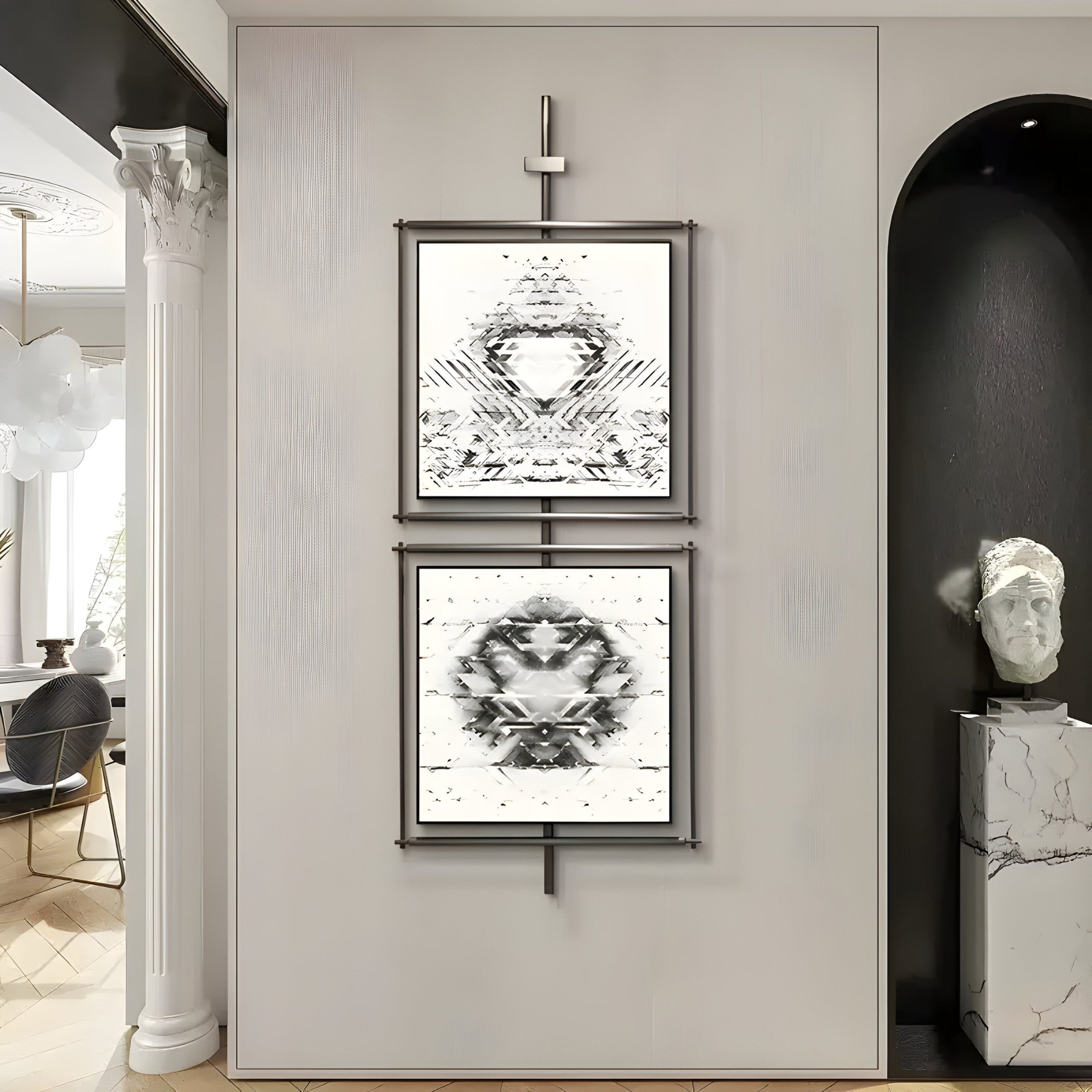 Perfect for spaces like living rooms, entryways, or offices, this dual-panel artwork introduces a bold visual element to any wall. Its abstract geometric patterns make it ideal for those who appreciate modern design and artistic innovation. The vertical arrangement adds height and elegance, making it a great fit for high ceilings or narrow spaces. Whether styled as a standalone centrepiece or as part of a curated gallery wall, the Vistarte Geometric Illusions Wall Art transforms interiors with its bold design and timeless appeal.