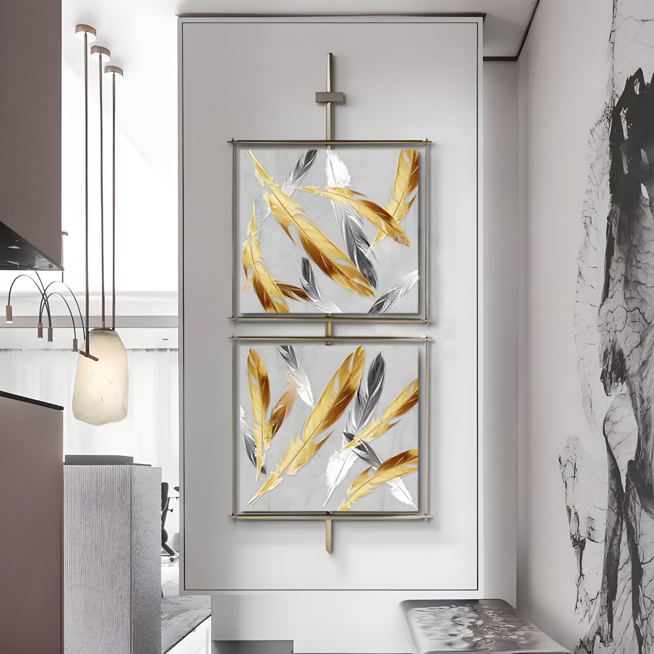 Designed for indoor use, this dual-panel painting complements various interiors, from contemporary to transitional styles. Its refined gold and silver palette pairs beautifully with neutral or monochromatic decor schemes, making it versatile for living rooms, dining areas, or entryways. Crafted with premium materials, it is as durable as it is visually striking, ensuring that its timeless appeal will be a feature of your home for years to come.