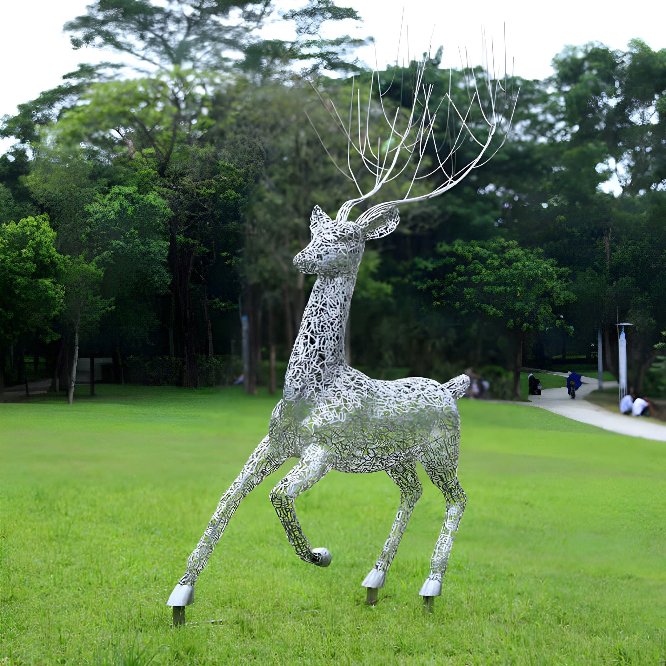 The Arcane Stag Stainless Steel Sculpture is more than a decorative piece - it's a statement of style and a celebration of nature's grandeur. Its geometric design adds a contemporary touch, while the reflective surfaces enhance visual interest, transforming any space into an artistic haven. The sculpture's lifelike features blended with abstract elements make it a standout addition to art collections, gardens, or architectural spaces. Symbolizing nobility and renewal, it resonates with both art enthusiasts and nature lovers, enriching environments with its profound symbolism and aesthetic appeal.