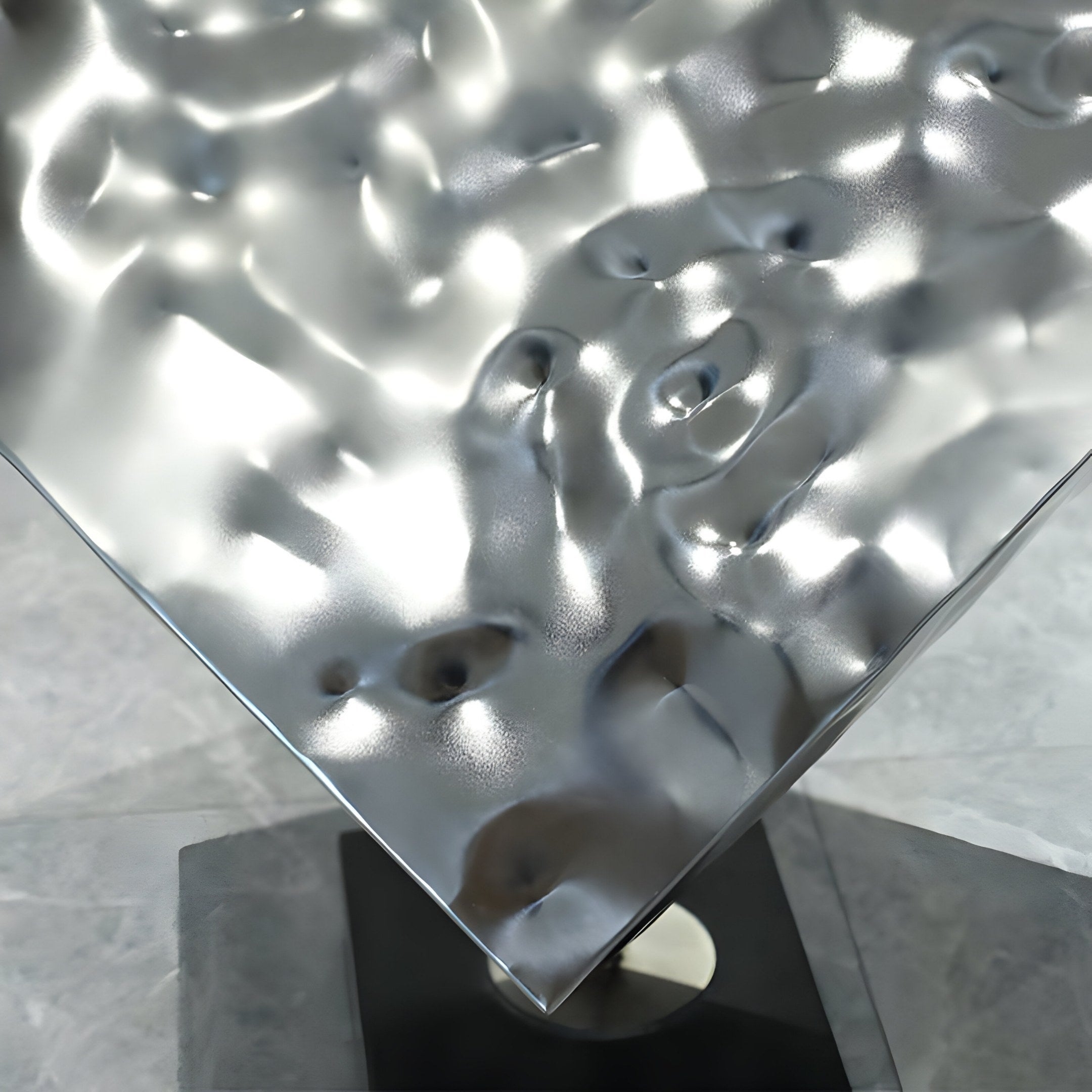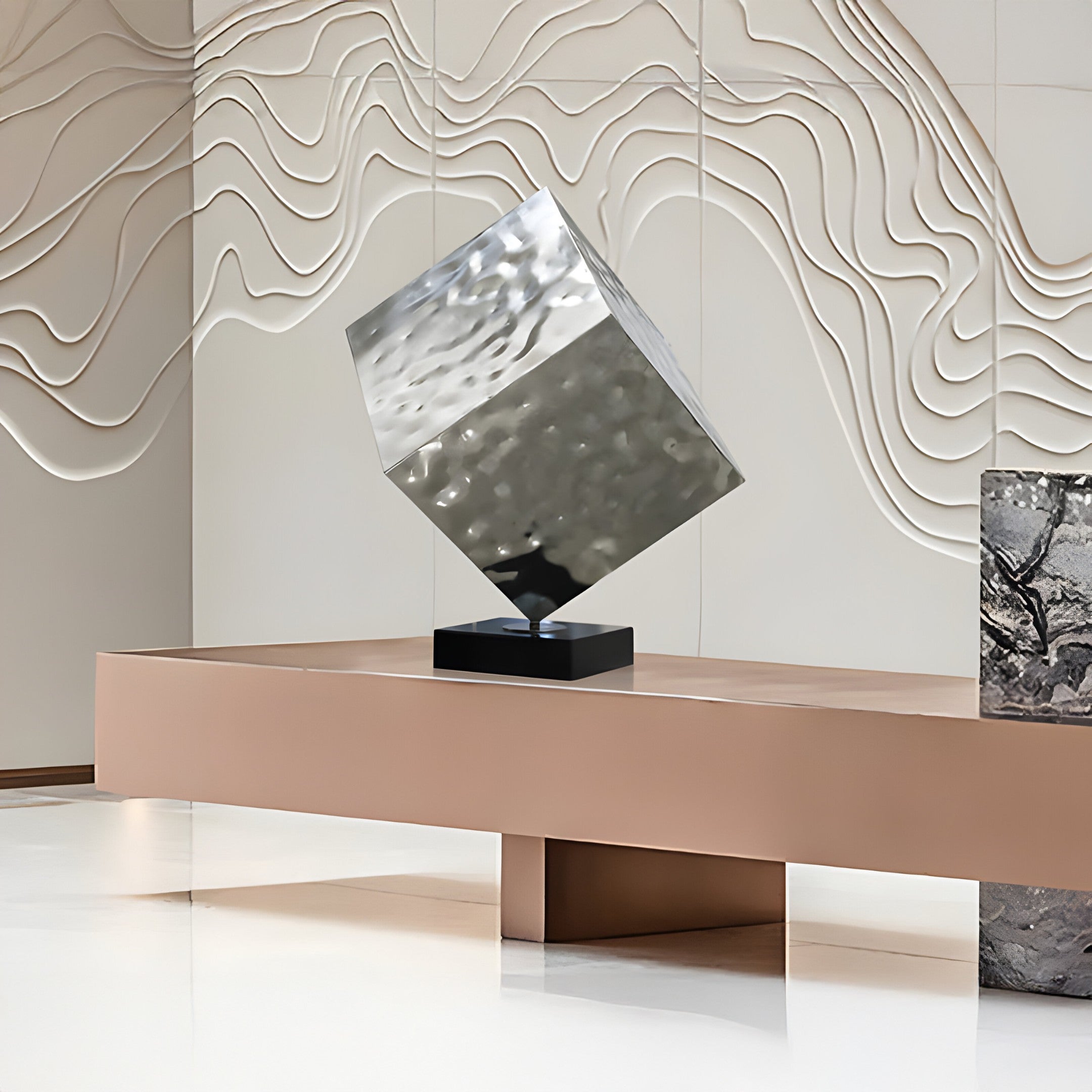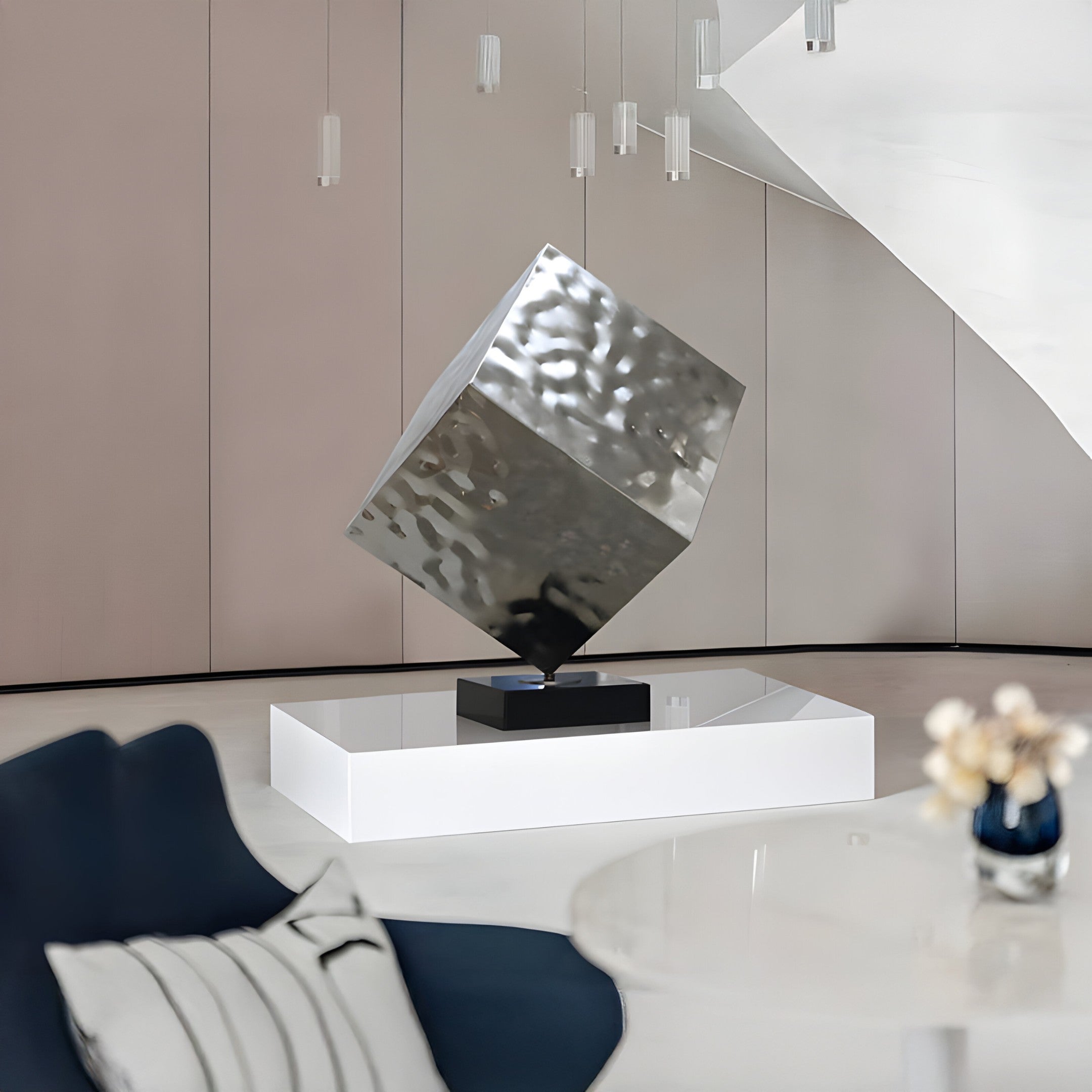 Designed for versatility, this modern geometric sculpture seamlessly integrates into both indoor and outdoor settings. Its durable, weather-resistant construction makes it an ideal addition to gardens, patios, or corporate landscapes, where it complements architectural features and natural elements. Indoors, it enhances spaces like lobbies, galleries, or modern living areas, harmonizing with minimalist and industrial décor styles. The sculpture's abstract cubic form not only adds aesthetic appeal but also stimulates conversation and contemplation. Whether you're an art enthusiast or seeking to enrich your surroundings with a unique piece, this stainless steel art offers timeless appeal and profound artistic impact.