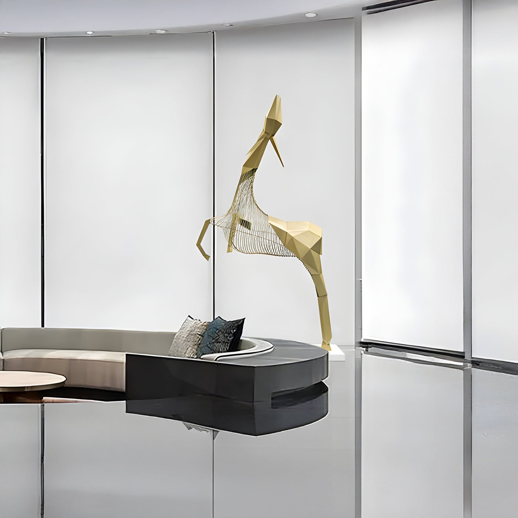 Gold Geometric Deer Sculpture – Modern Stainless Steel Art