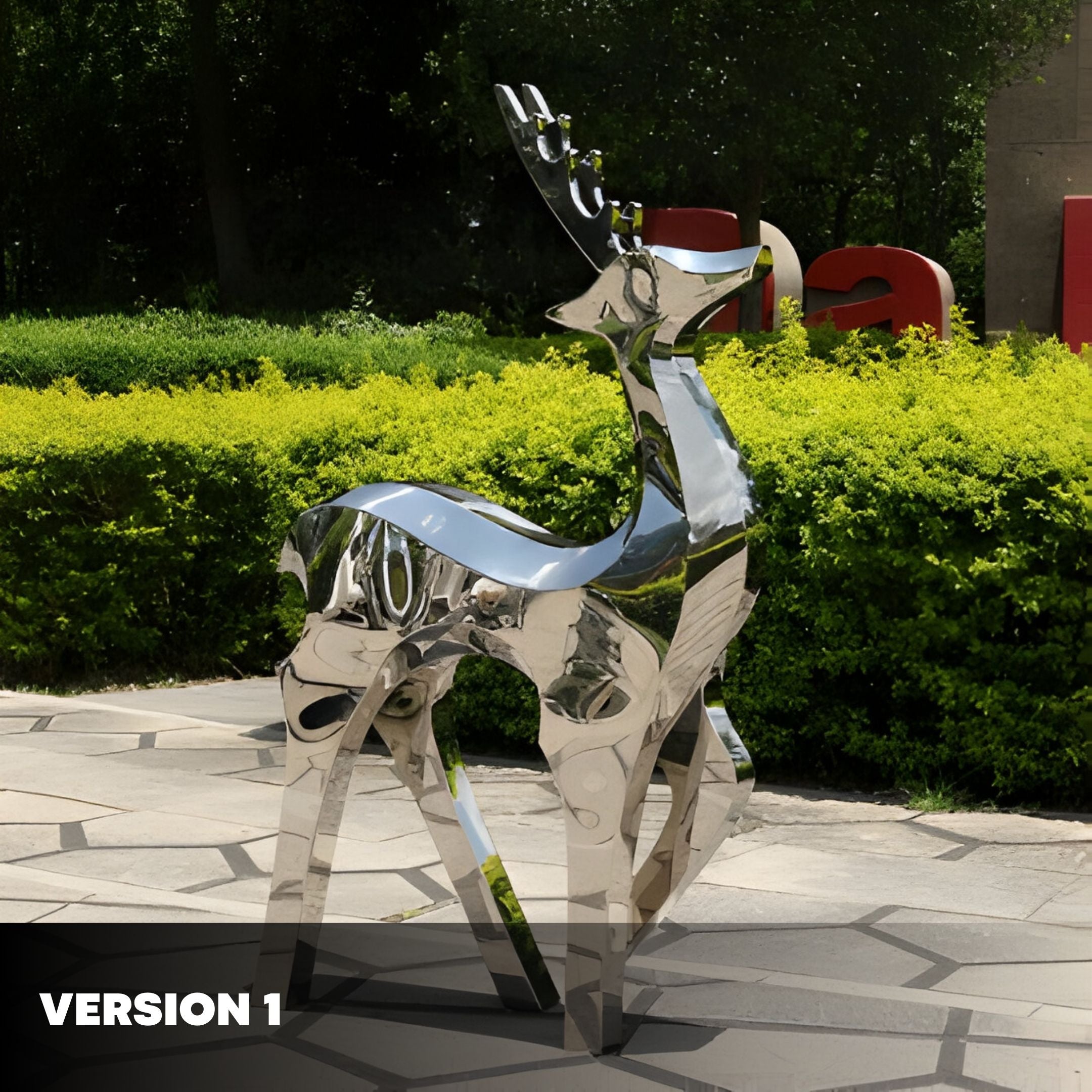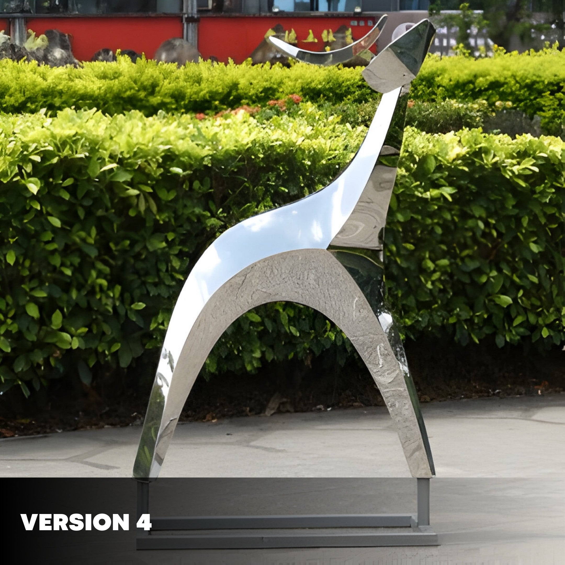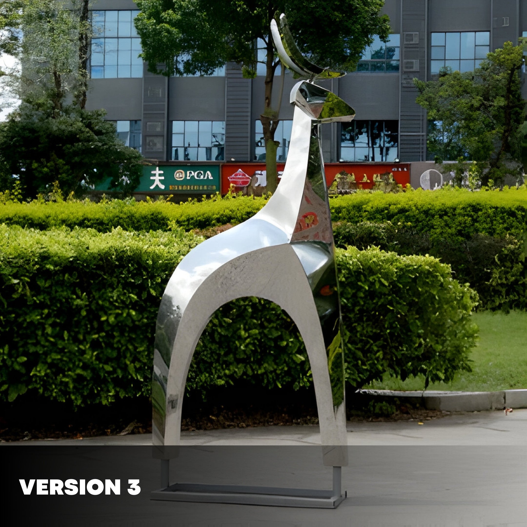 Available in five unique versions, this modern deer sculpture offers versatility and visual appeal for both indoor and outdoor spaces. Its durable, weather-resistant construction makes it ideal for gardens, patios, or courtyards, where it complements natural elements and adds a touch of sophistication. Indoors, it serves as a striking focal point in living rooms, lobbies, or galleries, blending seamlessly with various décor styles from minimalist to contemporary. The sculpture's reflective surfaces interact with ambient light, creating an ever-changing visual experience that enriches your environment. Whether you're an art enthusiast or seeking a statement piece, this stainless steel art provides timeless appeal and profound artistic impact.