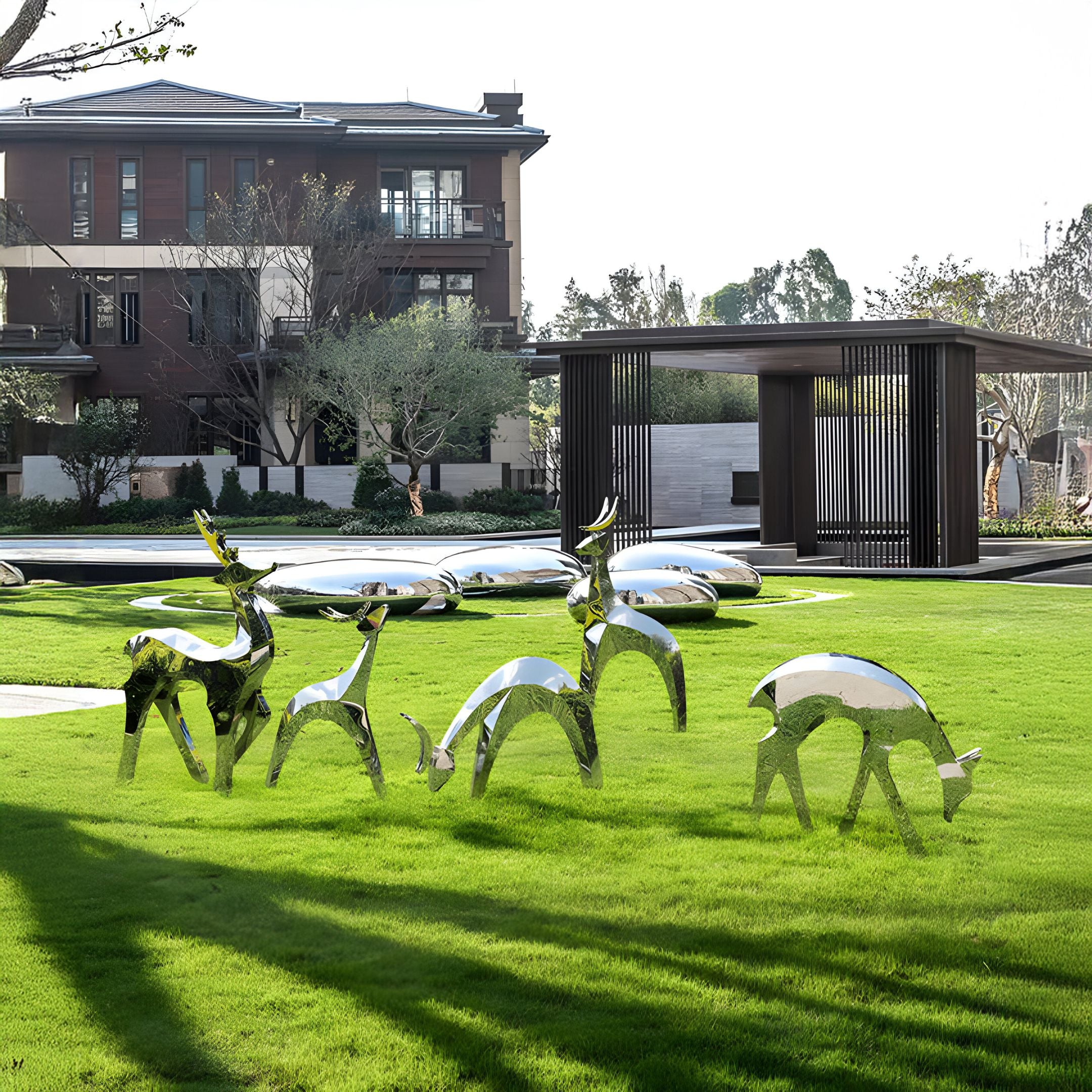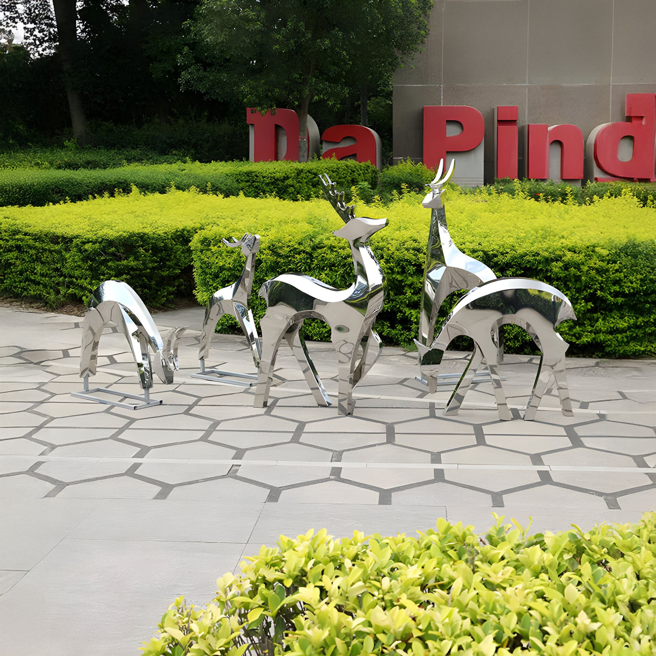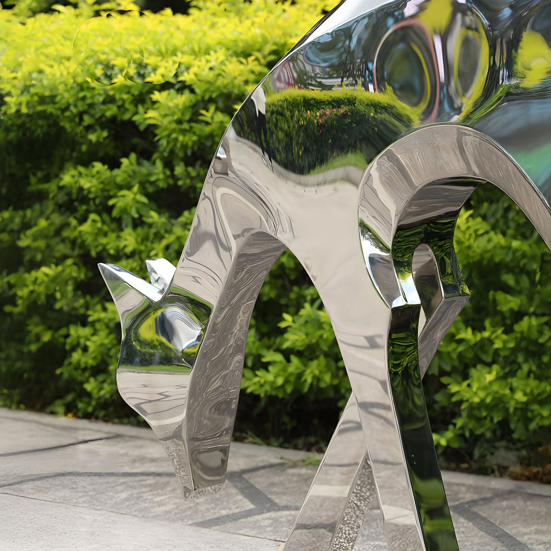 Available in five unique versions, this modern deer sculpture offers versatility and visual appeal for both indoor and outdoor spaces. Its durable, weather-resistant construction makes it ideal for gardens, patios, or courtyards, where it complements natural elements and adds a touch of sophistication. Indoors, it serves as a striking focal point in living rooms, lobbies, or galleries, blending seamlessly with various décor styles from minimalist to contemporary. The sculpture's reflective surfaces interact with ambient light, creating an ever-changing visual experience that enriches your environment. Whether you're an art enthusiast or seeking a statement piece, this stainless steel art provides timeless appeal and profound artistic impact.
