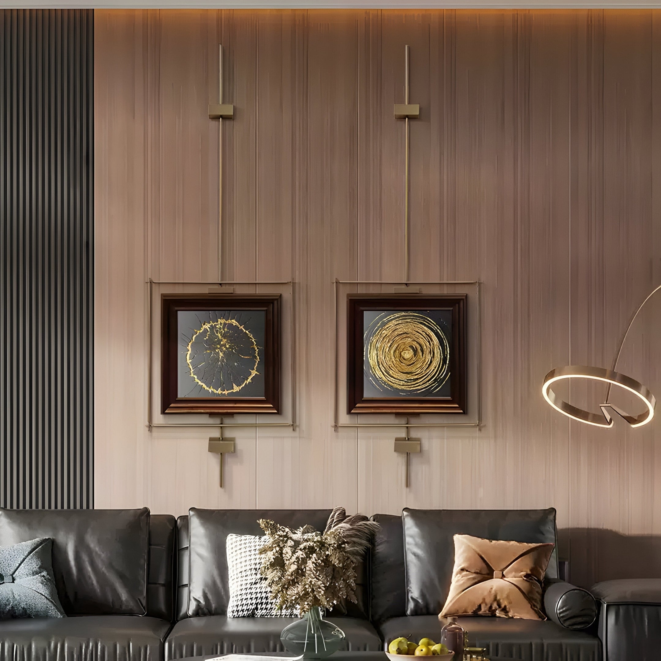 The Ethereal Frames Golden Swirl Artistic Suspended Wall Art redefines modern aesthetics with a vintage touch. This medieval-style installation features a striking golden swirl encased within a wooden frame, suspended by a structured stainless-steel metal framework. The interplay between the luminous gold accents and the rich dark frame creates a stunning visual dynamic. The geometric precision of its suspension design not only adds depth but also introduces a unique sense of dimension to any space. Ideal for creating a focal point, the piece speaks volumes about timeless craftsmanship while exuding contemporary sophistication.