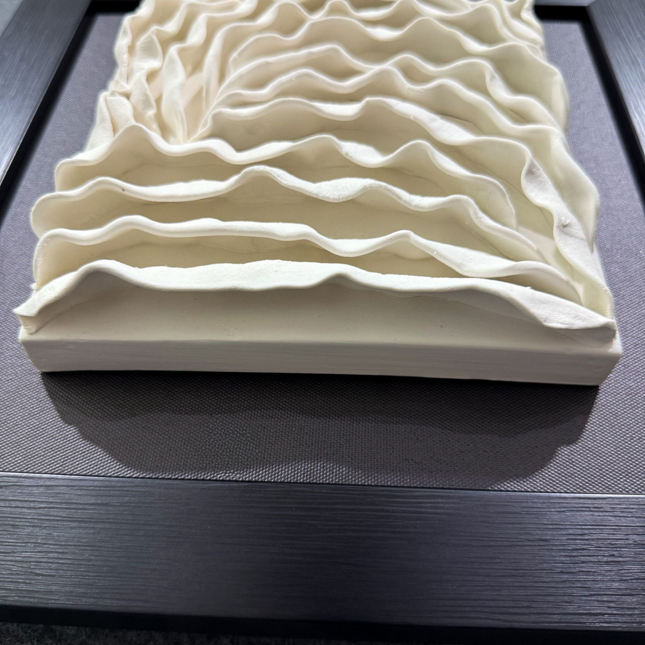 Introduce sculptural elegance and visual intrigue to your décor with these beautifully crafted ceramic wall pieces. Framed in black borders, the designs blend structure, texture, and movement, offering endless display possibilities. Perfect for modern interiors, this collection enhances spaces with depth, sophistication, and timeless artistic charm. Display the pieces together to create a striking gallery wall or place them separately to complement different spaces.