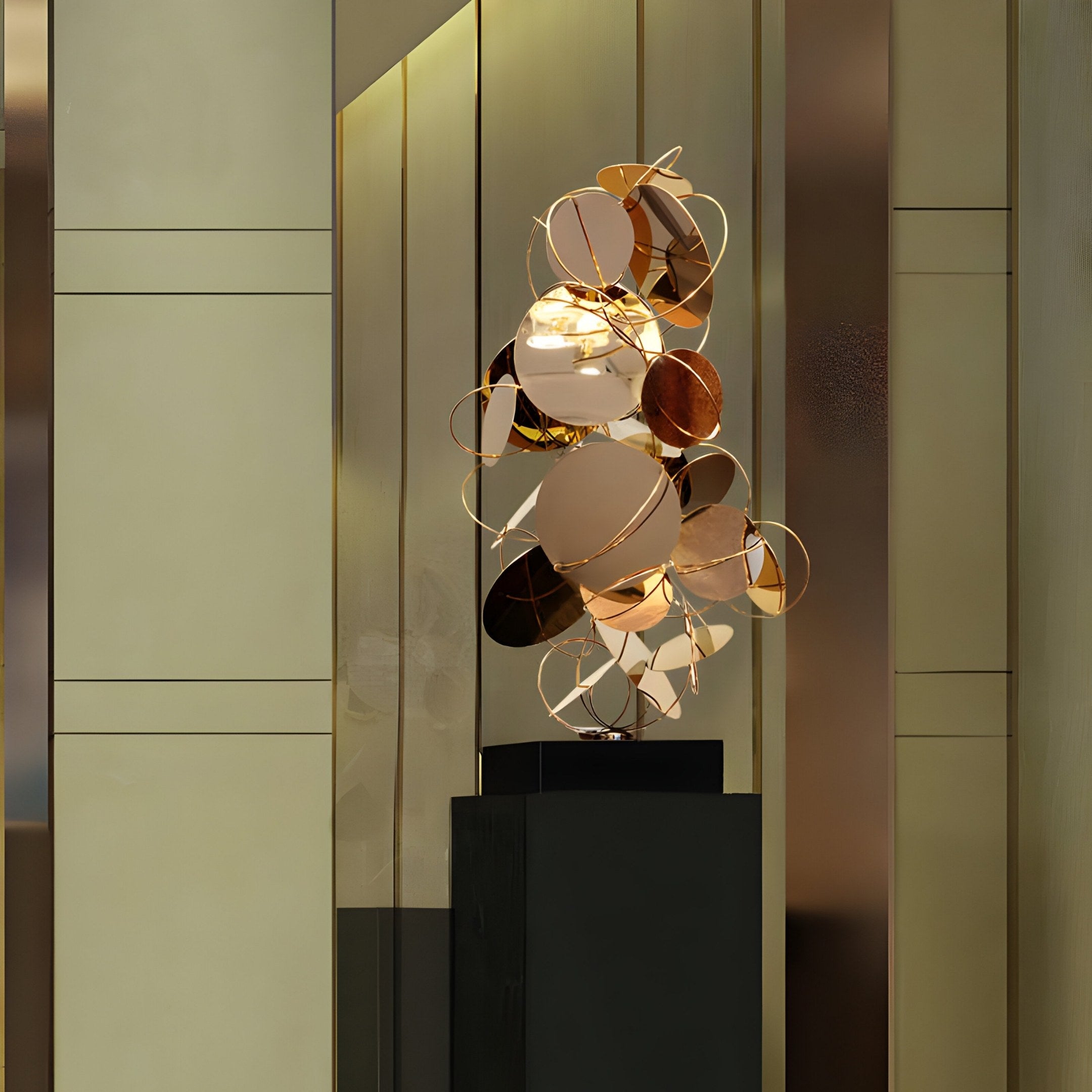 Designed to enhance both indoor and outdoor spaces, this copper abstract stainless steel sculpture offers exceptional versatility and enduring charm. Its weather-resistant construction ensures longevity, making it an ideal addition to gardens, patios, courtyards, or landscaped areas where it complements natural elements and architectural features. Indoors, it elevates environments such as living rooms, office lobbies, or art galleries, seamlessly blending with diverse décor styles from minimalist to luxurious. The sculpture's fluid forms and reflective surfaces not only enhance the visual appeal of any space but also serve as an engaging focal point that encourages reflection and conversation. Whether you're an art enthusiast or seeking to enrich your environment with a unique artistic statement, the Helios Copper sculpture embodies timeless beauty and sophisticated design.