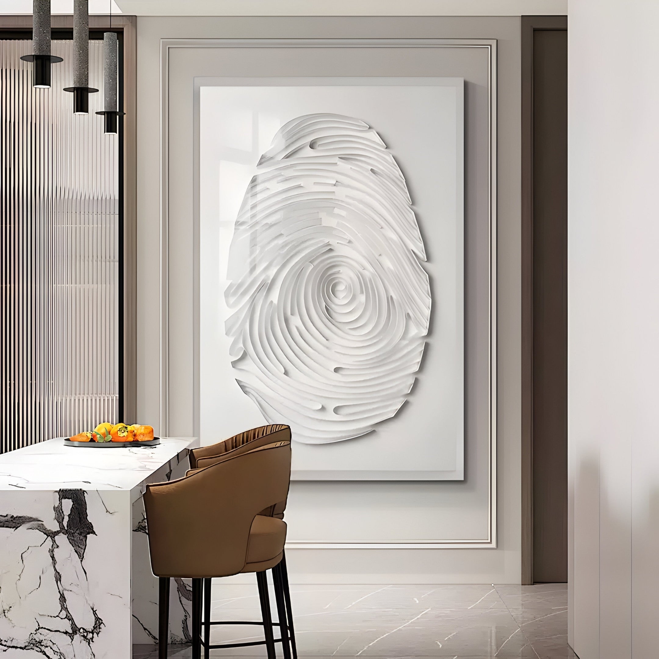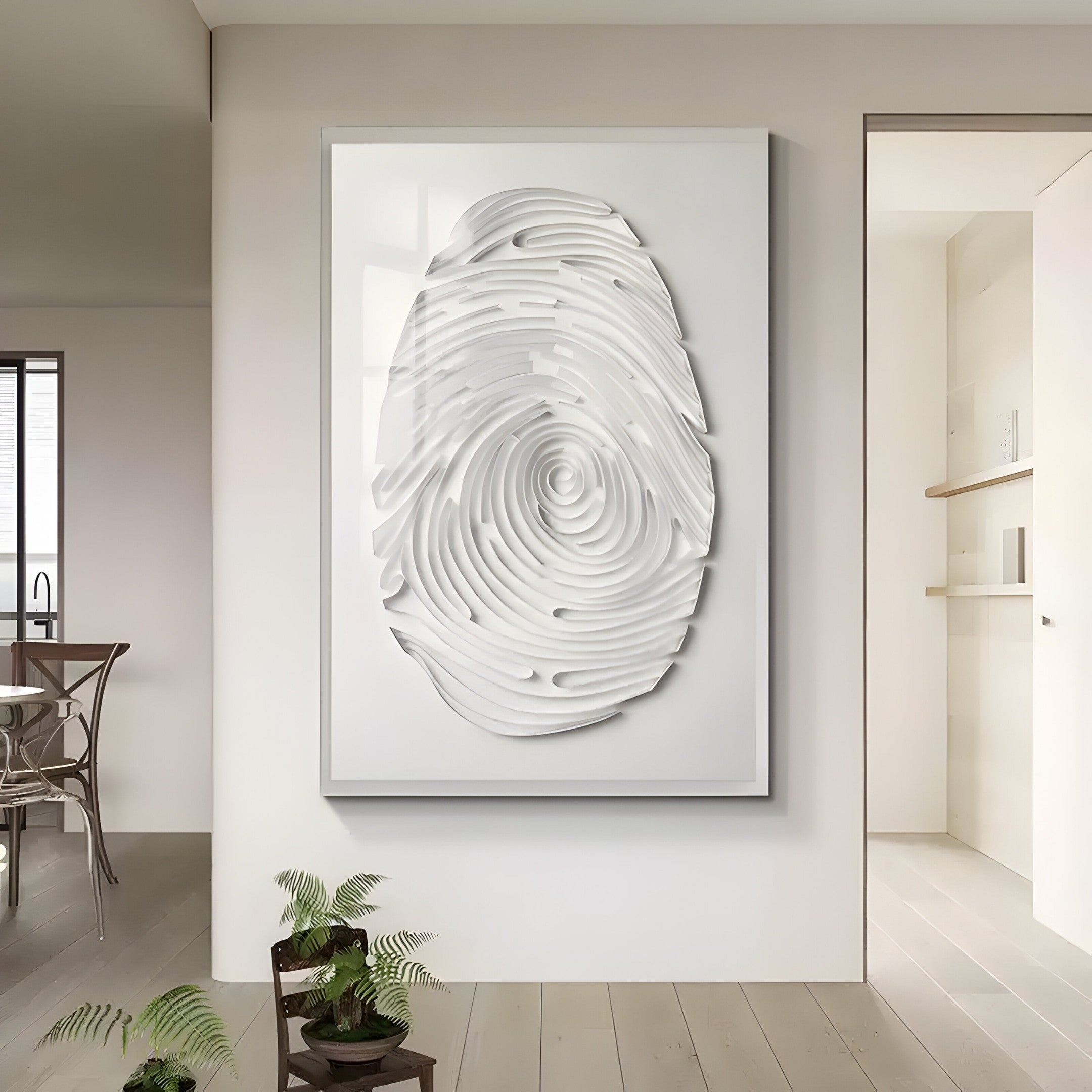 Customisable elements are available, allowing you to highlight personal identity or commemorate a special occasion. Its neutral white colour complements various interior styles, making it easy to coordinate with many spaces. Hang it in a living area to catch the eye of visitors, or position it in a hallway to bring artistic flair to daily routines. The acrylic enclosure provides both structural support and an elegant presentation, making installation a seamless process. Beyond its visual appeal, this fingerprint concept celebrates individuality and self-expression. The layered cardboard materials also align with a more mindful approach, offering art lovers a piece that is both distinctive and responsibly crafted. Blending form and personal significance, this white fingerprint artwork introduces an original statement in any setting.