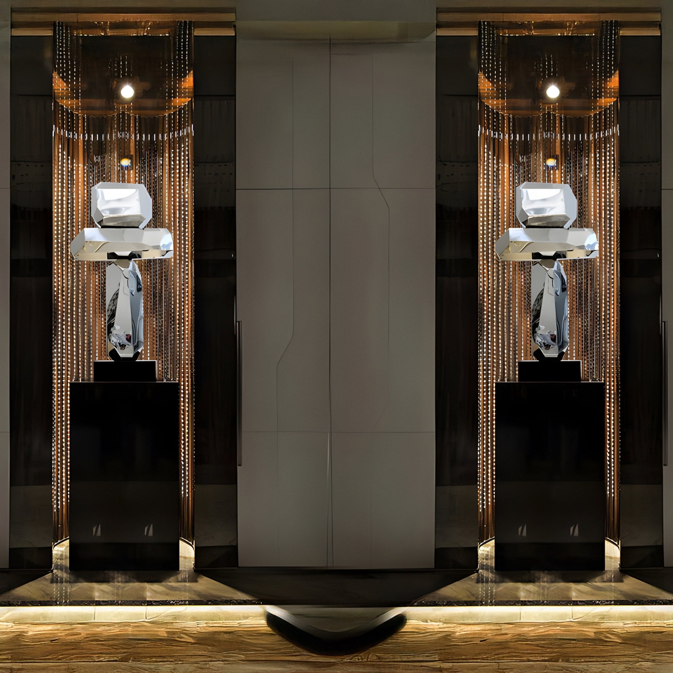 Designed for both indoor and outdoor settings, this sculpture seamlessly integrates into diverse environments. Its durable stainless steel construction ensures longevity and resilience against various weather conditions, maintaining its stunning appearance year after year. Perfect for gardens, patios, courtyards, or landscaped areas, the Monoform Stone II sculpture adds a touch of sophistication and artistic flair to any outdoor space. Indoors, it enhances living rooms, office lobbies, or art galleries, effortlessly blending with furniture and décor to elevate the aesthetic appeal. The elegant lines and reflective surfaces not only serve as an artistic focal point but also contribute to creating a tranquil and sophisticated atmosphere. Whether you're an art enthusiast or looking to add a unique decorative element to your space, the Monoform Stone II sculpture offers enduring beauty and exceptional craftsmanship that transcends trends.