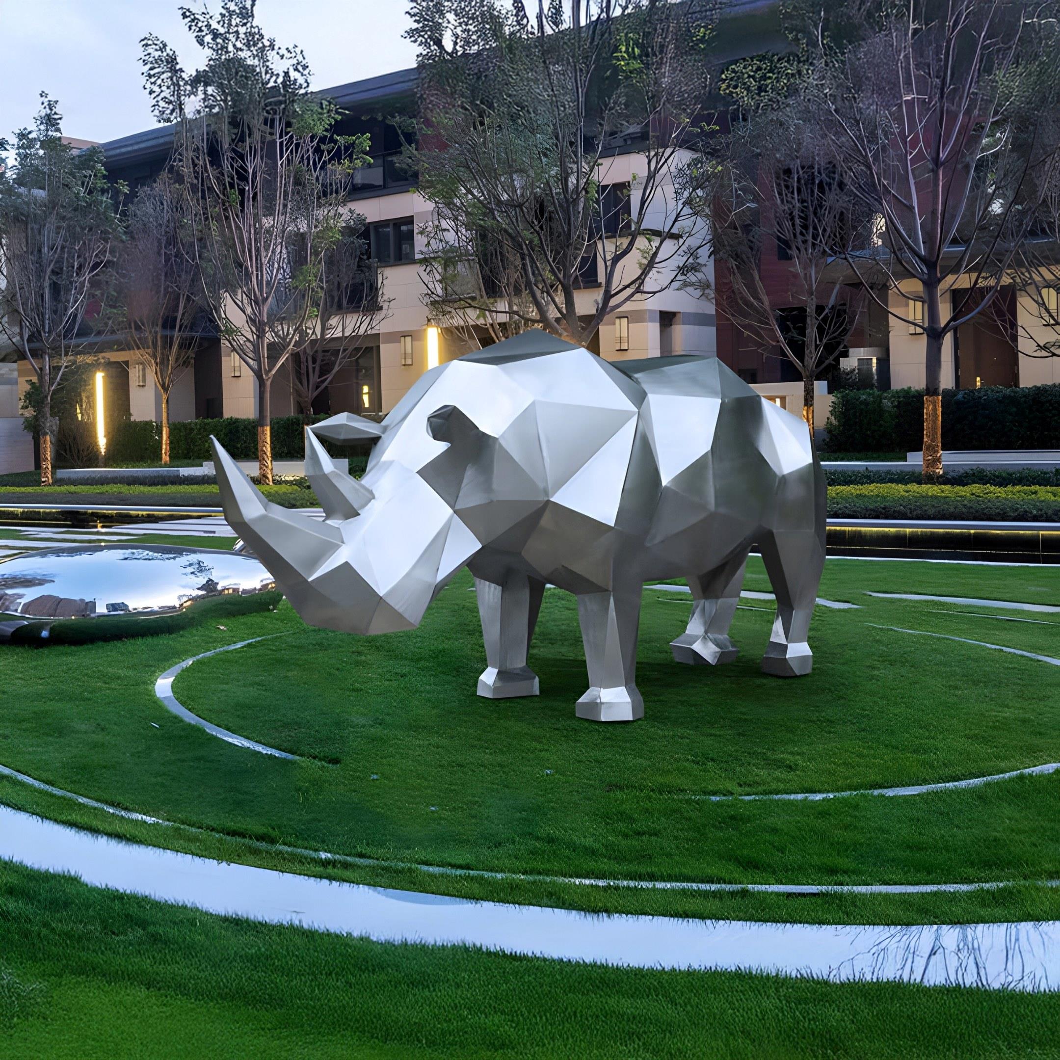 Designed for durability and visual impact, this sculpture is perfect for outdoor installations in gardens, parks, or corporate landscapes. Its weather-resistant stainless steel construction ensures it withstands the elements while maintaining its stunning appearance over time. The geometric design creates intriguing light and shadow effects throughout the day, adding depth and interest to your space. Whether you're an art enthusiast looking to enhance your outdoor area or a designer seeking a unique focal point, this geometric rhino sculpture offers a captivating blend of artistry and innovation.