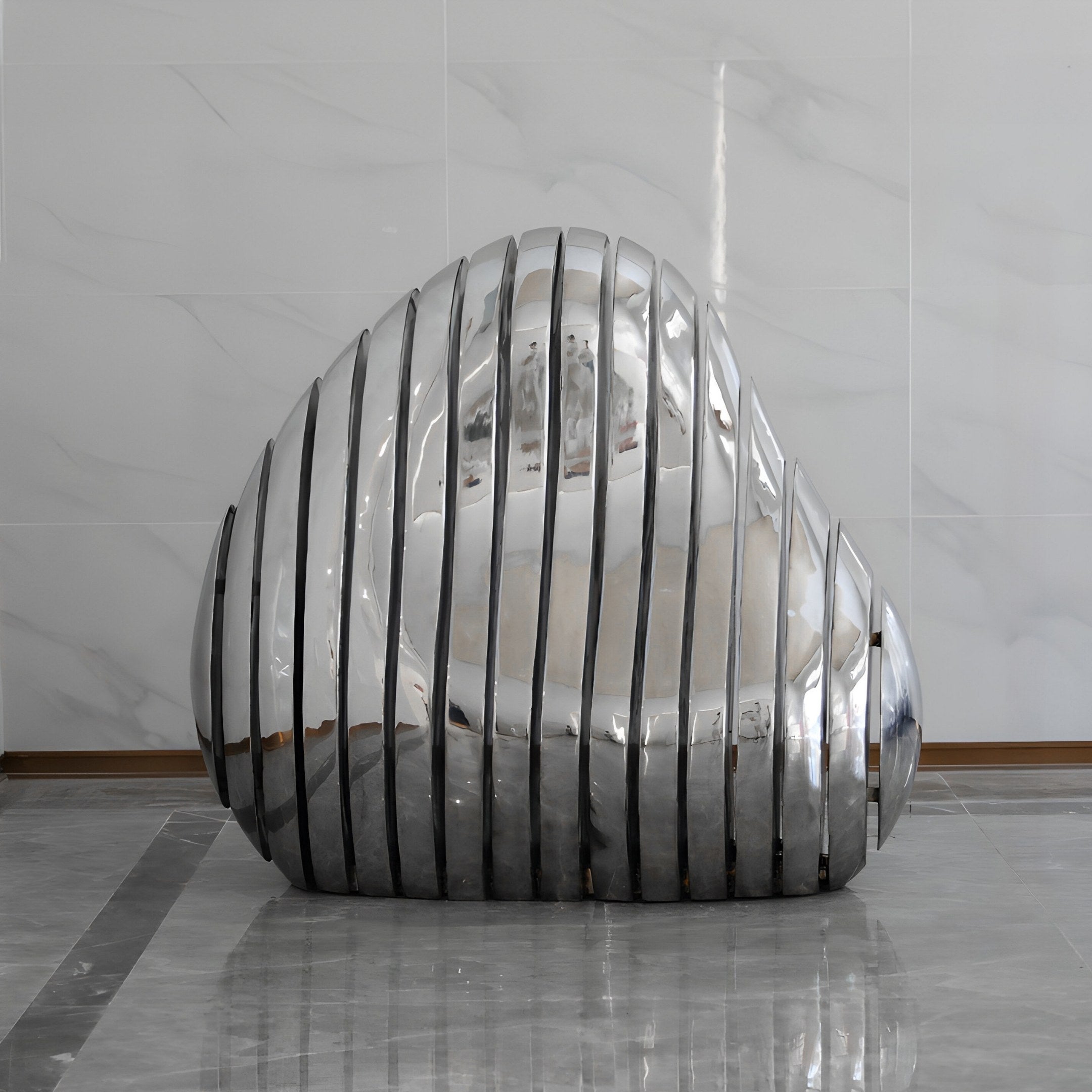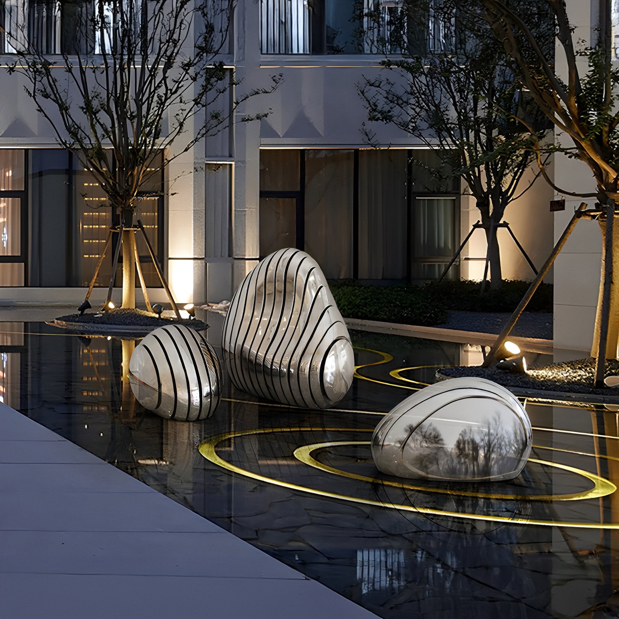 Modern Outdoor Art: Polished Silver Ripple Sculpture