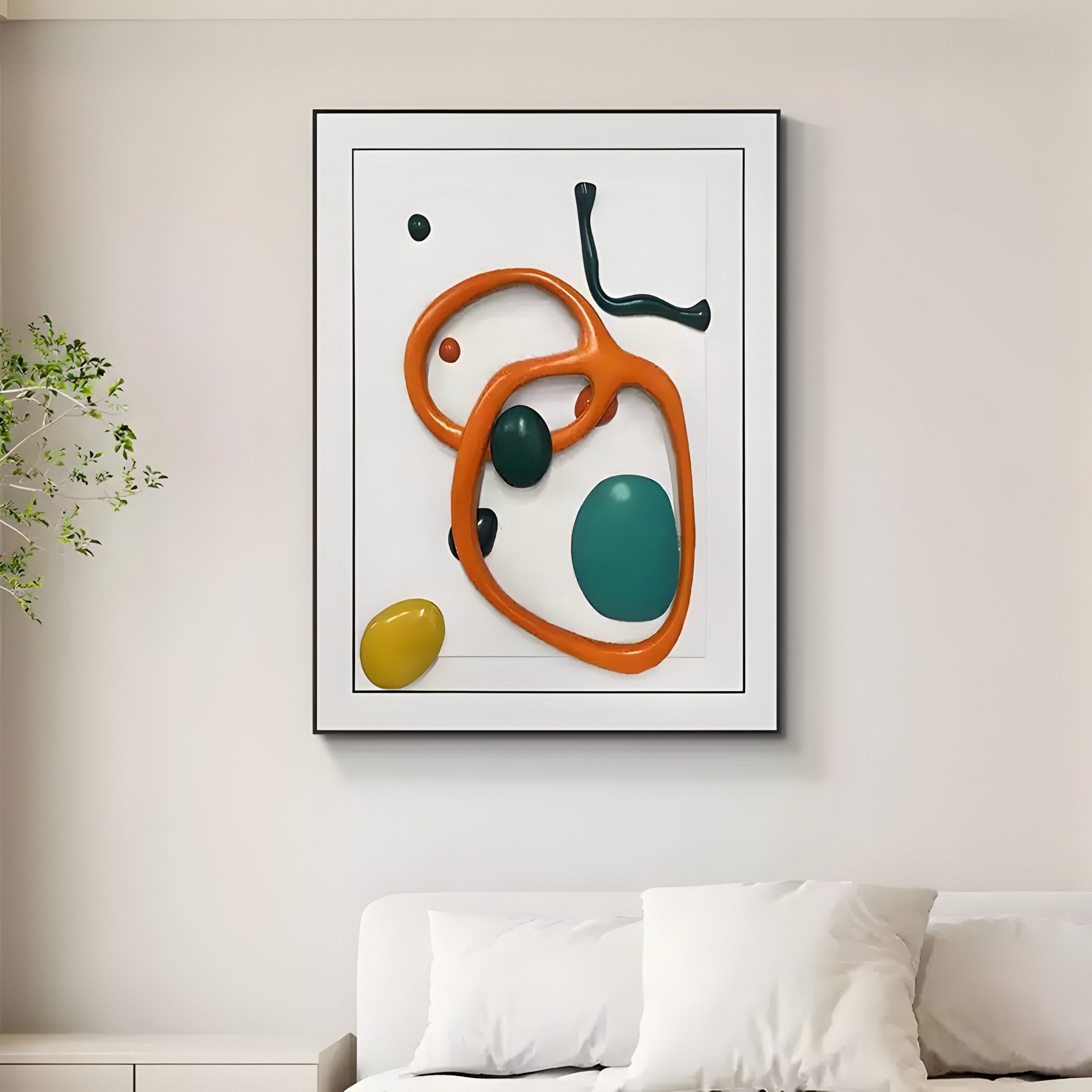The Vitrus Orange & Green Abstract Wood Embossed 3D Wall Art blends playful shapes with a mix of glossy and matte finishes for a contemporary statement piece. A sturdy wooden panel serves as the foundation, while leather elements are embossed onto the surface to form bold, flowing lines and rounded forms. Bright orange loops and green ovals pop against the clean background, drawing attention to the artwork’s three-dimensional effect. The combination of glossy sections and matte patches introduces subtle contrasts, reflecting or diffusing light in different ways. Whether placed in a hallway, living room, or modern workspace, this abstract design injects energy into the environment without overwhelming the space.