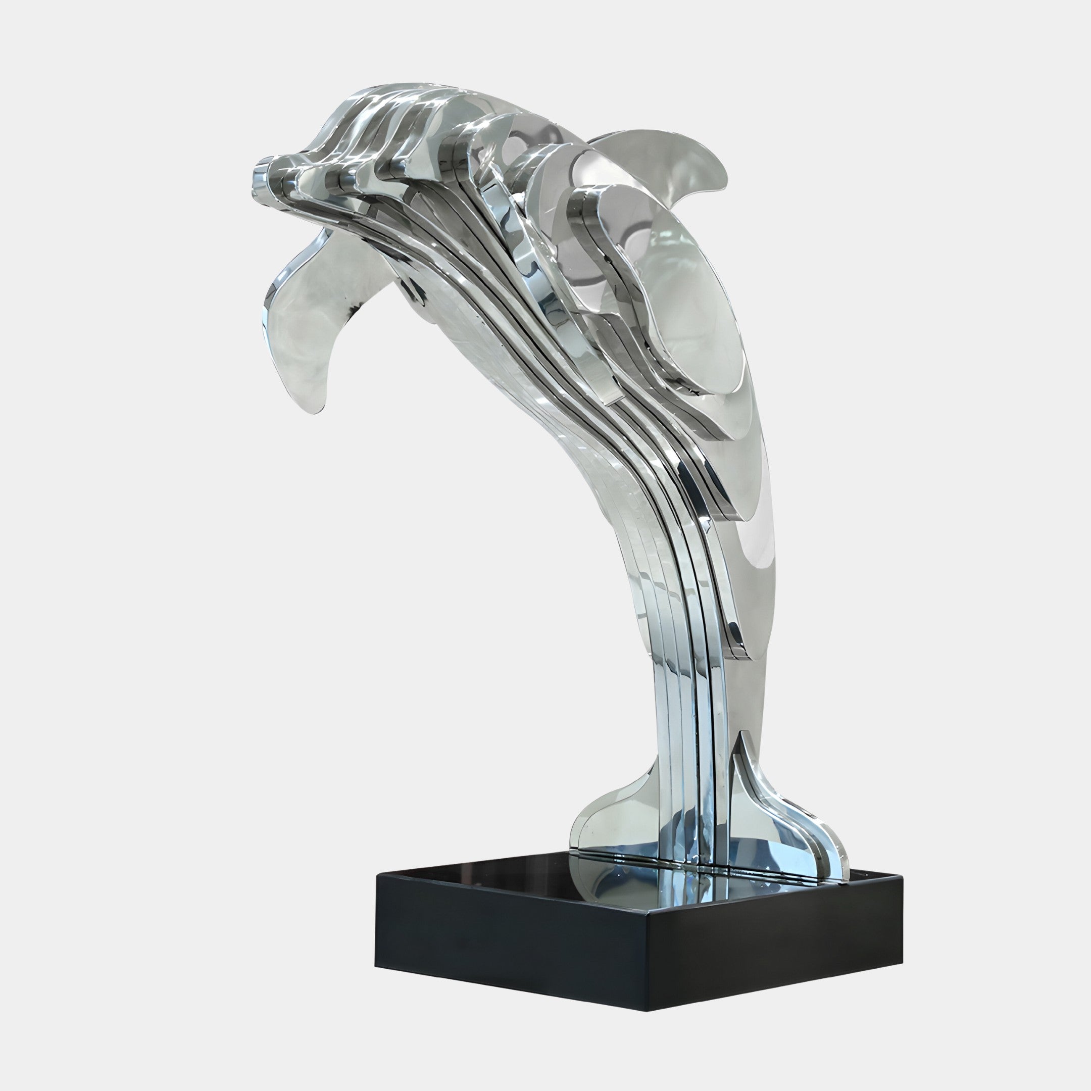 Dolphin Silver Abstract Steel Outdoor Sculpture - 70/105cm