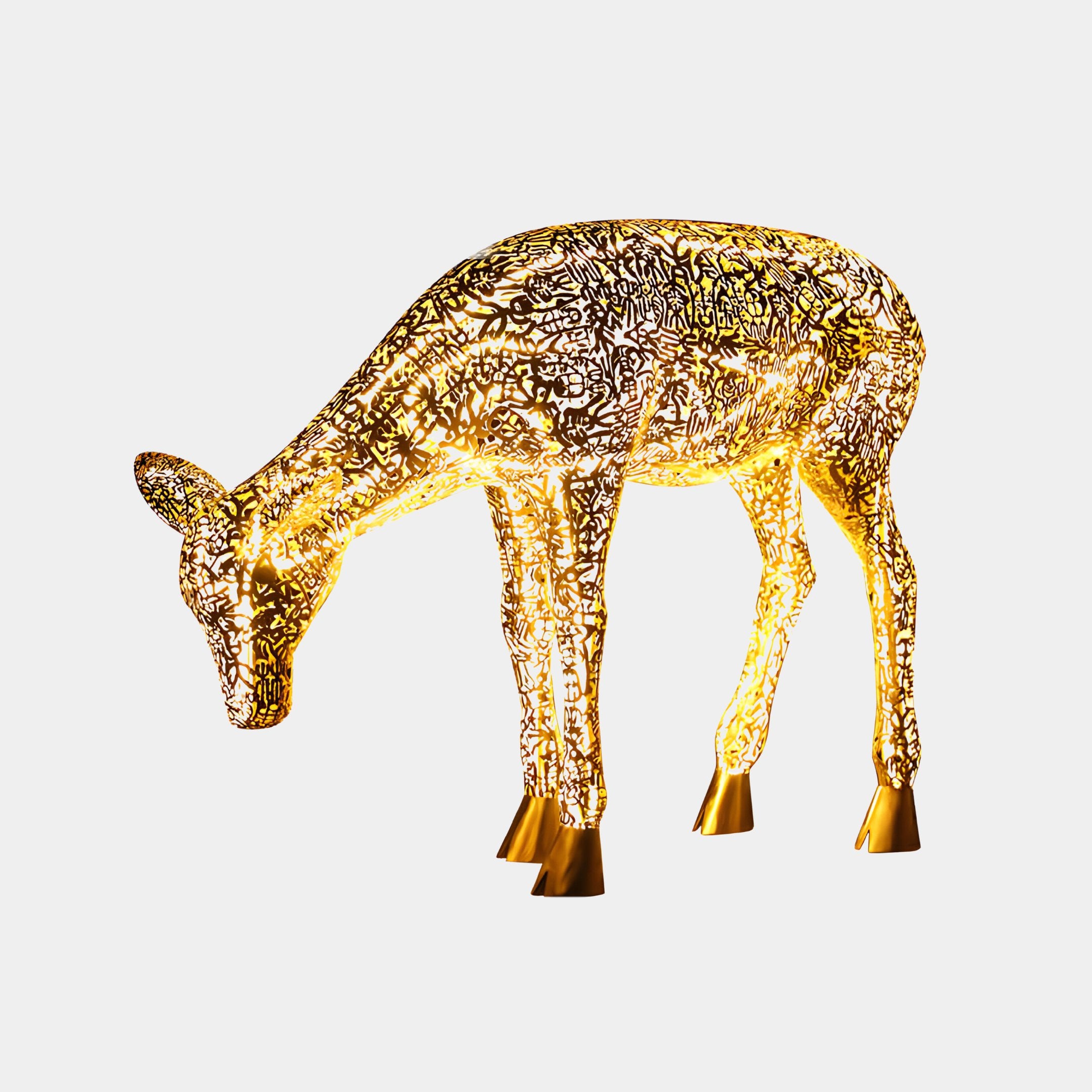 Luminous Deer Gold Steel LED Sculpture - 90cm