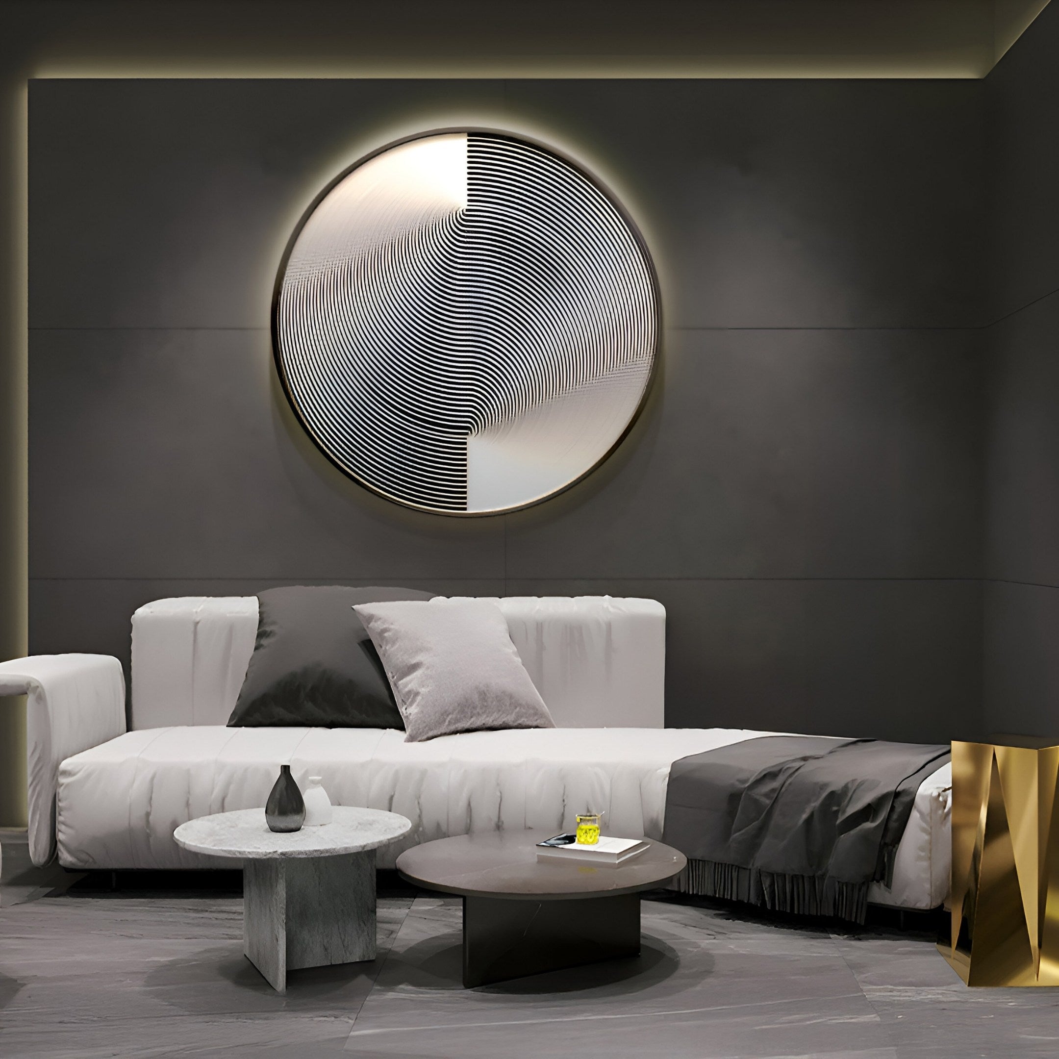 Astral Silver Crystal Porcelain LED Wall Art unites sleek modernity with artisanal craftsmanship for a refined statement piece. Its circular face is crafted from crystal porcelain, a material known for its luminous finish and subtle depth. Hints of brushed silver radiate across its surface, drawing the eye to gentle concentric patterns that catch light in captivating ways. A sturdy aluminum frame surrounds the round porcelain center, blending durability with a minimalist aesthetic.
