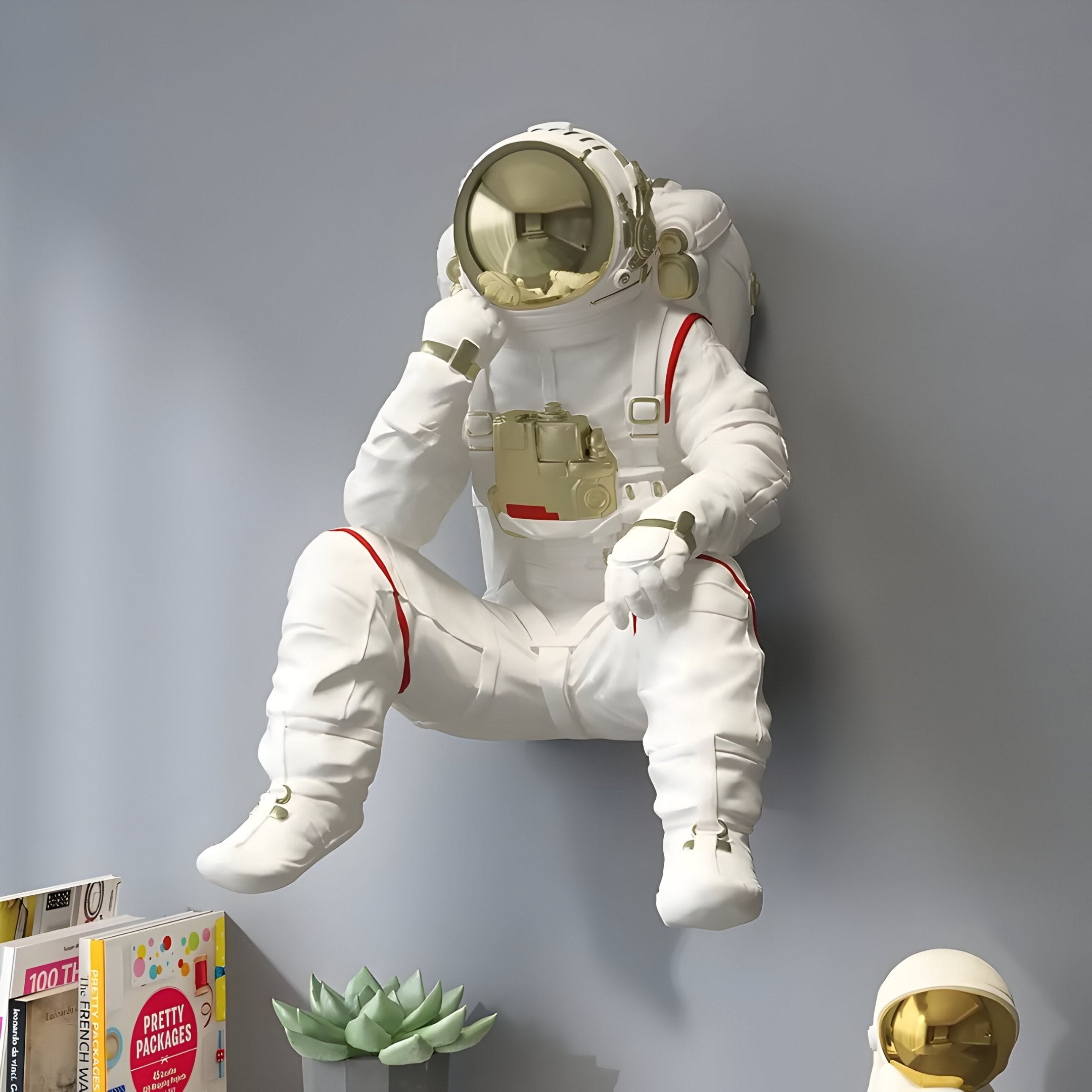 Bring a reflective cosmic element into your décor with the White Astronaut Thinker 3D Wall Art, a resin sculpture that celebrates both curiosity and contemplation. Clad in a crisp white spacesuit accented by subtle red lines, the astronaut rests his chin on one hand as though lost in thought. This pose offers a more introspective take on space exploration, inviting viewers to pause and ponder what lies beyond our everyday horizons. The gold-toned visor adds a warm contrast to the white suit, catching light from different angles and drawing the eye toward the figure’s contemplative expression. Whether placed in a lounge, office, or study, this wall art fosters an atmosphere of reflection and wonder.