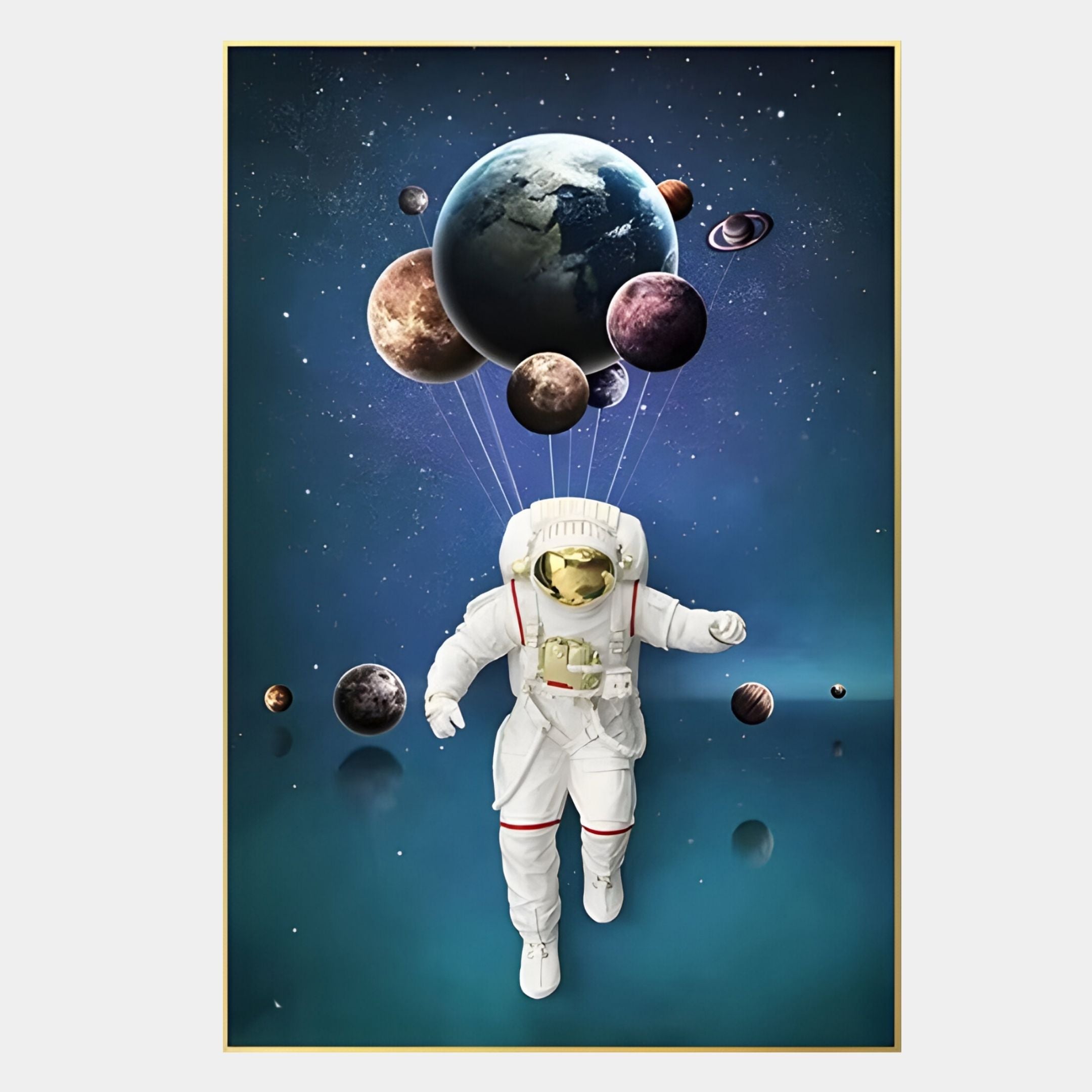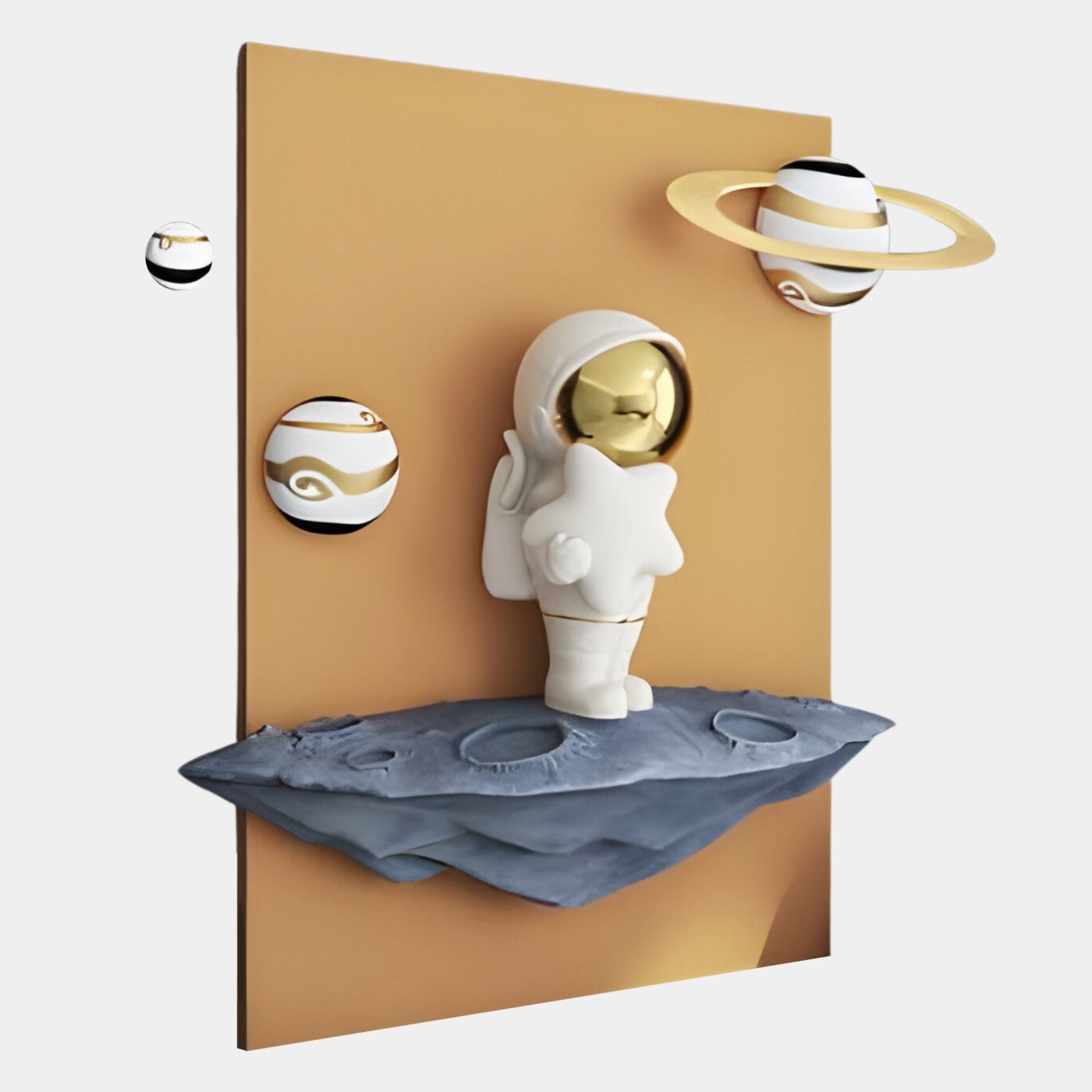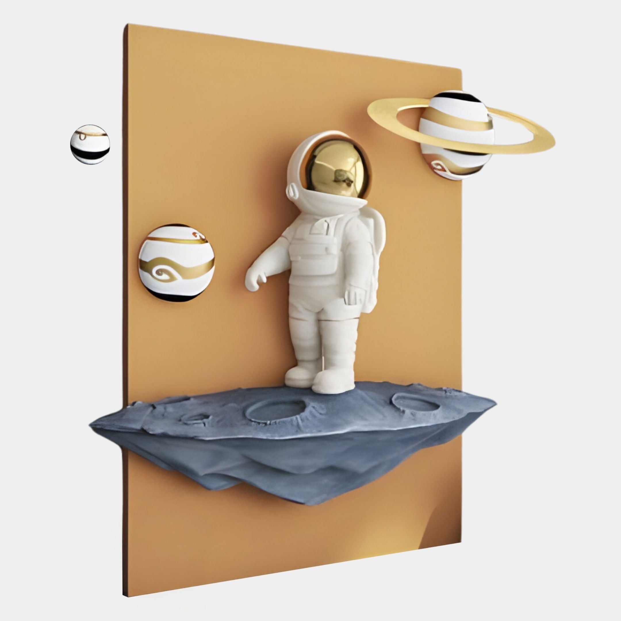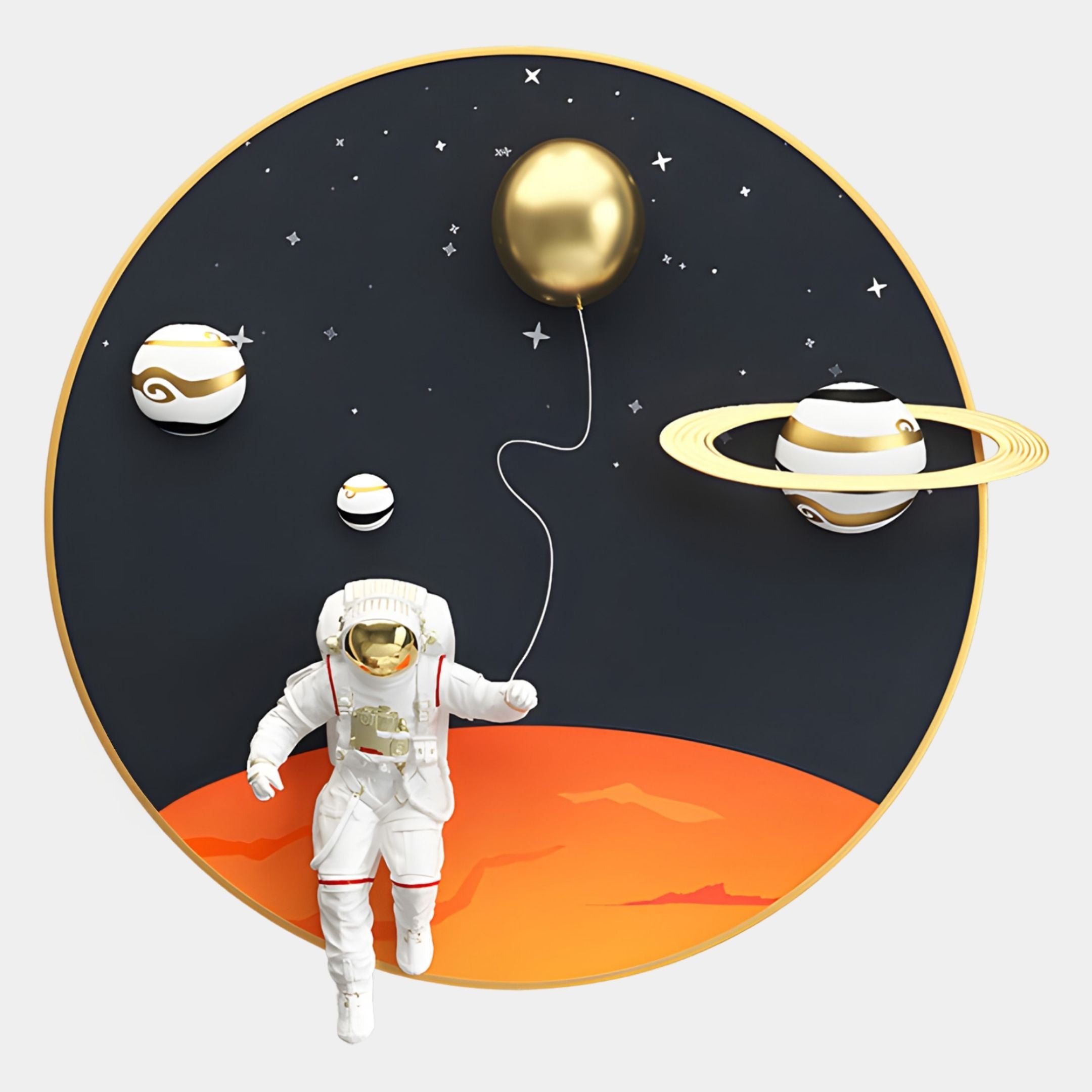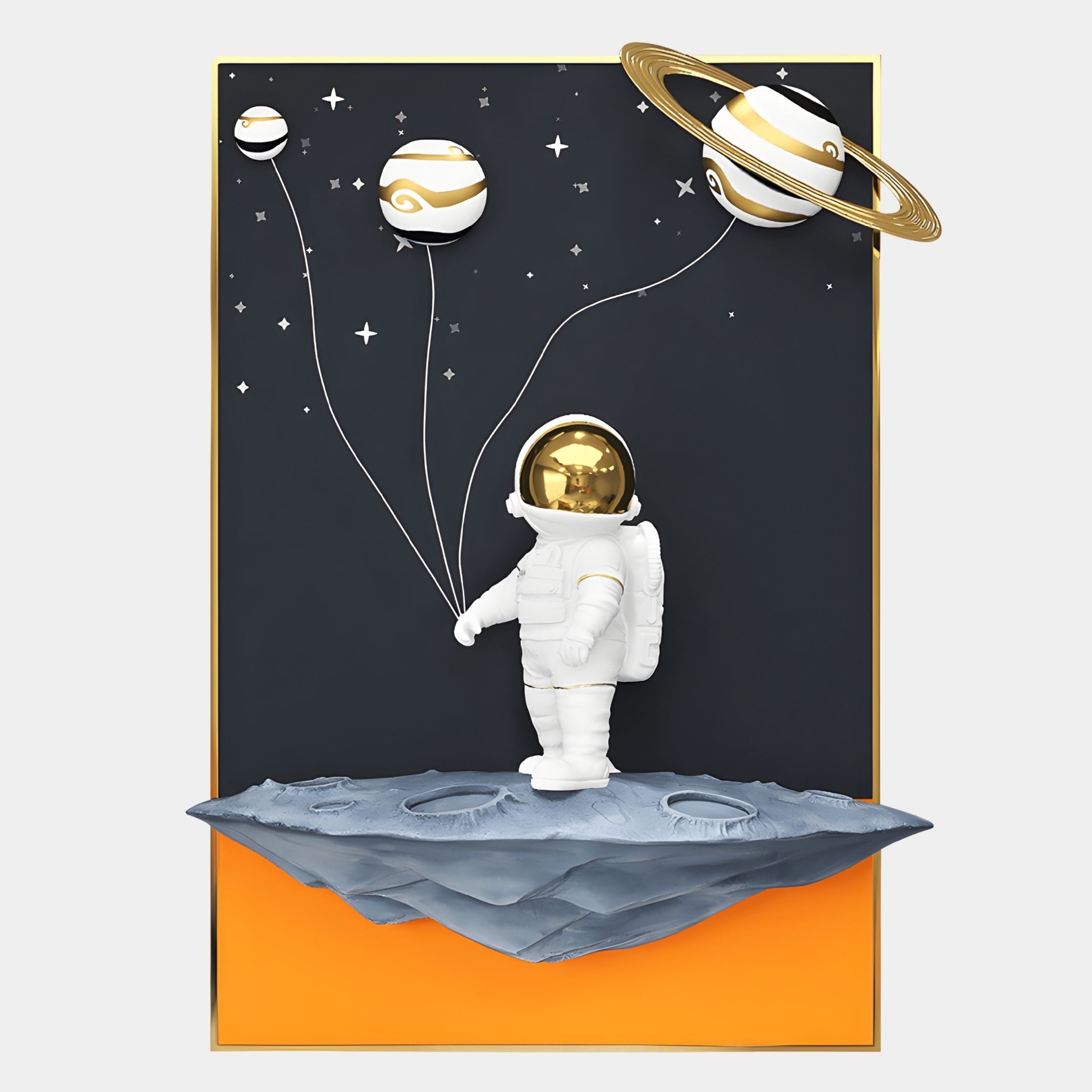 White 3D Stellar Astronaut Planet Balloons Wall Art