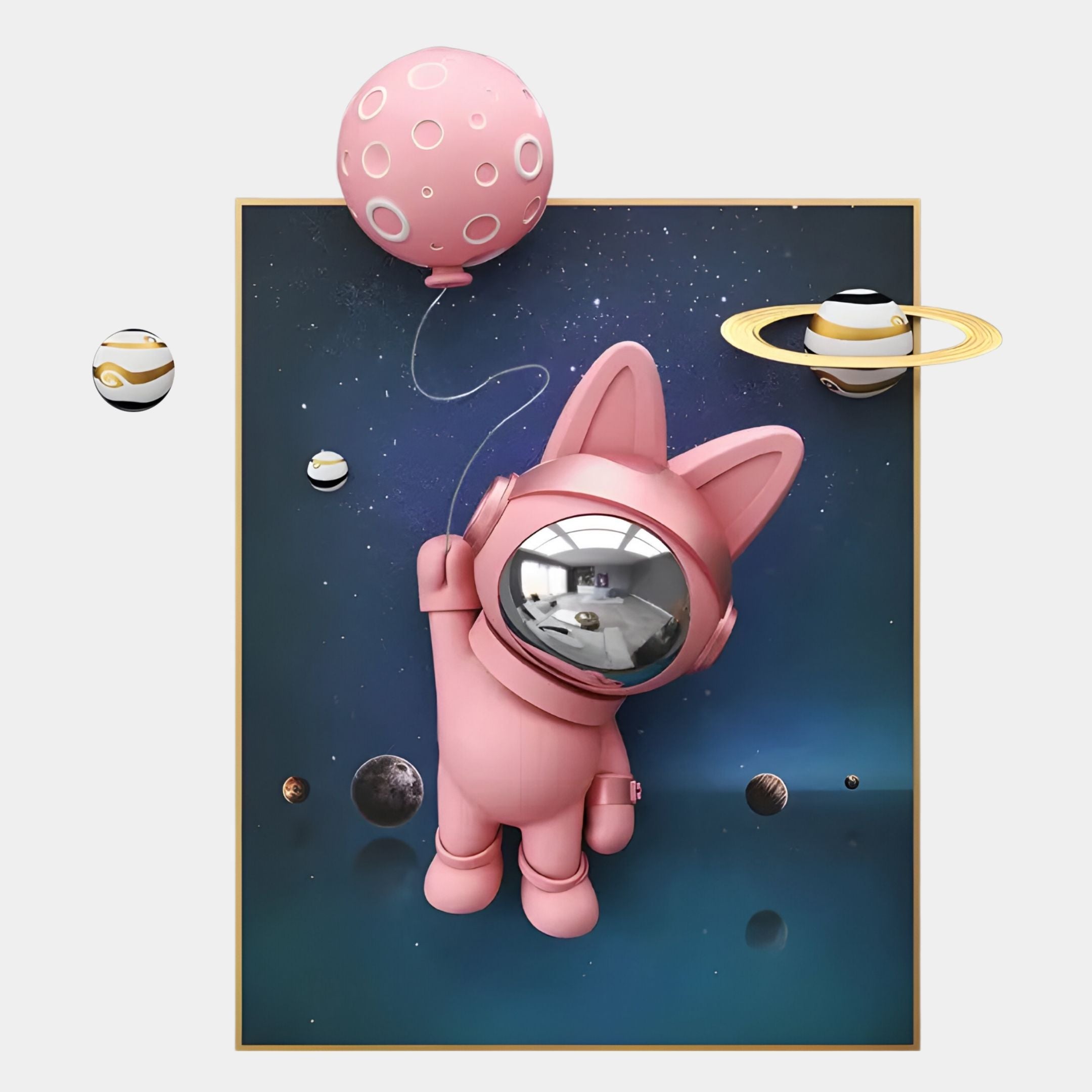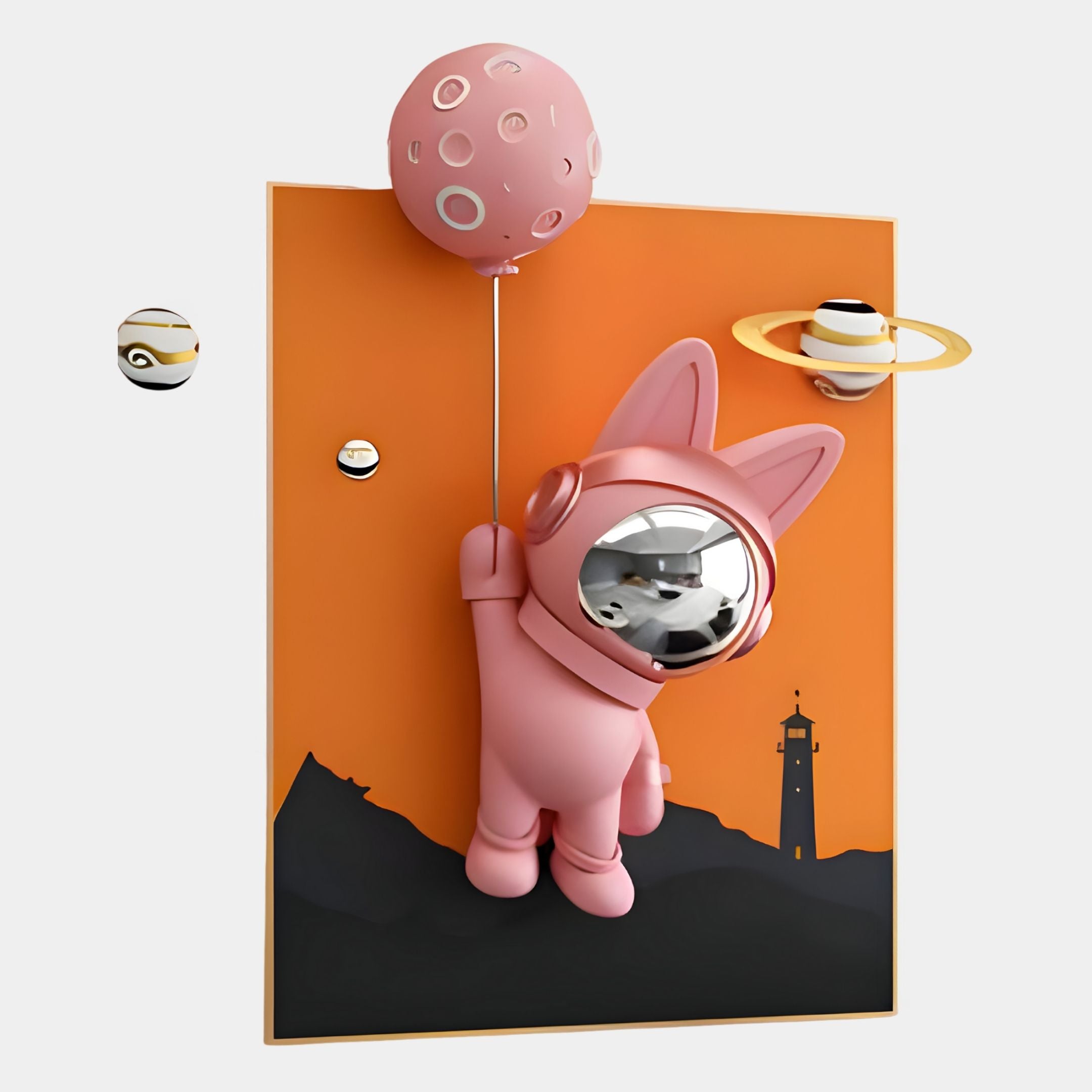 Pink 3D Astronaut Bunny Balloon Starry Wall Art