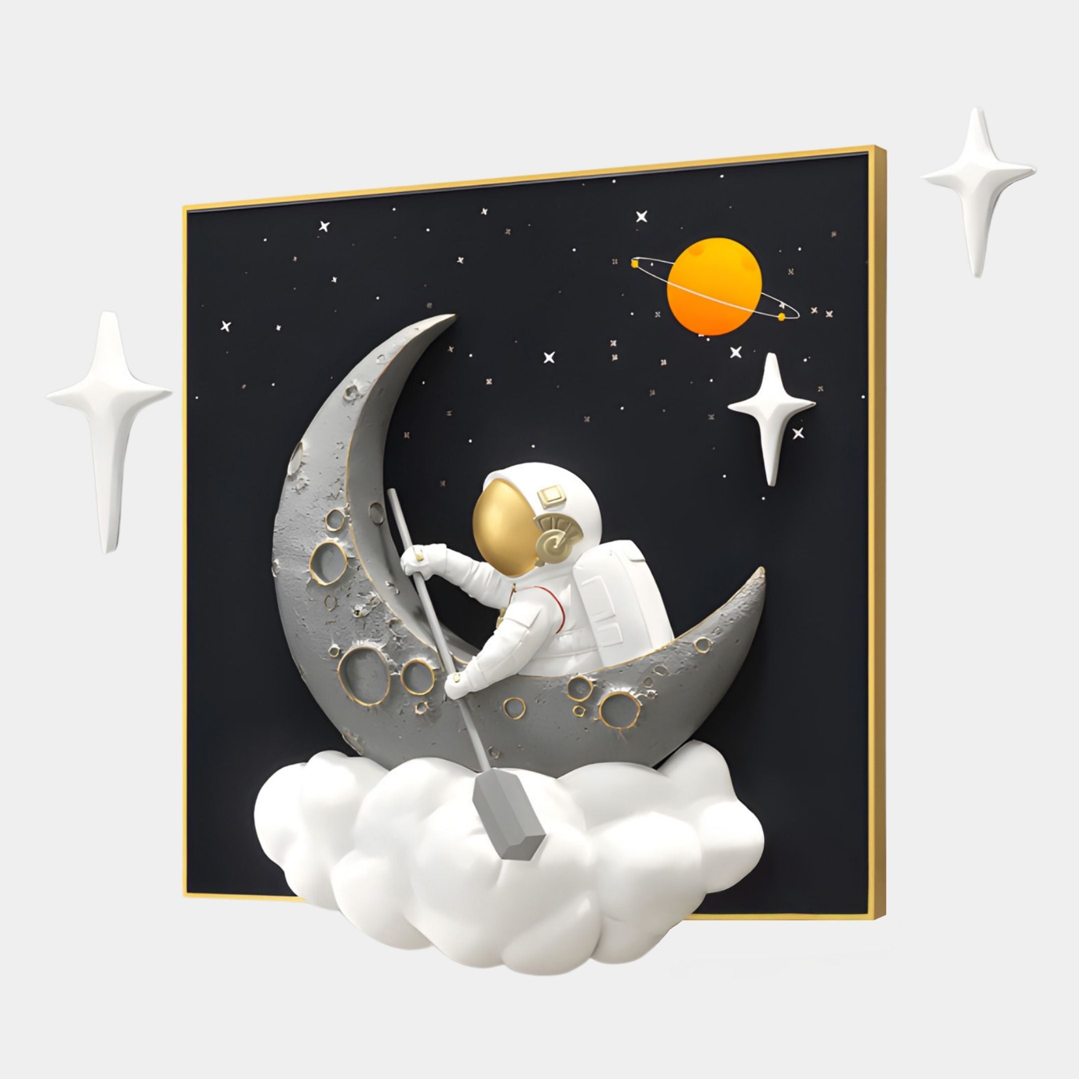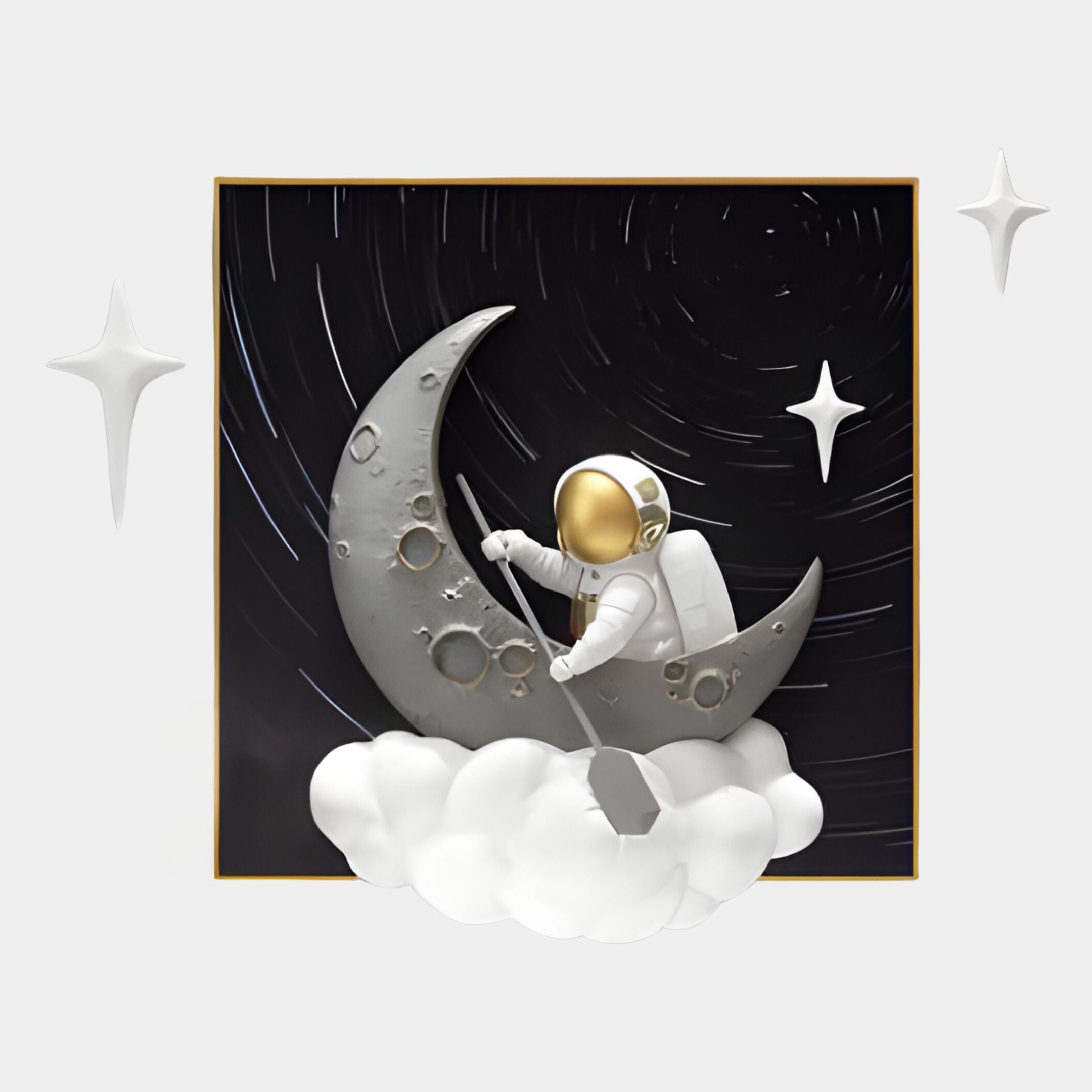 3D MoonSail Astronaut Dark Swirl Wall Art
