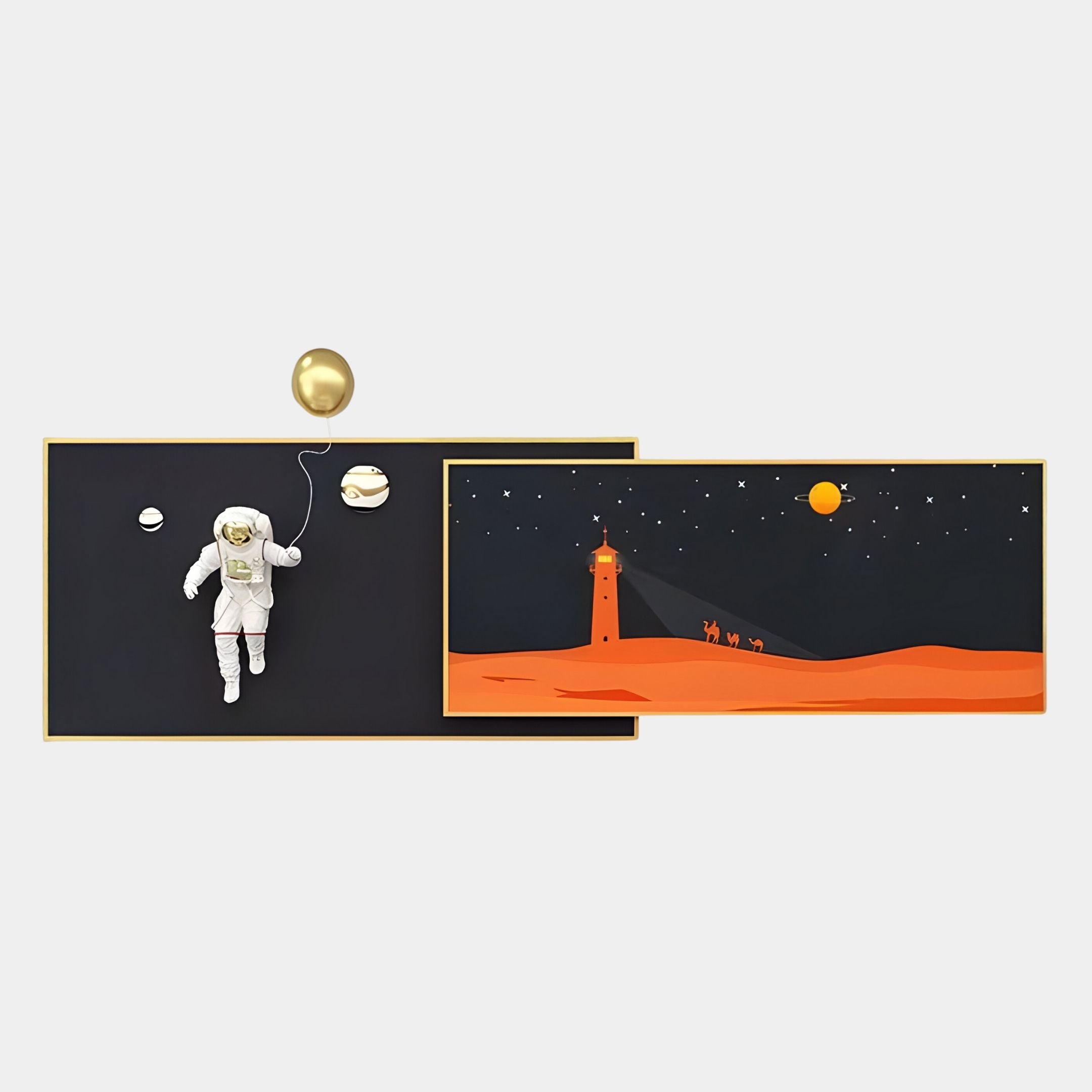 3D Space Astronaut & Lighthouse Dual-Panel Wall Art