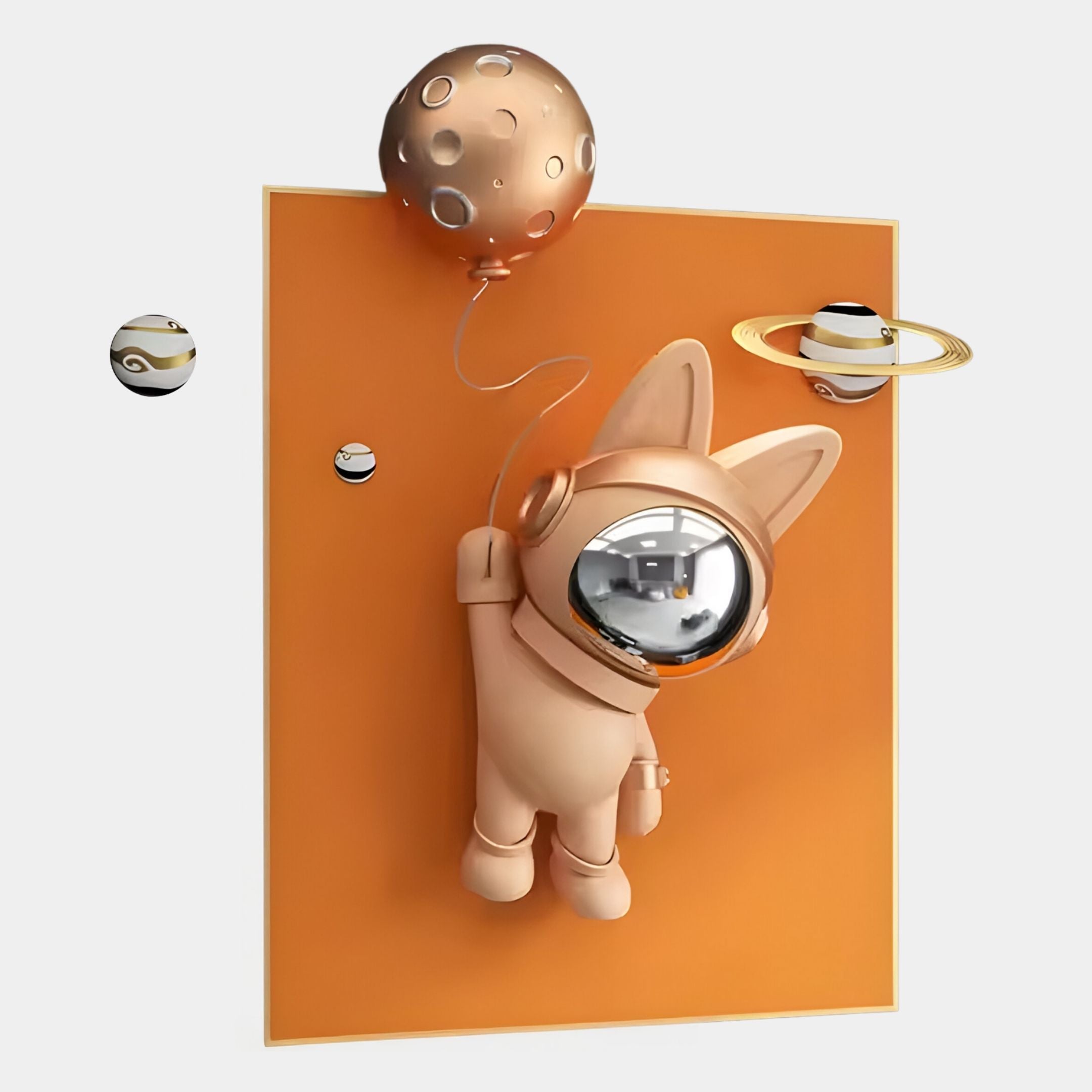 Rose Gold 3D Astronaut Bunny Balloon Orange Wall Art
