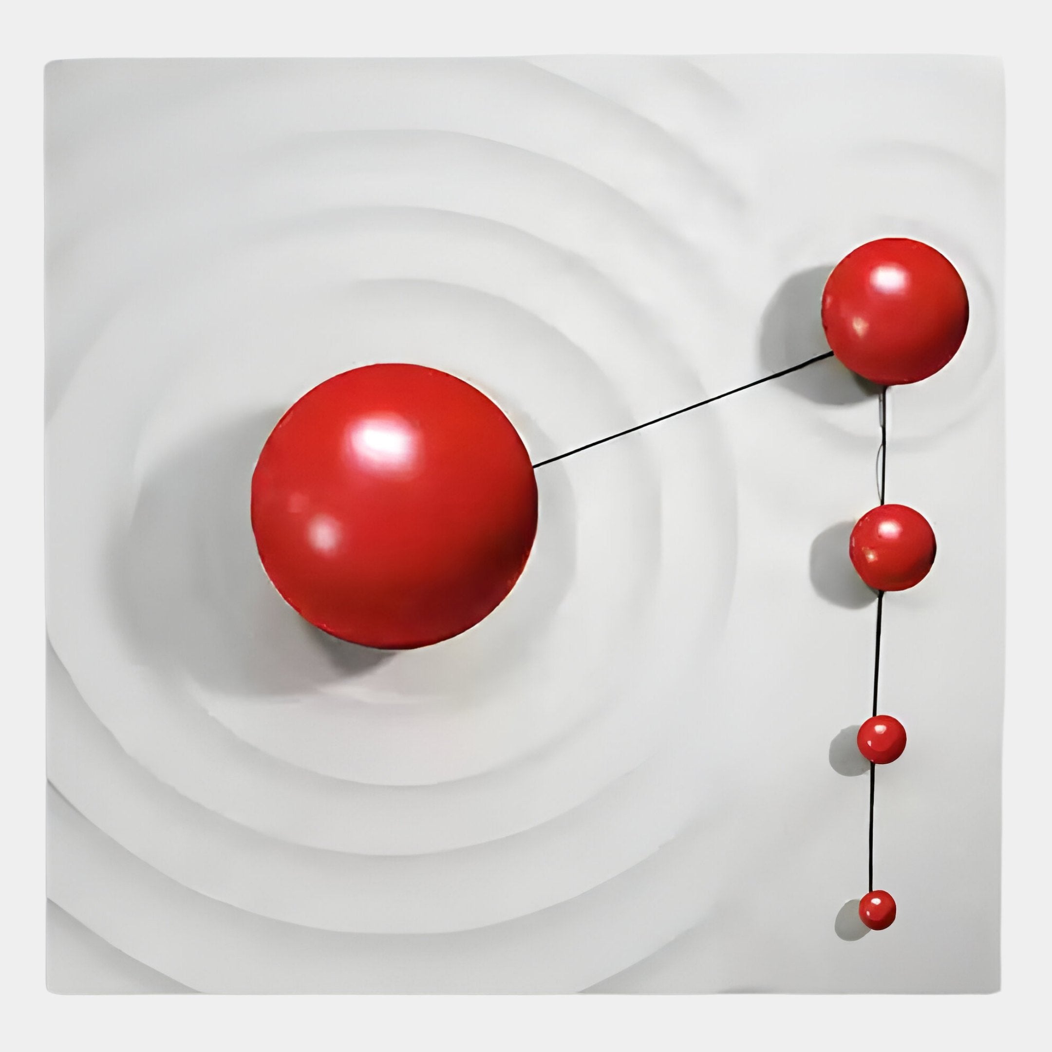 Galactica White Wood Relief 3D Wall Art With Red Metal Ball