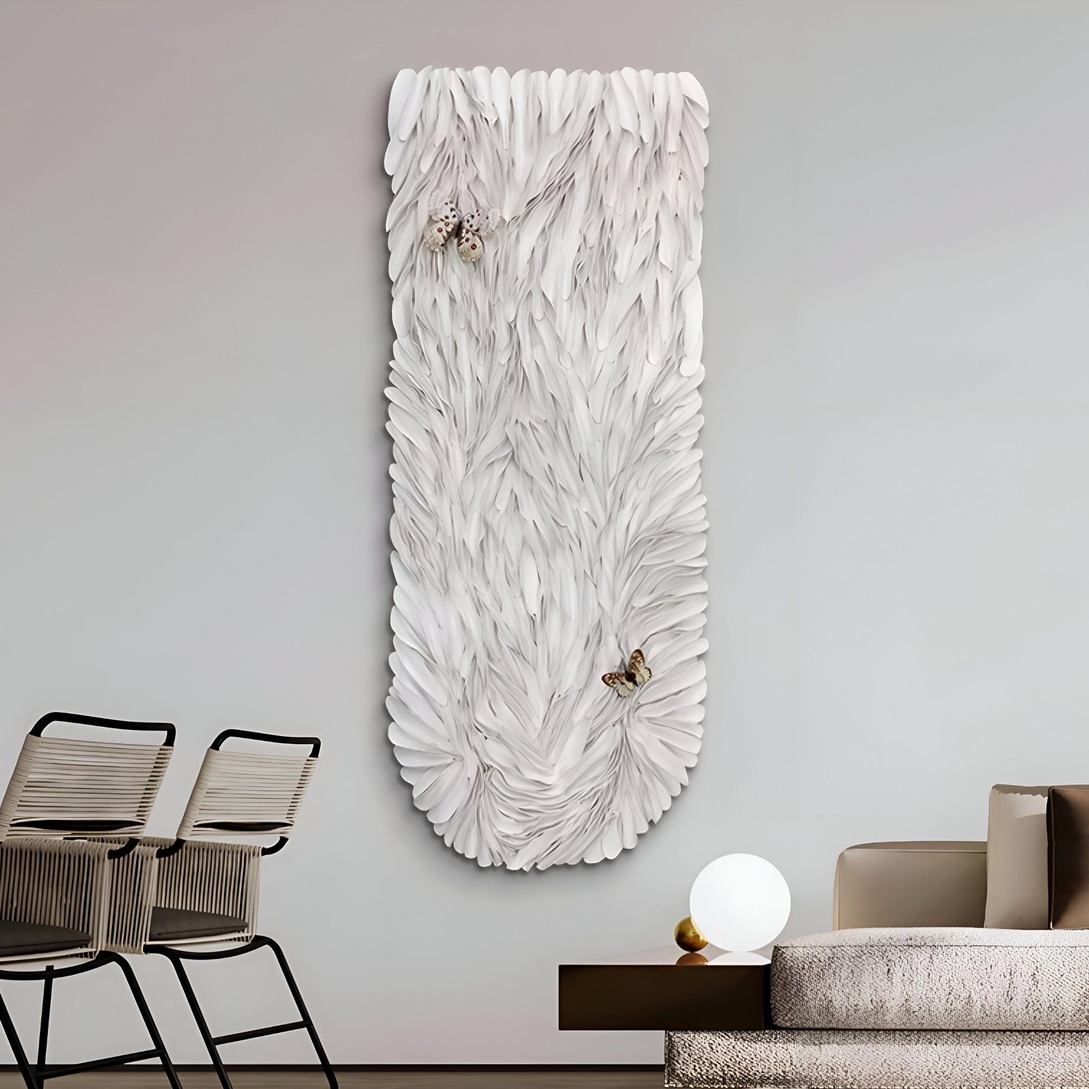 This wall art is an excellent addition to spaces that seek a balance of modern sophistication and artistic expression. The neutral white hue complements various colour schemes, adding a touch of refinement without overwhelming the existing decor. The organic flow of the leather pattern evokes a sense of natural movement, making it a focal point in both residential and hospitality settings. Placed in a serene bedroom retreat or an upscale hotel lobby, it provides a distinctive visual impact that enhances the ambiance. Constructed with high-quality materials, this piece offers lasting durability and easy maintenance. The frameless structure allows for a clean, unobtrusive presentation, ensuring it integrates effortlessly into any setting. Its lightweight design makes installation simple, providing flexibility in placement to suit different interior layouts.